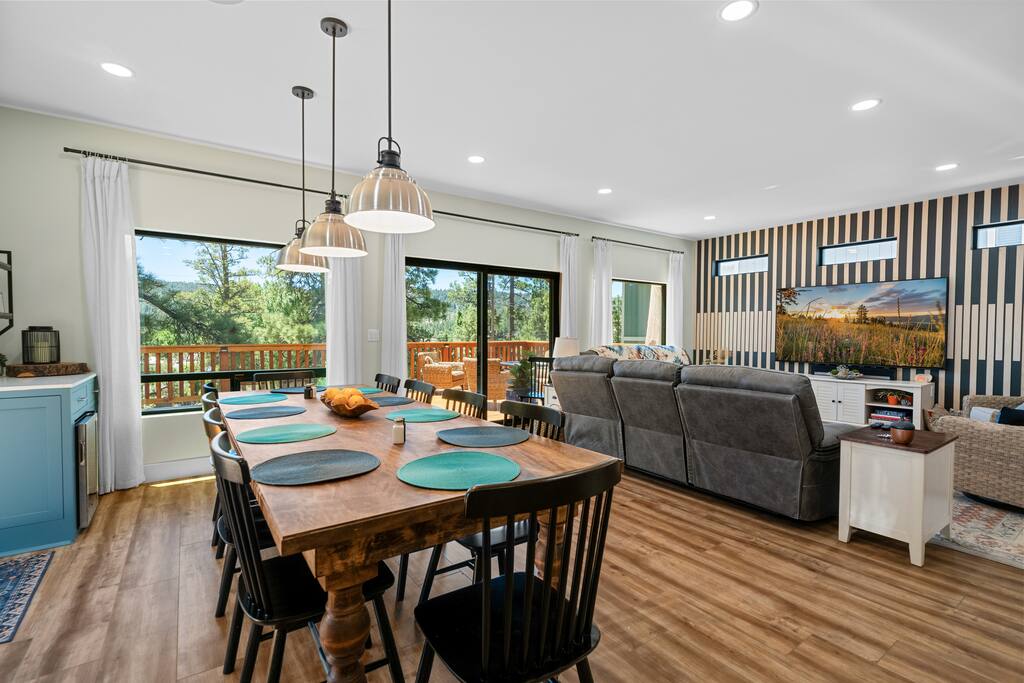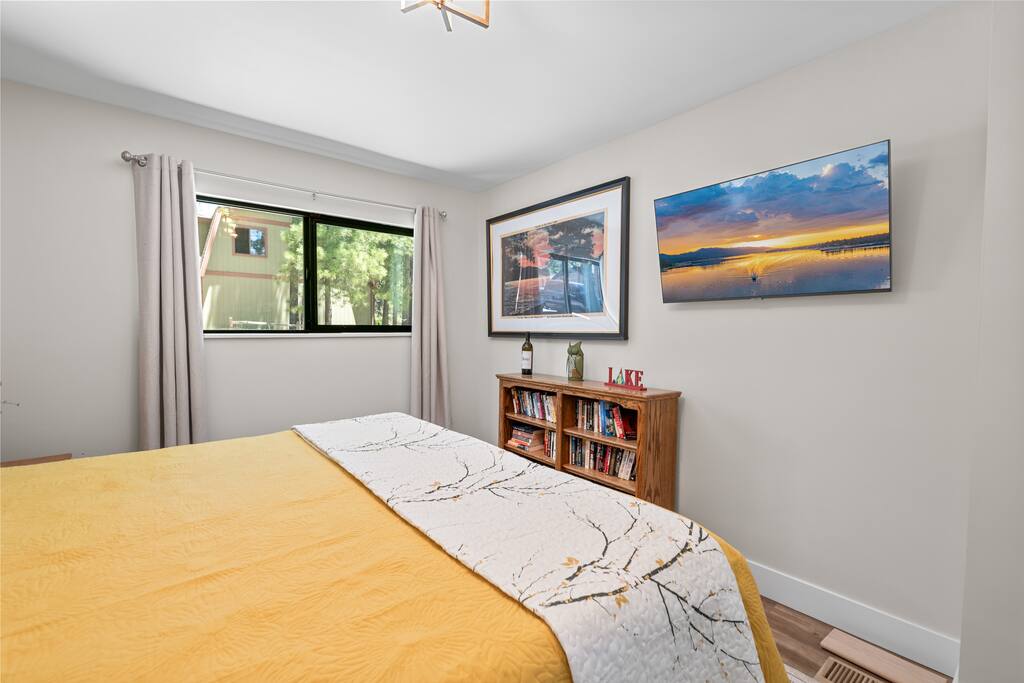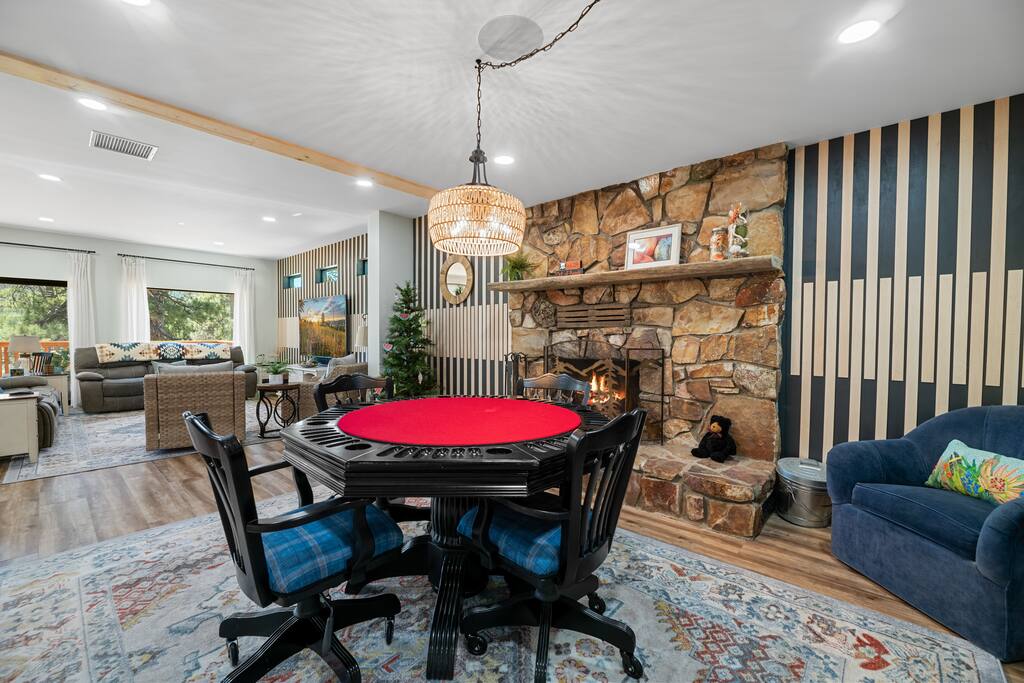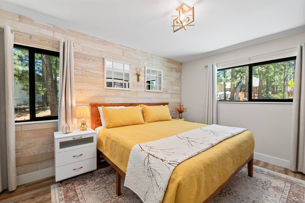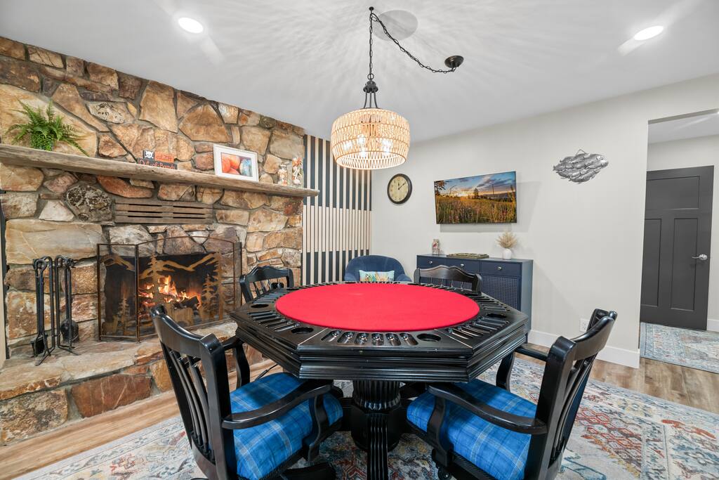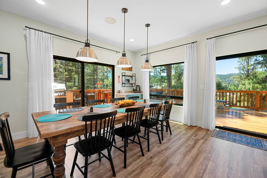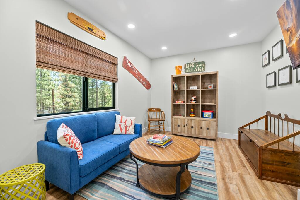 Escape to comfort and adventure at Out Of Bounds Cabin! Tucked into the scenic beauty of Big Bear and directly across the street from the lake, Out Of Bounds Cabin is the perfect destination for making memories and connections. With three spacious levels, six bedrooms, and a generous layout accommodating up to 13 guests, this grand retreat is the ultimate getaway for family gatherings, weekend reunions with friends, or pet-friendly vacations. Whether you're unwinding after a day on the slopes or soaking in the tranquil scenery, you'll find that every detail at Out Of Bounds Cabin is designed to help you feel right at home. Start your mornings with fresh mountain air on the upper deck, sipping coffee as the sun rises over the lake just across the street. The gourmet kitchen makes breakfast a breeze whether you're flipping pancakes on the griddle or preparing a delicious brunch before heading out to hike, bike, or ski. After an active day exploring Big Bear, return to the comfort of plush sofas and gather in the open-concept living room complete with a 65” Samsung TV and Sonos sound bar for movie night or gaming marathons. When it's time for some fun indoors, guests can head to the game room for entertainment galore including shuffleboard, pool table, arcade classics, and even bar seating for spectators. Poker nights come alive in the game area on the main level, or challenge the kids to a ping pong match on the patio. Then, reward your sore muscles with a soak in the private hot tub under the stars, followed by a get-together around the fire pit on the deck. The cabin’s six bedrooms offer a range of cozy options with everything from a private suite with California king beds and ensuite to a bunk room that’s perfect for kids complete with a loveseat and Roku TV. Each room is outfitted with comfortable bedding, hardwood floors, and amenities that blend rustic charm with modern flair. And with fast Wi-Fi, TVs with Roku, an EV charger (Tesla and universal adaptor), and central air conditioner, you'll have all the modern conveniences you need without ever having to leave the mountainside magic. Just minutes from Big Bear Village’s shops and restaurants and central to outdoor adventures all year round, Out Of Bounds Cabin is where luxury meets laid-back mountain living. Book your stay and discover the perfect balance of relaxation, recreation, and reconnection! ---------- ROOM DESCRIPTIONS * Living Room: The open-concept living room is located on the main level. It has 2 big reclining sofas, 2 plush chairs, DVD player, and access to the upper deck. The 65” Samsung TV has Roku, a Sonos sound system bar, and an HDMI game port (for use if you bring your own video game console). * Kitchen: The open-concept kitchen is located on the main level. It has a refrigerator, a dishwasher, a range, a microwave, and a toaster oven. Amenities include a crockpot, a mini crockpot, a waffle maker, a griddle, coffee machine, and assorted cooking necessities. This room has access to the upper deck as well as a sliding security gate on one side of the kitchen for small children and pets. * Dining Area: The open-concept dining area is located on the main level and has a dining table near the kitchen that can seat 12 guests. There is also a bar area with a mini-fridge. * Game Area: There is a game area on the main level near the living room. It has a convertible game table for poker and checkers, a 35” TV, and a wood burning fireplace. In addition to this game area, there is a dedicated game room located on the lower level. * Game Room: The dedicated game room is located on the lower level and is accessible through the main patio. It has a shuffleboard table, a pool table, bar seating for guests, an arcade console table with classic video games, a dart board, and 3 TVs (1 is 65” & 2 are 43”). * Laundry Area: The laundry area is located on the main floor near the kitchen. The washer and dryer are available to guest use for a small fee, thru an app. The fee is $5.35 for 24 hours unlimited use. * Garage: The garage is located on the main level. It has 1 EV charger (Tesla & universal adapter) available for guests to use for a small fee thru an app. ---------- OUTSIDE AREA DESCRIPTIONS * Upper Deck: The wraparound deck has a propane barbecue grill, outdoor dining for 4 guests, a Tommy Bahama cooler, outdoor seating, a propane fire pit, and gorgeous views. This deck is accessible through the main level of the cabin. * Patio: The patio has 2 hanging chairs, additional outdoor seating, a ping pong table, child size basketball set, a grassy recreation area, access to the game room, and a four person hot tub. The lower yard area is also fully fenced for children and pets. * Lower Yard: The lower yard is a large backyard area that is fully fenced and located under the patio area. ---------- BEDROOMS: Out Of Bounds Cabin has 6 bedrooms total. There are 2 bedrooms located on the main level and 4 bedrooms located on the upper level. * Bedroom #1: This lower level bedroom is a primary bedroom that has 1 California king bed, hardwood floor, a 45” Samsung TV, and a walk-in closet. * Bedroom #2: This lower level bedroom has 1 queen bed, hardwood floor, a 45” Samsung TV, and a closet. * Bedroom #3 (Bunk Bed Room): This upper level bedroom has 2 bunk beds with a total of 5 twin beds. The first bunk bed has 2 stacked twin beds. The second bunk bed has 3 stacked twin beds. It also has a sitting area with a loveseat, hardwood floor, a Sonos sound system, and a 45” Samsung TV with Roku. * Bedroom #4: This upper level bedroom has 1 queen bed, a 43” Samsung TV with Roku, hardwood floor, and a closet. * Bedroom #5: This upper level bedroom has 1 queen bed, a 43” Samsung TV with Roku, hardwood floor, and a closet. * Bedroom #6: This upper level primary suite has 1 California king bed, hardwood floor, a 65” Samsung TV with sound bar, an ensuite bathroom (Bathroom #3), and a sitting area with a desk. ---------- BATHROOM