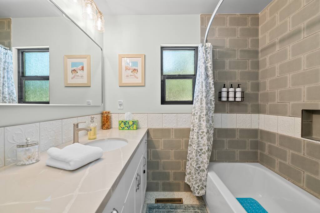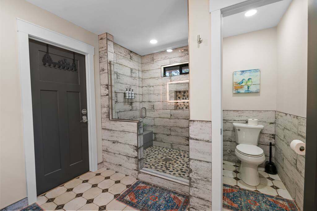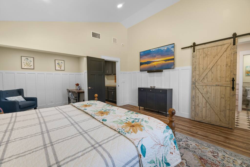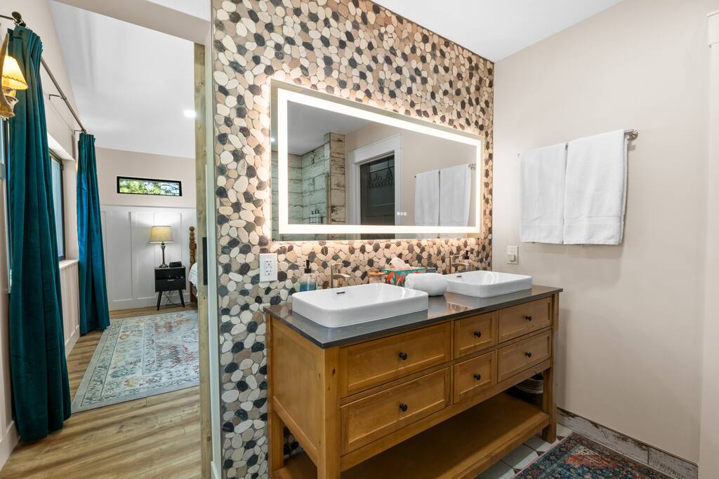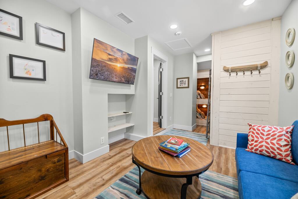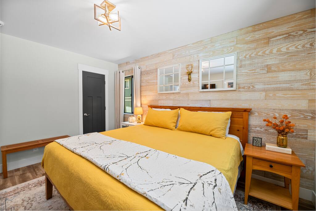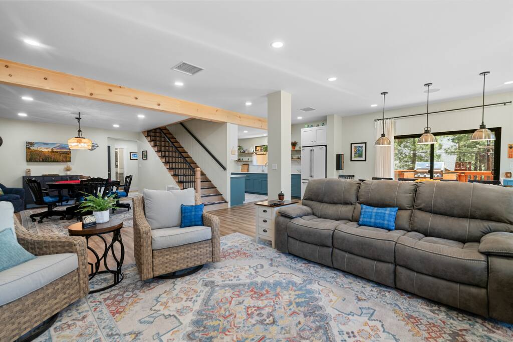 Escape to comfort and adventure at Out Of Bounds Cabin! Tucked into the scenic beauty of Big Bear and directly across the street from the lake, Out Of Bounds Cabin is the perfect destination for making memories and connections. With three spacious levels, six bedrooms, and a generous layout accommodating up to 13 guests, this grand retreat is the ultimate getaway for family gatherings, weekend reunions with friends, or pet-friendly vacations. Whether you're unwinding after a day on the slopes or soaking in the tranquil scenery, you'll find that every detail at Out Of Bounds Cabin is designed to help you feel right at home. Start your mornings with fresh mountain air on the upper deck, sipping coffee as the sun rises over the lake just across the street. The gourmet kitchen makes breakfast a breeze whether you're flipping pancakes on the griddle or preparing a delicious brunch before heading out to hike, bike, or ski. After an active day exploring Big Bear, return to the comfort of plush sofas and gather in the open-concept living room complete with a 65” Samsung TV and Sonos sound bar for movie night or gaming marathons. When it's time for some fun indoors, guests can head to the game room for entertainment galore including shuffleboard, pool table, arcade classics, and even bar seating for spectators. Poker nights come alive in the game area on the main level, or challenge the kids to a ping pong match on the patio. Then, reward your sore muscles with a soak in the private hot tub under the stars, followed by a get-together around the fire pit on the deck. The cabin’s six bedrooms offer a range of cozy options with everything from a private suite with California king beds and ensuite to a bunk room that’s perfect for kids complete with a loveseat and Roku TV. Each room is outfitted with comfortable bedding, hardwood floors, and amenities that blend rustic charm with modern flair. And with fast Wi-Fi, TVs with Roku, an EV charger (Tesla and universal adaptor), and central air conditioner, you'll have all the modern conveniences you need without ever having to leave the mountainside magic. Just minutes from Big Bear Village’s shops and restaurants and central to outdoor adventures all year round, Out Of Bounds Cabin is where luxury meets laid-back mountain living. Book your stay and discover the perfect balance of relaxation, recreation, and reconnection! ---------- ROOM DESCRIPTIONS * Living Room: The open-concept living room is located on the main level. It has 2 big reclining sofas, 2 plush chairs, DVD player, and access to the upper deck. The 65” Samsung TV has Roku, a Sonos sound system bar, and an HDMI game port (for use if you bring your own video game console). * Kitchen: The open-concept kitchen is located on the main level. It has a refrigerator, a dishwasher, a range, a microwave, and a toaster oven. Amenities include a crockpot, a mini crockpot, a waffle maker, a griddle, coffee machine, and assorted cooking necessities. This room has access to the upper deck as well as a sliding security gate on one side of the kitchen for small children and pets. * Dining Area: The open-concept dining area is located on the main level and has a dining table near the kitchen that can seat 12 guests. There is also a bar area with a mini-fridge. * Game Area: There is a game area on the main level near the living room. It has a convertible game table for poker and checkers, a 35” TV, and a wood burning fireplace. In addition to this game area, there is a dedicated game room located on the lower level. * Game Room: The dedicated game room is located on the lower level and is accessible through the main patio. It has a shuffleboard table, a pool table, bar seating for guests, an arcade console table with classic video games, a dart board, and 3 TVs (1 is 65” & 2 are 43”). * Laundry Area: The laundry area is located on the main floor near the kitchen. The washer and dryer are available to guest use for a small fee, thru an app. The fee is $5.35 for 24 hours unlimited use. * Garage: The garage is located on the main level. It has 1 EV charger (Tesla & universal adapter) available for guests to use for a small fee thru an app. ---------- OUTSIDE AREA DESCRIPTIONS * Upper Deck: The wraparound deck has a propane barbecue grill, outdoor dining for 4 guests, a Tommy Bahama cooler, outdoor seating, a propane fire pit, and gorgeous views. This deck is accessible through the main level of the cabin. * Patio: The patio has 2 hanging chairs, additional outdoor seating, a ping pong table, child size basketball set, a grassy recreation area, access to the game room, and a four person hot tub. The lower yard area is also fully fenced for children and pets. * Lower Yard: The lower yard is a large backyard area that is fully fenced and located under the patio area. ---------- BEDROOMS: Out Of Bounds Cabin has 6 bedrooms total. There are 2 bedrooms located on the main level and 4 bedrooms located on the upper level. * Bedroom #1: This lower level bedroom is a primary bedroom that has 1 California king bed, hardwood floor, a 45” Samsung TV, and a walk-in closet. * Bedroom #2: This lower level bedroom has 1 queen bed, hardwood floor, a 45” Samsung TV, and a closet. * Bedroom #3 (Bunk Bed Room): This upper level bedroom has 2 bunk beds with a total of 5 twin beds. The first bunk bed has 2 stacked twin beds. The second bunk bed has 3 stacked twin beds. It also has a sitting area with a loveseat, hardwood floor, a Sonos sound system, and a 45” Samsung TV with Roku. * Bedroom #4: This upper level bedroom has 1 queen bed, a 43” Samsung TV with Roku, hardwood floor, and a closet. * Bedroom #5: This upper level bedroom has 1 queen bed, a 43” Samsung TV with Roku, hardwood floor, and a closet. * Bedroom #6: This upper level primary suite has 1 California king bed, hardwood floor, a 65” Samsung TV with sound bar, an ensuite bathroom (Bathroom #3), and a sitting area with a desk. ---------- BATHROOM