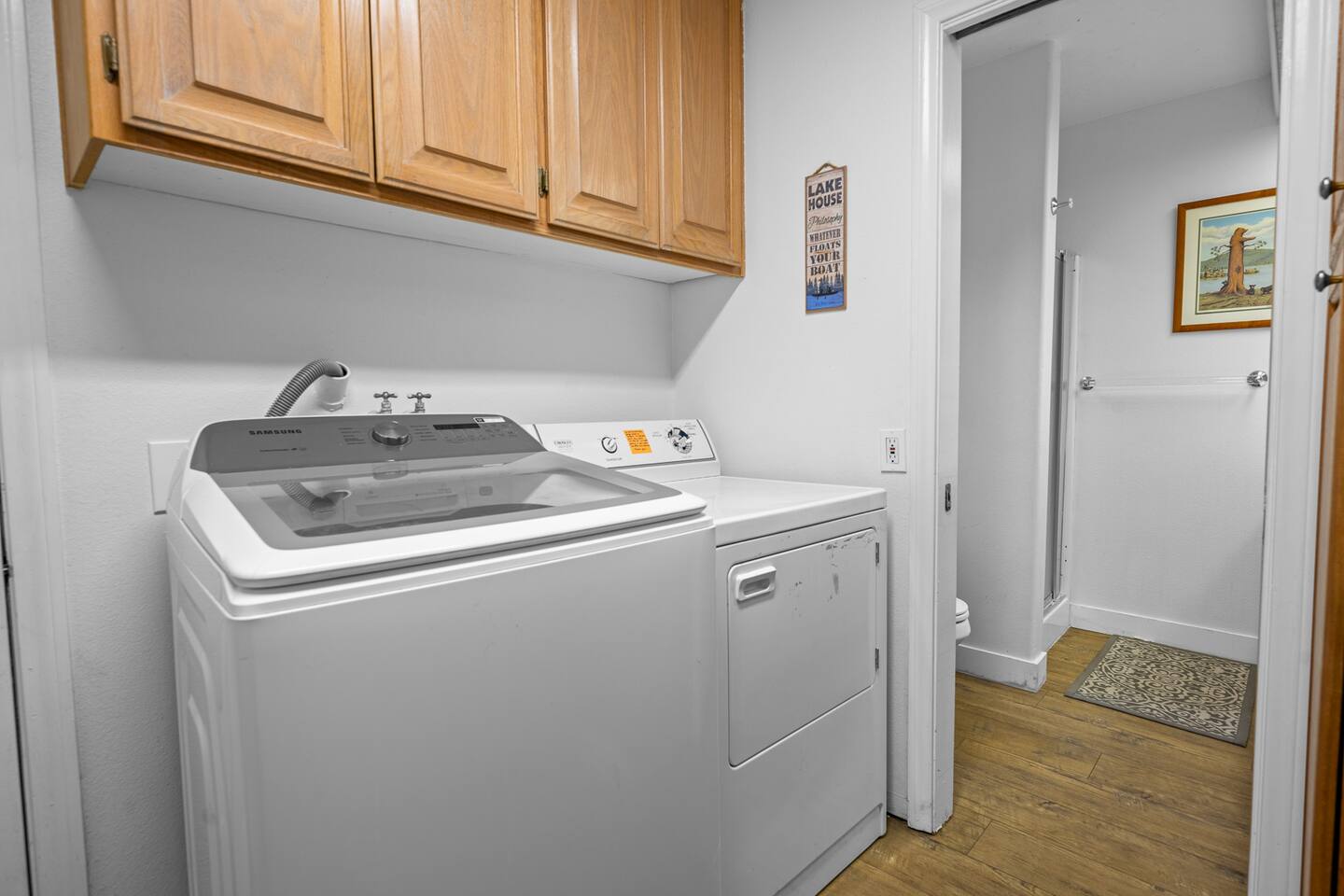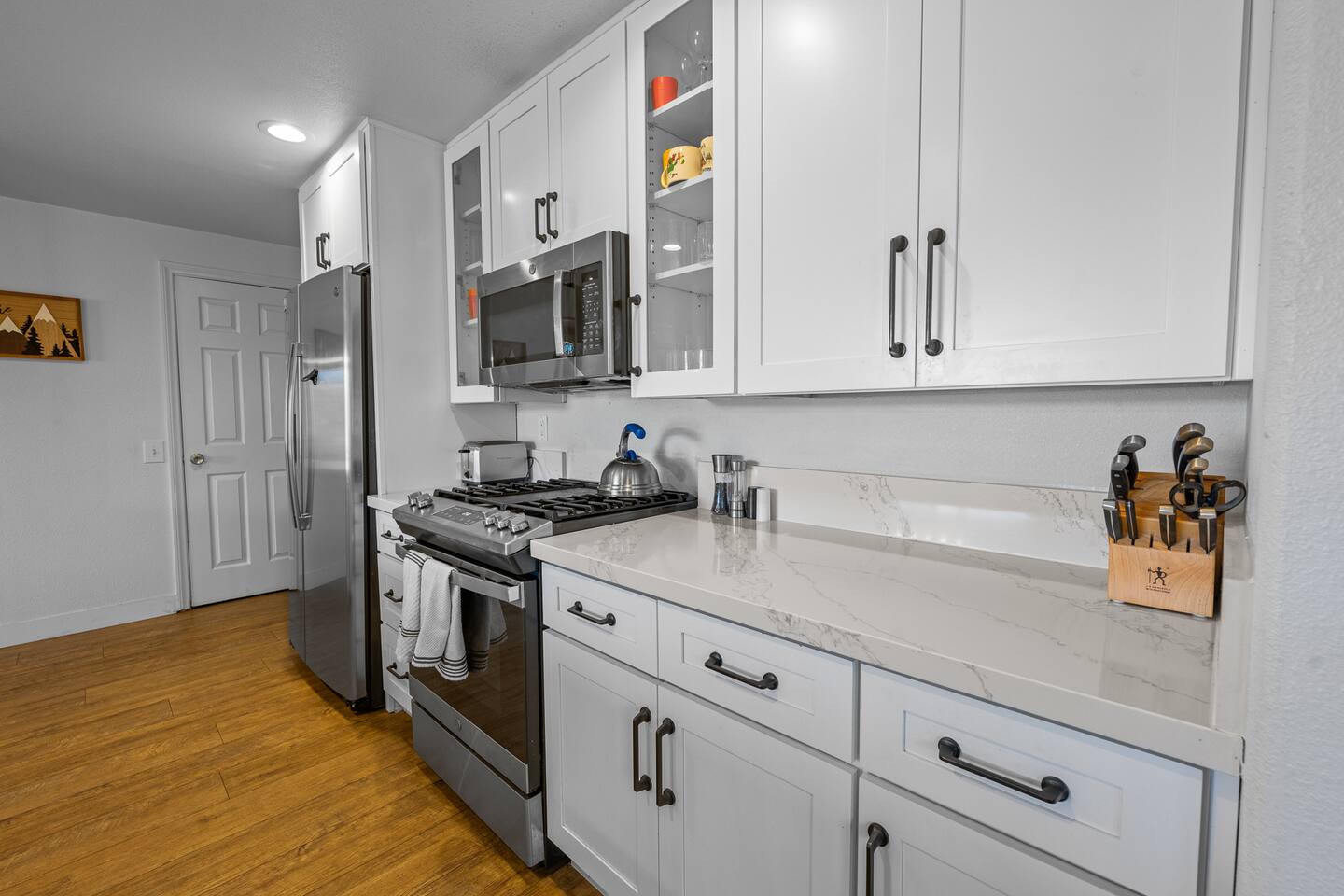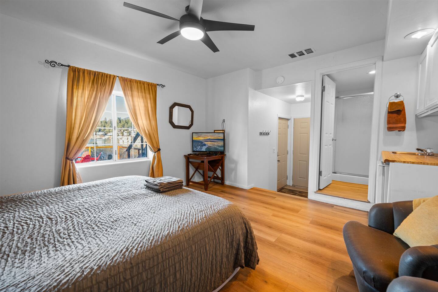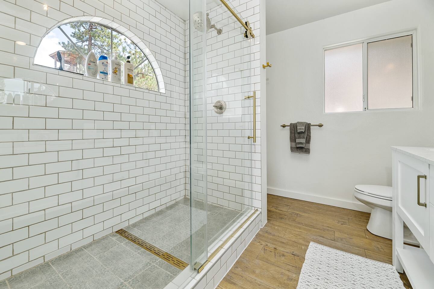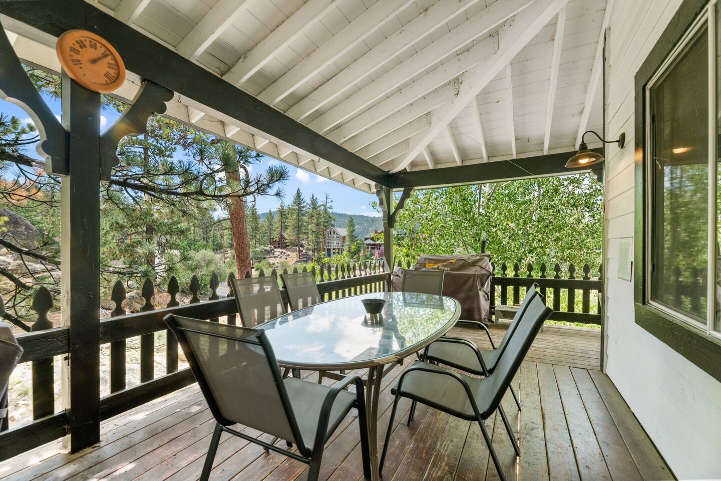This spectacular 2,400+ sq. ft. cabin in Boulder Bay has 2 levels, 4 bedrooms, 4 bathrooms, & a private dock on Big Bear Lake. Big Bear local ordinance 99.300 limits maximum occupancy to 12 people & 4 parked cars for Boulder Bay Farmhouse. Boulder Bay Farmhouse also has 2 patios, 2 gas fireplaces, access to the National Forest, & a hot tub. The kitchen is fully-stocked and all bedding & linens are provided by our professional cleaning crew. This beautiful cabin is the perfect getaway for family, friends, & even pets! The cabin’s main entrance is accessible via outdoor stairs, so guests should be comfortable using them. Amenities include free Starlink high speed Wi-Fi, HD TVs with streaming services, central air conditioning, a ping pong & pool table, a vintage arcade console, spectacular lake views, a Powerwall whole house battery, a high speed NEMA 14-50 amp outlet EV car charger for Teslas (must bring your own cable & adapter), and a dedicated kids bunk bed room. For your convenience, this cabin is in the Boulder Bay neighborhood of Big Bear & perfectly located just minutes from tons of activities - hiking, golfing, skiing, biking, & more. This retreat is 6.2 miles from Bear Mountain, 4.5 miles from Snow Summit, and a quick 5 minute drive to Big Bear Village downtown shops & restaurants. *Note- The cabin is conveniently located on a main street, making it easy to get around. However, there is some traffic noise, especially during peak hours. ---------- ROOM DESCRIPTIONS * LIVING ROOM: The living room is located on the lower level & features big windows that offer beautiful lake views. This cozy living room has a large sectional sofa, ample seating, a gas fireplace, a TV, an arcade console with vintage video games, a pool table that can convert into a ping pong table, & shelves stocked with various board games. * DINING ROOM & KITCHEN: The fully-stocked & open-concept kitchen is located on the lower level & features breathtaking views of the lake. It has stainless steel appliances including a stove, a refrigerator, a microwave, & a dishwasher. The kitchen also has a toaster, a kettle, a farmhouse sink, and a Keurig coffee maker as well as other cooking and serving essentials. There is a breakfast bar with seating for 4 people in addition to two available dining tables. The casual dining table in the kitchen has seating for 6 people while the adjacent formal dining room has a table that seats 6 people. * BEDROOM #1: This primary bedroom is a 220 sq. ft. suite located on the lower level. It has a king bed, wood floor, a private entrance, seating, a mini fridge, ceiling fan, & an ensuite full bathroom with a walk-in shower (Bathroom #1). Note- The Master Suite is a private retreat, separate from the main living area. Perfect for those who enjoy extra privacy! The suite is secluded with no indoor access between the suite and the rest of the cabin. * BEDROOM #2: This primary bedroom is located on the upper level. It has a king bed, wood floor, a gas fireplace, gorgeous views of the lake, TV, ceiling fan, & an ensuite bathroom (Bathroom #2). * BEDROOM #3: This bedroom is located on the upper level. It has a king bed, wood floor, ceiling fan, & lovely views of the lake. * BEDROOM #4 (Kids Room): This bedroom has 3 bunk beds with a total of 7 total twin beds, wood floor, & ceiling fan. Bunk bed #1 has 2 twin beds. Bunk bed #2 has 2 twin beds. Bunk bed #3 has 3 twin beds. * BATHROOM #1: This full ensuite bathroom to Bedroom #1 is located on the lower level & has a walk-in shower. * BATHROOM #2: This full ensuite bathroom to Bedroom #2 is located on the upper level. It has a walk-in shower with dual shower heads & dual sinks. * BATHROOM #3: This full bathroom is located on the upper level that has a bathtub & a walk-in shower. * BATHROOM #4: This full bathroom is located on the lower level through the laundry room & has a walk-in shower. * LAUNDRY ROOM: There is a dedicated laundry room located on the lower level adjacent to the kitchen that has a full size washer & dryer for your convenience. * LOWER PATIO: With the Boulder Bay area of Big Bear Lake located directly across the street from this cabin, the large elevated patio located on the lower level has gorgeous panoramic views of the lake, outdoor seating with Adirondack chairs, & a gas fire pit (Fire pit is not available during winter months). It is the perfect spot for sunset views, stargazing, & gathering with family and friends. * UPPER PATIO: The upper patio has outdoor seating including rocking chairs, spectacular lake views, an outdoor dining table with seating for 6 people, a Weber gas grill, and a private hot tub. *DRIVEWAYS: This cabin has 2 driveways. The main driveway is located in the front of the cabin and fits 2 cars. The additional driveway is located on the side of the cabin and can fit 2 cars when there is no snow. During snowy weather, this additional driveway can only accommodate 1 vehicle. * DOCK: Boulder Bay Farmhouse is located next to the Boulder Bay area of the lake. This cabin has a private dock that is directly across the street. The dock is the perfect spot for fishing, kayaking, & enjoying the natural beauty of Big Bear Lake. Please know that you do need to cross Big Bear Boulevard to access the private dock across the street (so look both ways!). * NATIONAL FOREST: The San Bernardino National Forest is located directly behind this cabin & offers endless hiking, bouldering, and other outdoor recreation opportunities for guests.