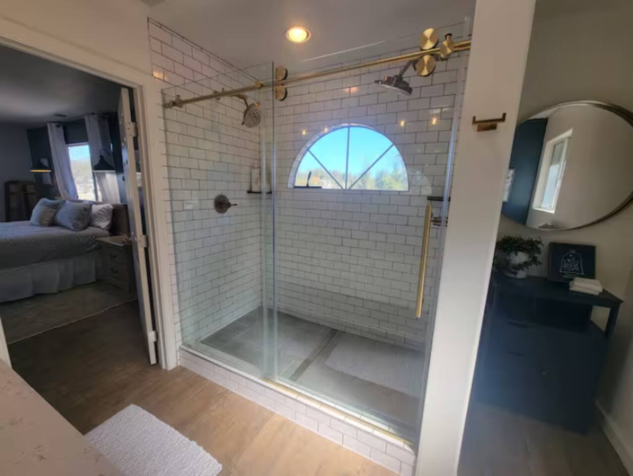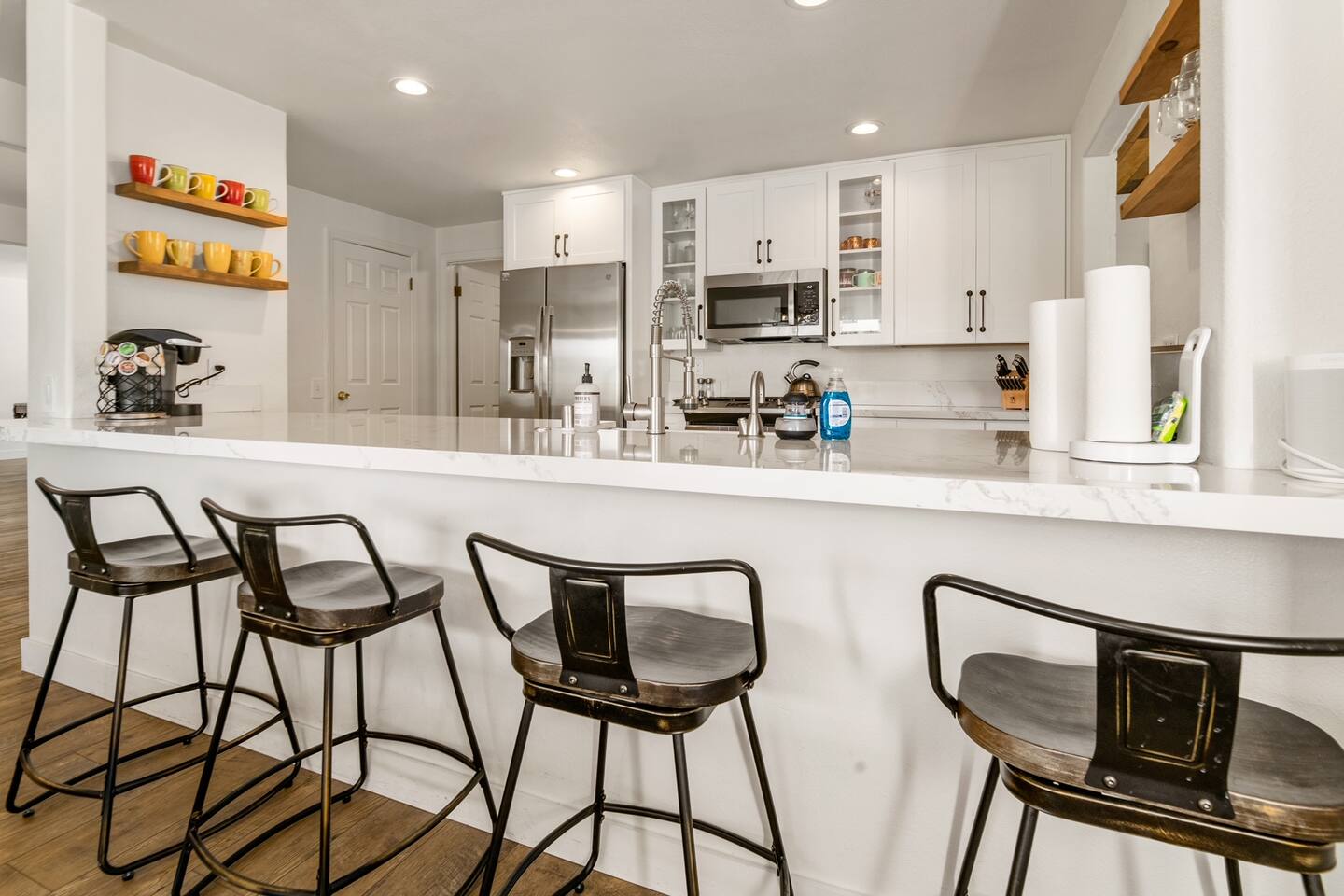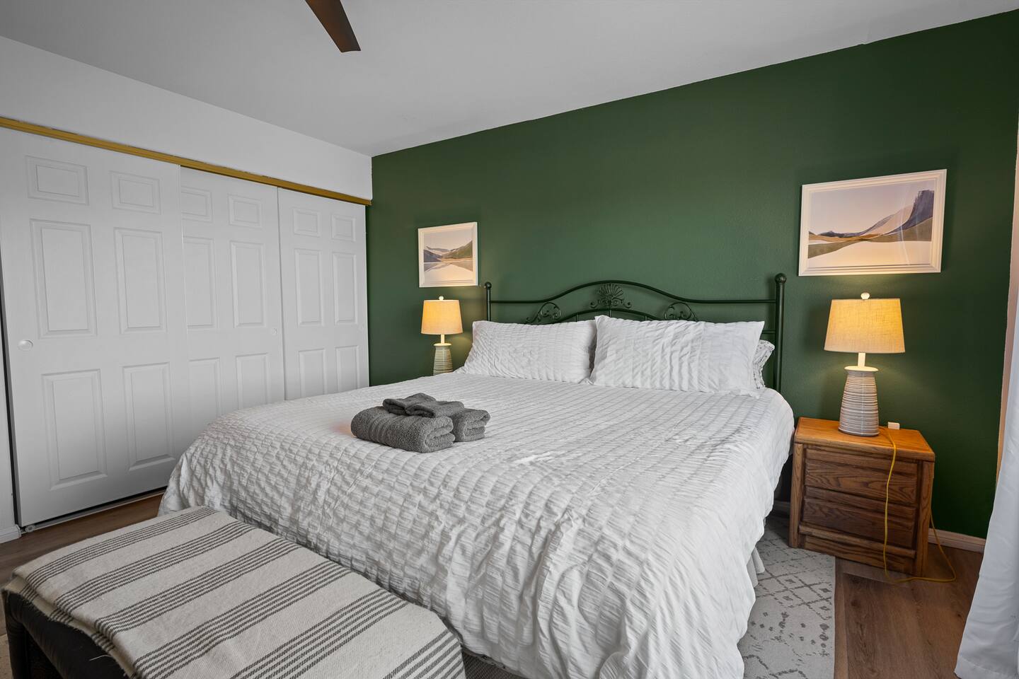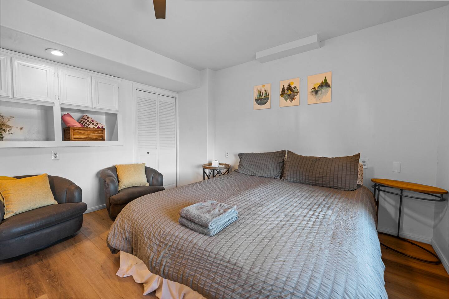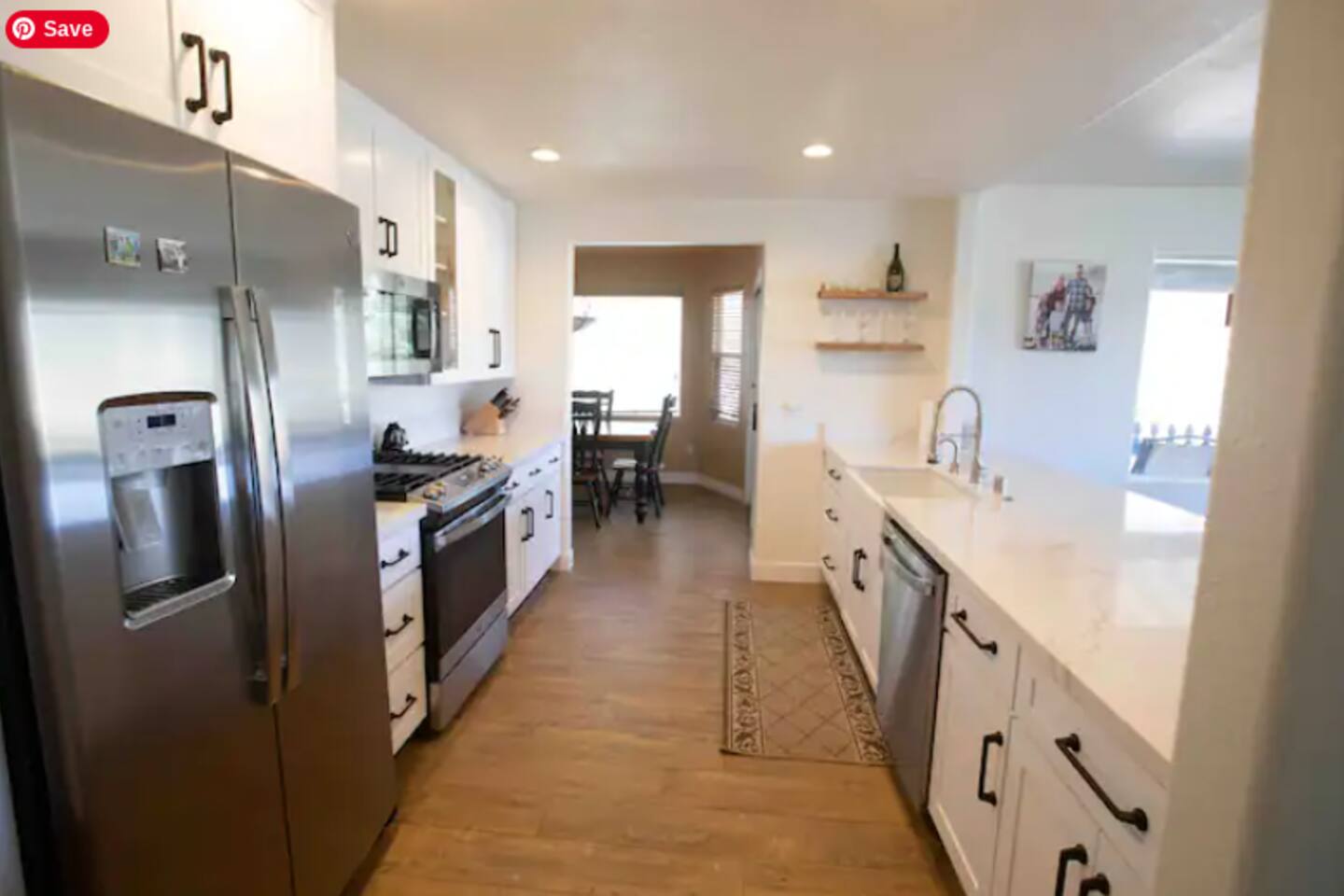This spectacular 2,400+ sq. ft. cabin in Boulder Bay has 2 levels, 4 bedrooms, 4 bathrooms, & a private dock on Big Bear Lake. Big Bear local ordinance 99.300 limits maximum occupancy to 12 people & 4 parked cars for Boulder Bay Farmhouse. Boulder Bay Farmhouse also has 2 patios, 2 gas fireplaces, access to the National Forest, & a hot tub. The kitchen is fully-stocked and all bedding & linens are provided by our professional cleaning crew. This beautiful cabin is the perfect getaway for family, friends, & even pets! The cabin’s main entrance is accessible via outdoor stairs, so guests should be comfortable using them. Amenities include free Starlink high speed Wi-Fi, HD TVs with streaming services, central air conditioning, a ping pong & pool table, a vintage arcade console, spectacular lake views, a Powerwall whole house battery, a high speed NEMA 14-50 amp outlet EV car charger for Teslas (must bring your own cable & adapter), and a dedicated kids bunk bed room. For your convenience, this cabin is in the Boulder Bay neighborhood of Big Bear & perfectly located just minutes from tons of activities - hiking, golfing, skiing, biking, & more. This retreat is 6.2 miles from Bear Mountain, 4.5 miles from Snow Summit, and a quick 5 minute drive to Big Bear Village downtown shops & restaurants. *Note- The cabin is conveniently located on a main street, making it easy to get around. However, there is some traffic noise, especially during peak hours. ---------- ROOM DESCRIPTIONS * LIVING ROOM: The living room is located on the lower level & features big windows that offer beautiful lake views. This cozy living room has a large sectional sofa, ample seating, a gas fireplace, a TV, an arcade console with vintage video games, a pool table that can convert into a ping pong table, & shelves stocked with various board games. * DINING ROOM & KITCHEN: The fully-stocked & open-concept kitchen is located on the lower level & features breathtaking views of the lake. It has stainless steel appliances including a stove, a refrigerator, a microwave, & a dishwasher. The kitchen also has a toaster, a kettle, a farmhouse sink, and a Keurig coffee maker as well as other cooking and serving essentials. There is a breakfast bar with seating for 4 people in addition to two available dining tables. The casual dining table in the kitchen has seating for 6 people while the adjacent formal dining room has a table that seats 6 people. * BEDROOM #1: This primary bedroom is a 220 sq. ft. suite located on the lower level. It has a king bed, wood floor, a private entrance, seating, a mini fridge, ceiling fan, & an ensuite full bathroom with a walk-in shower (Bathroom #1). Note- The Master Suite is a private retreat, separate from the main living area. Perfect for those who enjoy extra privacy! The suite is secluded with no indoor access between the suite and the rest of the cabin. * BEDROOM #2: This primary bedroom is located on the upper level. It has a king bed, wood floor, a gas fireplace, gorgeous views of the lake, TV, ceiling fan, & an ensuite bathroom (Bathroom #2). * BEDROOM #3: This bedroom is located on the upper level. It has a king bed, wood floor, ceiling fan, & lovely views of the lake. * BEDROOM #4 (Kids Room): This bedroom has 3 bunk beds with a total of 7 total twin beds, wood floor, & ceiling fan. Bunk bed #1 has 2 twin beds. Bunk bed #2 has 2 twin beds. Bunk bed #3 has 3 twin beds. * BATHROOM #1: This full ensuite bathroom to Bedroom #1 is located on the lower level & has a walk-in shower. * BATHROOM #2: This full ensuite bathroom to Bedroom #2 is located on the upper level. It has a walk-in shower with dual shower heads & dual sinks. * BATHROOM #3: This full bathroom is located on the upper level that has a bathtub & a walk-in shower. * BATHROOM #4: This full bathroom is located on the lower level through the laundry room & has a walk-in shower. * LAUNDRY ROOM: There is a dedicated laundry room located on the lower level adjacent to the kitchen that has a full size washer & dryer for your convenience. * LOWER PATIO: With the Boulder Bay area of Big Bear Lake located directly across the street from this cabin, the large elevated patio located on the lower level has gorgeous panoramic views of the lake, outdoor seating with Adirondack chairs, & a gas fire pit (Fire pit is not available during winter months). It is the perfect spot for sunset views, stargazing, & gathering with family and friends. * UPPER PATIO: The upper patio has outdoor seating including rocking chairs, spectacular lake views, an outdoor dining table with seating for 6 people, a Weber gas grill, and a private hot tub. *DRIVEWAYS: This cabin has 2 driveways. The main driveway is located in the front of the cabin and fits 2 cars. The additional driveway is located on the side of the cabin and can fit 2 cars when there is no snow. During snowy weather, this additional driveway can only accommodate 1 vehicle. * DOCK: Boulder Bay Farmhouse is located next to the Boulder Bay area of the lake. This cabin has a private dock that is directly across the street. The dock is the perfect spot for fishing, kayaking, & enjoying the natural beauty of Big Bear Lake. Please know that you do need to cross Big Bear Boulevard to access the private dock across the street (so look both ways!). * NATIONAL FOREST: The San Bernardino National Forest is located directly behind this cabin & offers endless hiking, bouldering, and other outdoor recreation opportunities for guests.