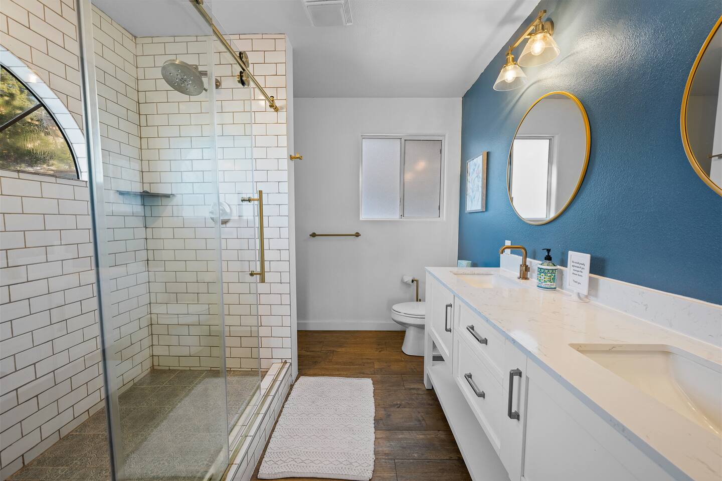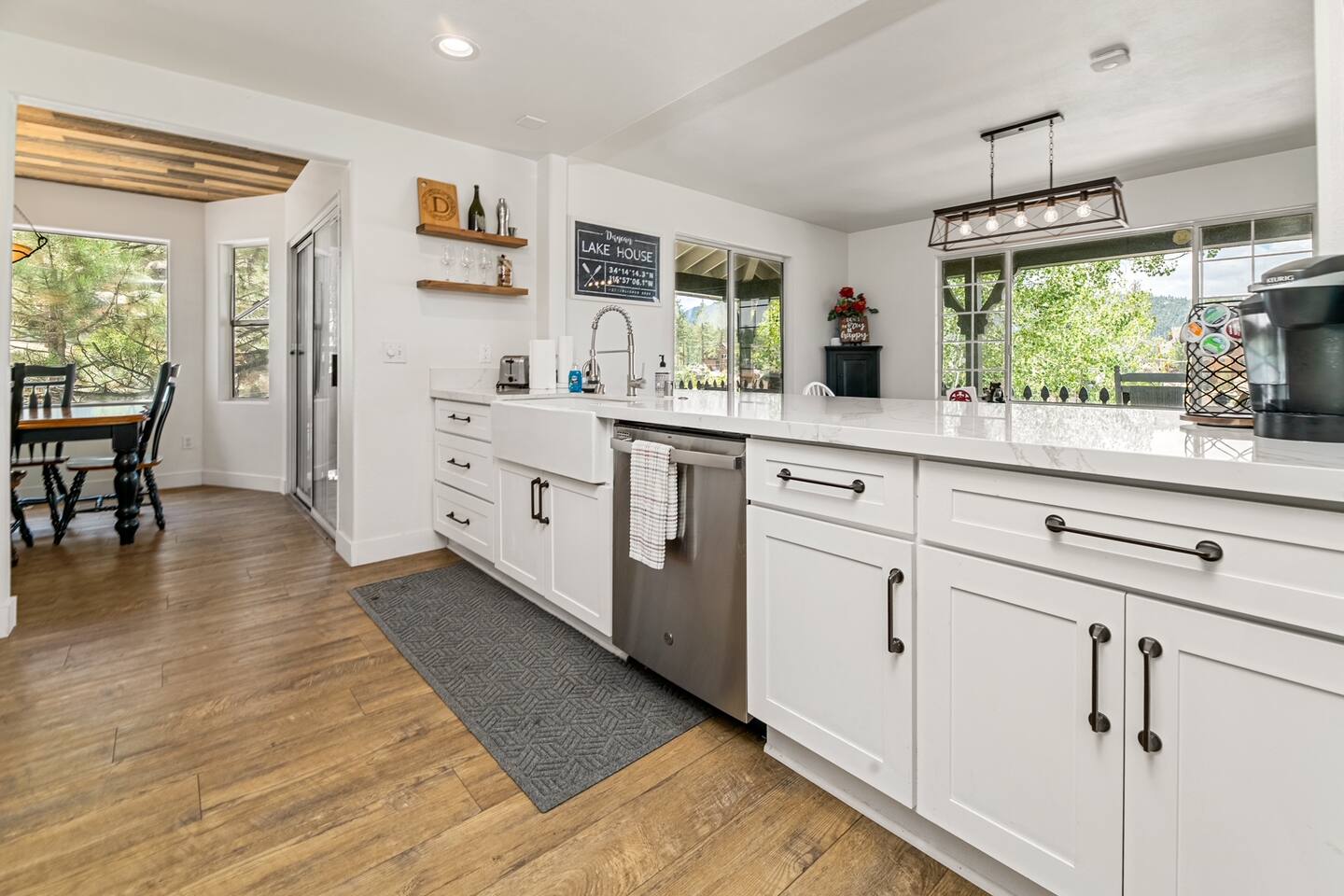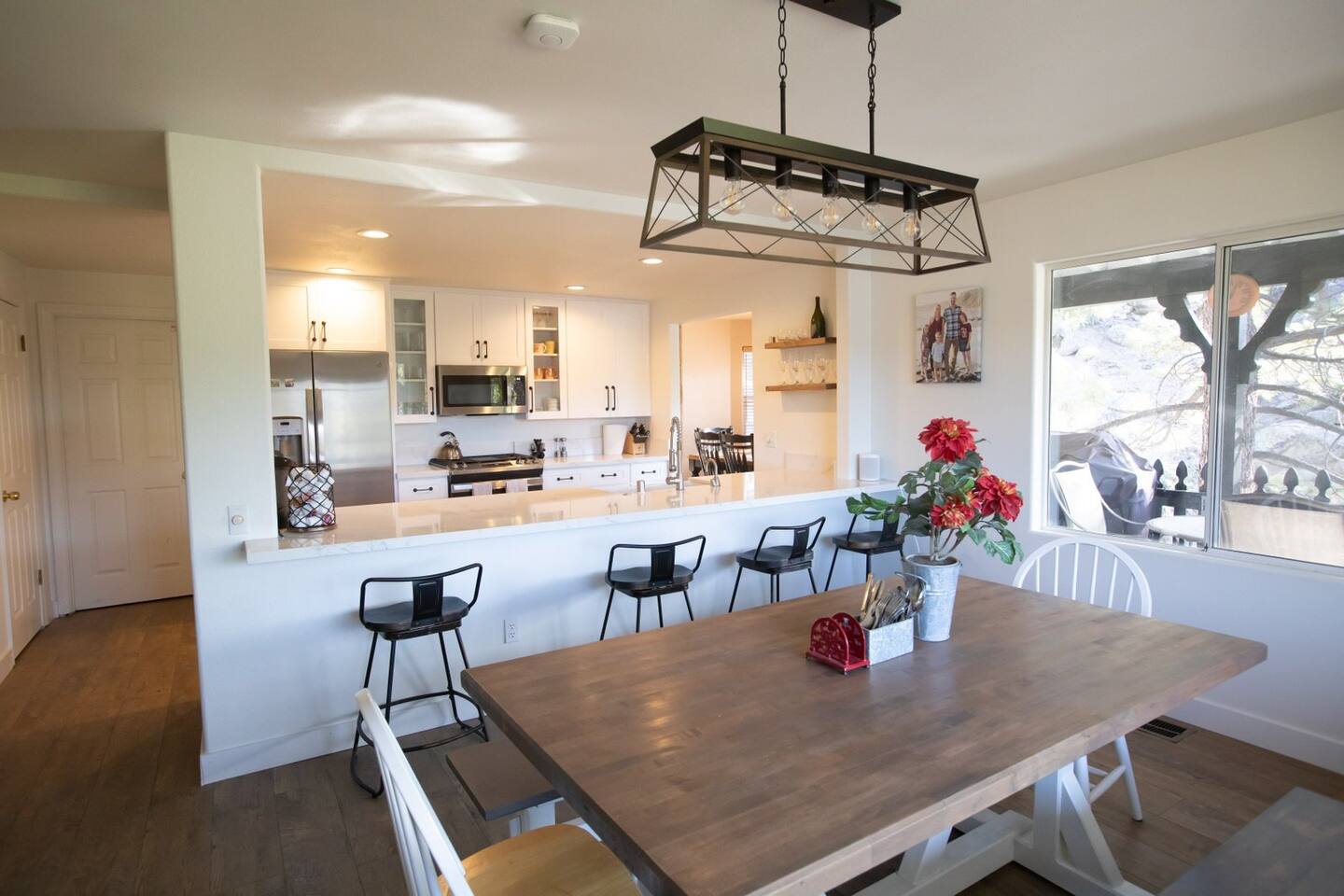 Boulder Bay Farmhouse, a gorgeous cabin w/ 4 bedrooms & 4 full bathrooms overlooking Boulder Bay with it's own private dock completely refinished With Trex material. This charming retreat is the ultimate recreation & relaxation destination in Big Bear that has something for everyone. Boulder Bay Farmhouse offers everything from watching the sunset over Big Bear Lake to stargazing on the patio to soaking in the hot tub. Also has Tesla Powerwall Whole House battery so you never lose power.