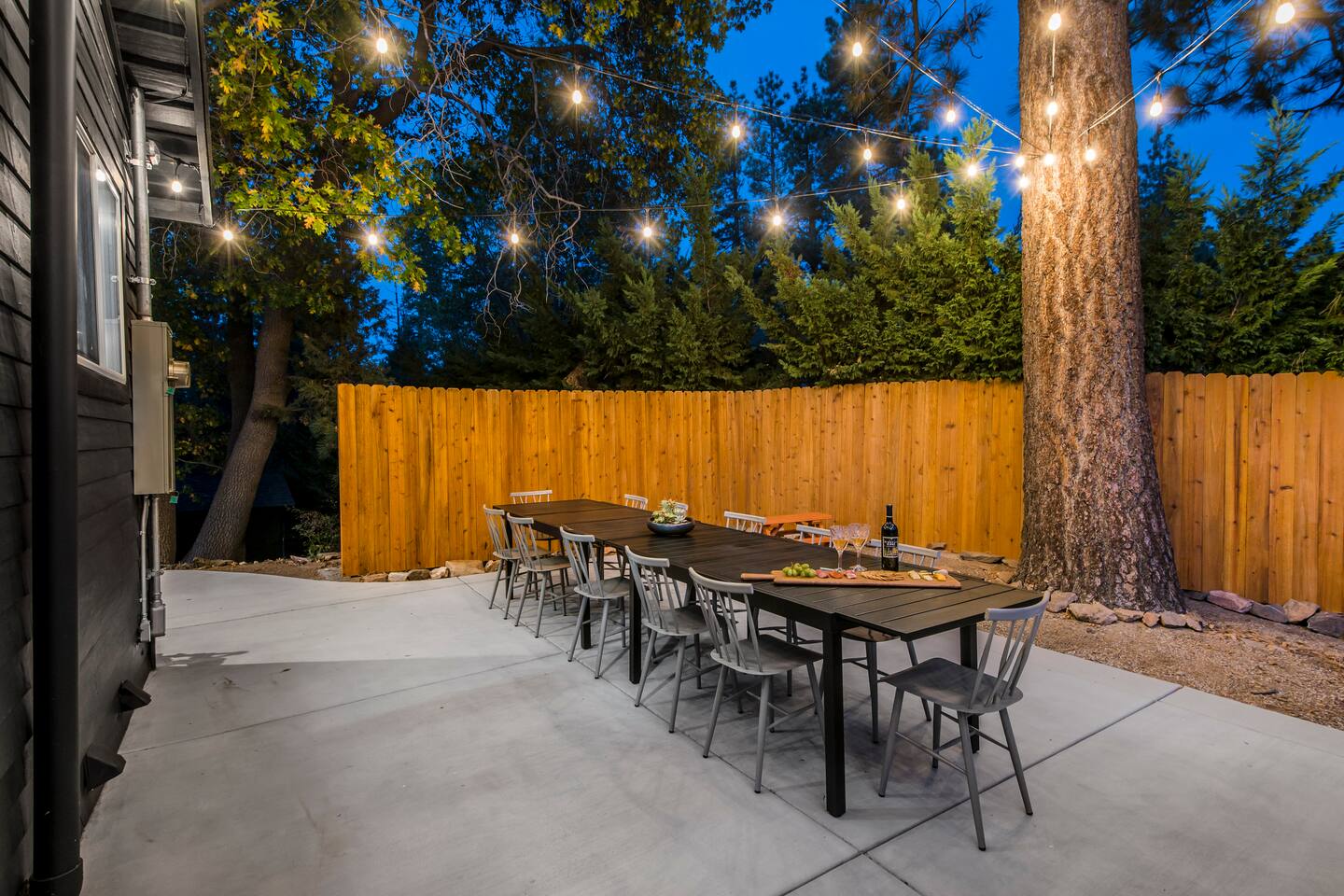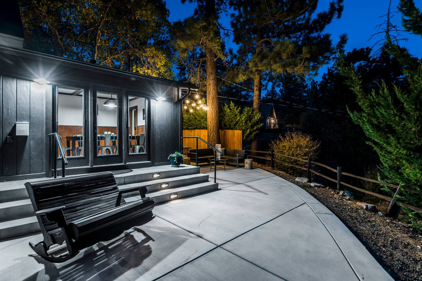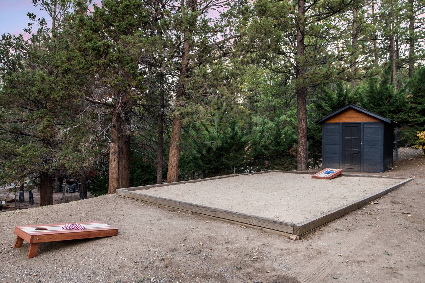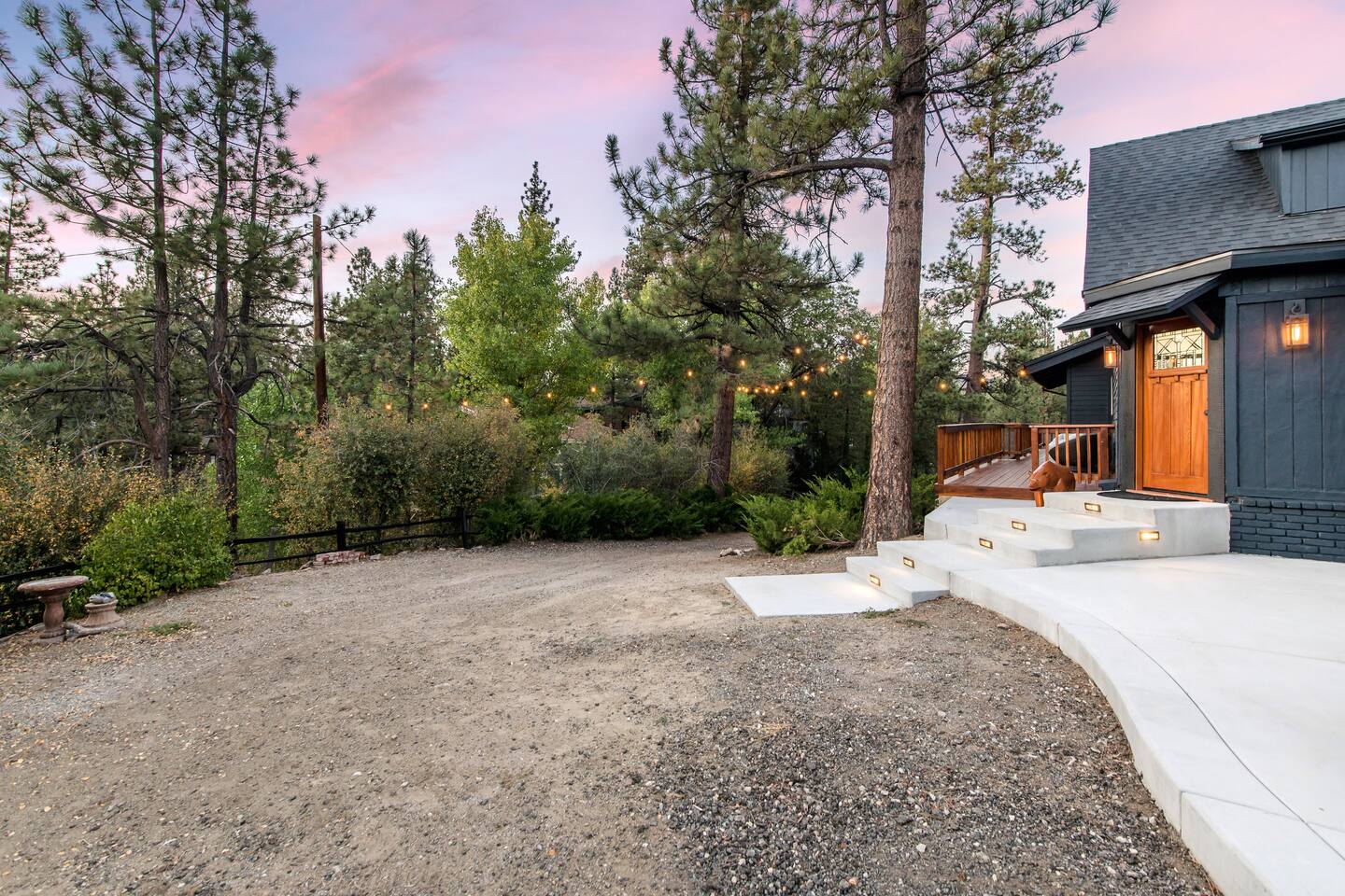 Welcome to Fox Haus! Fox Haus is a charming 2,400+ sq. ft. cabin in Moonridge has 2 levels, 4 bedrooms, & 3 full bathrooms. This spectacular cabin was recently remodeled with modern amenities and stylish decor that preserves its original vintage character. Beautiful details include hardwood floors throughout, sloped hand trolled ceilings, original keyhole doors, coffered ceilings, & vintage tile work. The amazing outdoor space has a propane fire pit, a big hot tub, and dining table with Edison lights. These unique, charming details bring so much warmth and character to this cabin, giving it a true mountain retreat feel that makes it stand out! This gorgeous retreat has a wood-burning fireplace, game room with a foosball table, hot tub for 7, & gorgeous views of both ski resorts. The kitchen is fully-stocked and all bedding & linens are provided by our professional cleaning crew. Amenities include free high speed Wi-Fi, TVs with streaming services, laundry room, play area for kids, & more. Fox Haus is the perfect choice for a romantic getaway, a business retreat, or a fun family destination. -------------------- OCCUPANCY Big Bear Lake local ordinance 99.300 limits maximum occupancy to 12 people (10 adults max) & 4 parked cars for Fox Haus. Please note that children, toddlers, and infants do count as a person. Please do not book or arrive with more than the maximum or you could be fined from the city and evicted with no money back. -------------------- DOGS Dogs always stay for free at Fox Haus! We welcome a maximum of 2 dogs. -------------------- LOCATION For your convenience, Fox Haus is located in the Lower Moonridge area of Big Bear & perfectly located just minutes from tons of activities including hiking, golfing, skiing, biking, swimming, & more. This retreat is 2.3 miles from Bear Mountain, 2 miles from Snow Summit, 1.2 miles from Alpine Zoo, & a quick 8-10 minute drive to Big Bear Village downtown shops & restaurants. -------------------- ROOMS Living Room *** There is NO TV in the living room. Instead, each bedroom has a TV, including a 65" TV in the bunk bedroom/den. * The living room is light and bright with three large picture windows with panoramic views of the mountainside, trees, and ski slopes. * Desk with mountain views – a perfect place to work remotely and/or online learning. (Fast WiFi speed!) * Little library with assorted books for our guests that love to read. * Separate dining area with a long wooden table that sits 8 for family meals or game nights. * A wood-burning fireplace anchors the room for cozy nights by the fire. There is central heat throughout. Room fans are provided during the summer months. ------------ Kitchen * Spacious and fully stocked with dinnerware, utensils, good quality pots, and pans. * Everything you would need to cook a big family meal. Basic spices provided. * All new Kitchen Aid appliances. * Kitchen table with additional seating for 4. * Coffee Bar - Keurig/ full drip coffee maker/French Press/lots of mugs. Coffee pods & sugar provided. * Pre-stocked with paper towels/dish soap/dishwasher tabs/ sponges/garbage bags. * There is a mudroom off the kitchen to hang coats/store adventure gear with attached laundry room with full-size washer and dryer. We even provide laundry pods/fabric sheets for our guest’s convenience. ------------ BATHROOMS * The cabin has three recently remodeled full bathrooms—two on the main level and one upstairs. Shampoo, conditioner, body wash, hand soap, and hairdryers are provided in all bathrooms. ---------------- BEDROOMS Fox Haus has 4 bedrooms. * Bedroom #1: This upstairs bedroom has 2 beds and can sleep up to 3 people. It has 1 queen bed, hardwood floor, a smart TV, a dresser, & 1 pull-out sofa bed (twin). * Bedroom #2 (Bunk Bed & Game Room): This big downstairs bedroom has 6 beds and can sleep up to 8 people. It features a 65” Roku Smart TV (Netflix, Apple TV, Hulu), a dedicated game table for 4, a foosball table, beamed vaulted ceilings, & charging stations. This large bedroom has 4 full size beds and 2 twin size beds. The top beds of the bunk-beds each have a maximum weight of 185 lbs. Bed #1-A: 1 bunk-bed (1 full over 1 full) Bed #1-B: 1 bunk-bed (1 full over 1 full) Bed #1-C: 1 daybed (1 twin) Bed #1-D: 1 daybed with pull-out trundle bed (1 twin) * Bedroom #3: This upstairs bedroom has 1 bed and can sleep up to 2 people. It has 1 queen bed, dresser, a smart TV, & beautiful mountain views. * Bedroom #4: This bedroom has 1 single (twin) bed and hardwood floors. -------------- Outside Amenities Our cabin is on an over 14,000 sq foot lot. (Over 1/3 of an acre) Plenty of usable flat areas both in front and back of the home for exploring and outside play. The front concrete area is an entertainer’s delight, faces mountains and ski resorts so guests can enjoy amazing views and star-filled nights. Stargaze from our brand new 7 seat Jacuzzi hot tub. Natural gas concrete fire pit with wrap-around seating. S'mores anyone? Outside sectional sofa lounge area for relaxing in the fresh mountain air. Outside dining table (seats 12). Overhead string lights for extra ambiance. Flat area for outside games. Wrap around deck has an area with a gas BBQ and prep table to whip up a feast. Back Area Plenty of flat outdoor areas for exploring, outside games, snow play, and sledding. Some outdoor games that we try to provide: * Corn Hole / Bean Bag Toss * Giant Jenga * Croquet * Tic Tac Toe (If any of these games are damaged or missing due to previous guests, we apologize for the inconvenience.) The Fox Haus is family and kid-friendly. We would love for your children to make everlasting memories at our cabin. We provide for our littlest guests: Our super cute playroom (Camp Fox) High Chair Pack and play with sheets. Kids plates/bowls and utensils. Assorted kids books and games. -------------------- RULES Please note that we do not allow parties. Quiet hours in Big Bear Lake are 10 PM to 7 AM so no noise may leave your pro