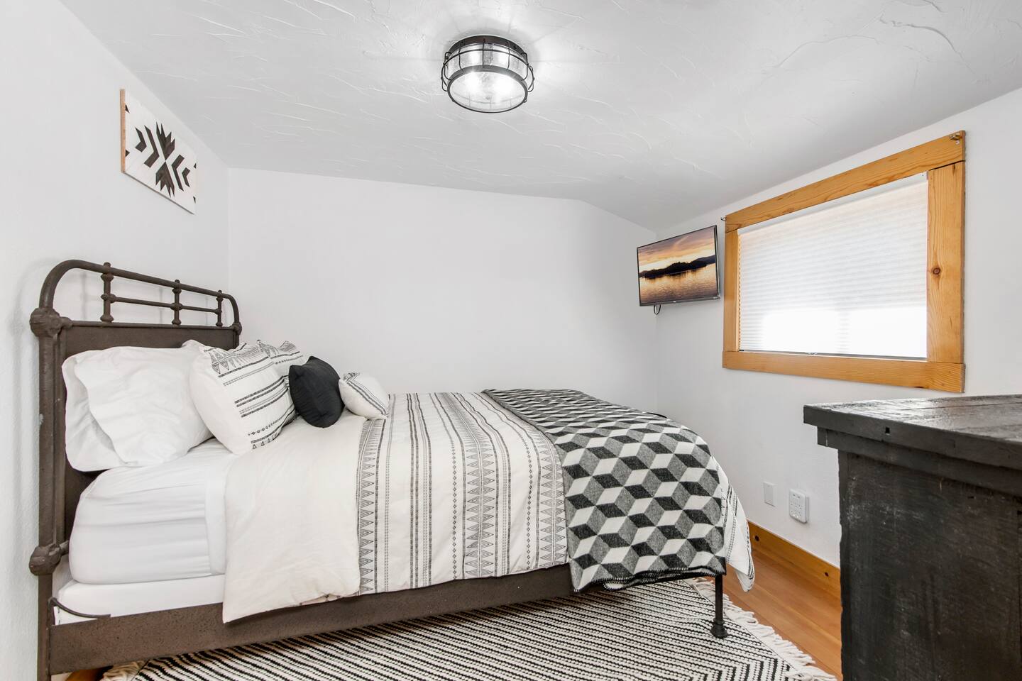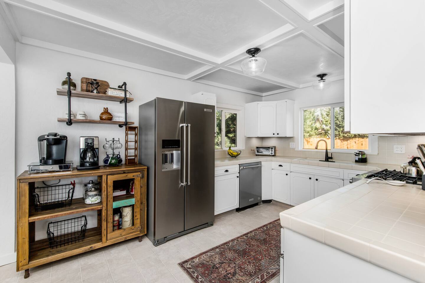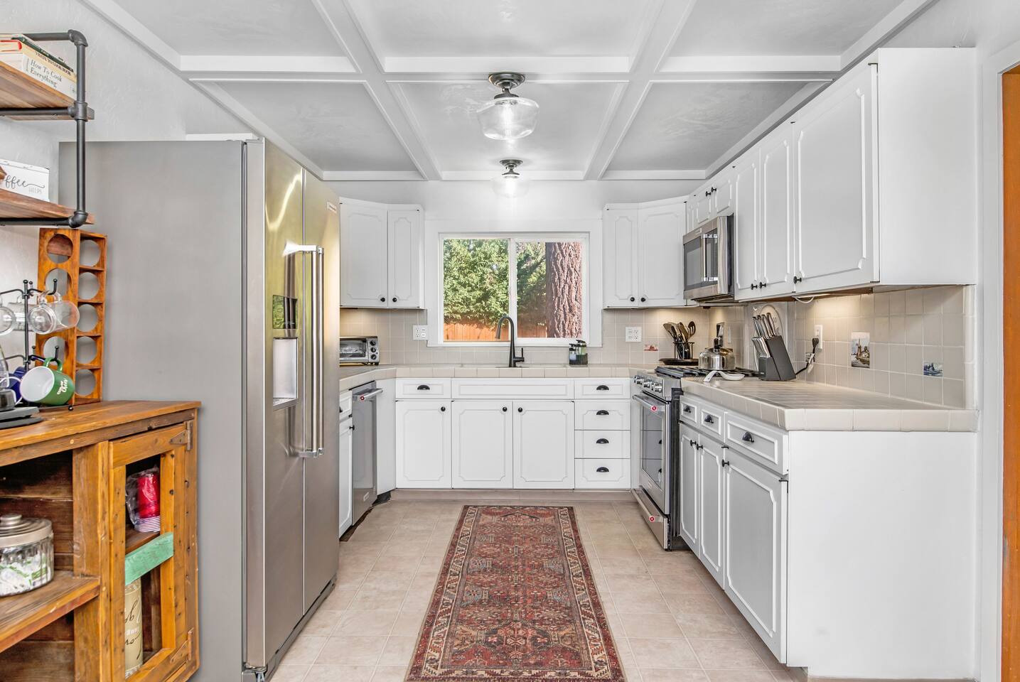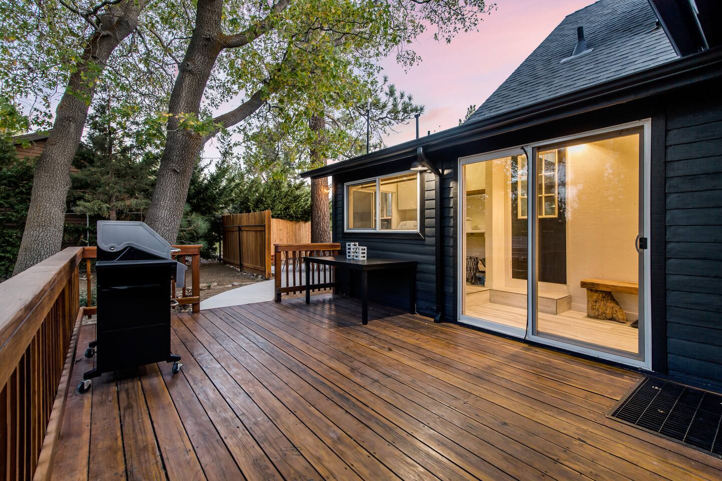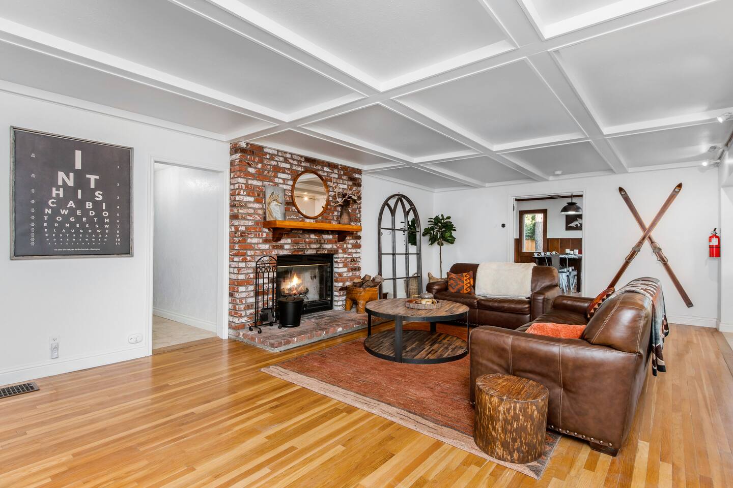 Welcome to Fox Haus! Fox Haus is a charming 2,400+ sq. ft. cabin in Moonridge has 2 levels, 4 bedrooms, & 3 full bathrooms. This spectacular cabin was recently remodeled with modern amenities and stylish decor that preserves its original vintage character. Beautiful details include hardwood floors throughout, sloped hand trolled ceilings, original keyhole doors, coffered ceilings, & vintage tile work. The amazing outdoor space has a propane fire pit, a big hot tub, and dining table with Edison lights. These unique, charming details bring so much warmth and character to this cabin, giving it a true mountain retreat feel that makes it stand out! This gorgeous retreat has a wood-burning fireplace, game room with a foosball table, hot tub for 7, & gorgeous views of both ski resorts. The kitchen is fully-stocked and all bedding & linens are provided by our professional cleaning crew. Amenities include free high speed Wi-Fi, TVs with streaming services, laundry room, play area for kids, & more. Fox Haus is the perfect choice for a romantic getaway, a business retreat, or a fun family destination. -------------------- OCCUPANCY Big Bear Lake local ordinance 99.300 limits maximum occupancy to 12 people (10 adults max) & 4 parked cars for Fox Haus. Please note that children, toddlers, and infants do count as a person. Please do not book or arrive with more than the maximum or you could be fined from the city and evicted with no money back. -------------------- DOGS Dogs always stay for free at Fox Haus! We welcome a maximum of 2 dogs. -------------------- LOCATION For your convenience, Fox Haus is located in the Lower Moonridge area of Big Bear & perfectly located just minutes from tons of activities including hiking, golfing, skiing, biking, swimming, & more. This retreat is 2.3 miles from Bear Mountain, 2 miles from Snow Summit, 1.2 miles from Alpine Zoo, & a quick 8-10 minute drive to Big Bear Village downtown shops & restaurants. -------------------- ROOMS Living Room *** There is NO TV in the living room. Instead, each bedroom has a TV, including a 65" TV in the bunk bedroom/den. * The living room is light and bright with three large picture windows with panoramic views of the mountainside, trees, and ski slopes. * Desk with mountain views – a perfect place to work remotely and/or online learning. (Fast WiFi speed!) * Little library with assorted books for our guests that love to read. * Separate dining area with a long wooden table that sits 8 for family meals or game nights. * A wood-burning fireplace anchors the room for cozy nights by the fire. There is central heat throughout. Room fans are provided during the summer months. ------------ Kitchen * Spacious and fully stocked with dinnerware, utensils, good quality pots, and pans. * Everything you would need to cook a big family meal. Basic spices provided. * All new Kitchen Aid appliances. * Kitchen table with additional seating for 4. * Coffee Bar - Keurig/ full drip coffee maker/French Press/lots of mugs. Coffee pods & sugar provided. * Pre-stocked with paper towels/dish soap/dishwasher tabs/ sponges/garbage bags. * There is a mudroom off the kitchen to hang coats/store adventure gear with attached laundry room with full-size washer and dryer. We even provide laundry pods/fabric sheets for our guest’s convenience. ------------ BATHROOMS * The cabin has three recently remodeled full bathrooms—two on the main level and one upstairs. Shampoo, conditioner, body wash, hand soap, and hairdryers are provided in all bathrooms. ---------------- BEDROOMS Fox Haus has 4 bedrooms. * Bedroom #1: This upstairs bedroom has 2 beds and can sleep up to 3 people. It has 1 queen bed, hardwood floor, a smart TV, a dresser, & 1 pull-out sofa bed (twin). * Bedroom #2 (Bunk Bed & Game Room): This big downstairs bedroom has 6 beds and can sleep up to 8 people. It features a 65” Roku Smart TV (Netflix, Apple TV, Hulu), a dedicated game table for 4, a foosball table, beamed vaulted ceilings, & charging stations. This large bedroom has 4 full size beds and 2 twin size beds. The top beds of the bunk-beds each have a maximum weight of 185 lbs. Bed #1-A: 1 bunk-bed (1 full over 1 full) Bed #1-B: 1 bunk-bed (1 full over 1 full) Bed #1-C: 1 daybed (1 twin) Bed #1-D: 1 daybed with pull-out trundle bed (1 twin) * Bedroom #3: This upstairs bedroom has 1 bed and can sleep up to 2 people. It has 1 queen bed, dresser, a smart TV, & beautiful mountain views. * Bedroom #4: This bedroom has 1 single (twin) bed and hardwood floors. -------------- Outside Amenities Our cabin is on an over 14,000 sq foot lot. (Over 1/3 of an acre) Plenty of usable flat areas both in front and back of the home for exploring and outside play. The front concrete area is an entertainer’s delight, faces mountains and ski resorts so guests can enjoy amazing views and star-filled nights. Stargaze from our brand new 7 seat Jacuzzi hot tub. Natural gas concrete fire pit with wrap-around seating. S'mores anyone? Outside sectional sofa lounge area for relaxing in the fresh mountain air. Outside dining table (seats 12). Overhead string lights for extra ambiance. Flat area for outside games. Wrap around deck has an area with a gas BBQ and prep table to whip up a feast. Back Area Plenty of flat outdoor areas for exploring, outside games, snow play, and sledding. Some outdoor games that we try to provide: * Corn Hole / Bean Bag Toss * Giant Jenga * Croquet * Tic Tac Toe (If any of these games are damaged or missing due to previous guests, we apologize for the inconvenience.) The Fox Haus is family and kid-friendly. We would love for your children to make everlasting memories at our cabin. We provide for our littlest guests: Our super cute playroom (Camp Fox) High Chair Pack and play with sheets. Kids plates/bowls and utensils. Assorted kids books and games. -------------------- RULES Please note that we do not allow parties. Quiet hours in Big Bear Lake are 10 PM to 7 AM so no noise may leave your pro
