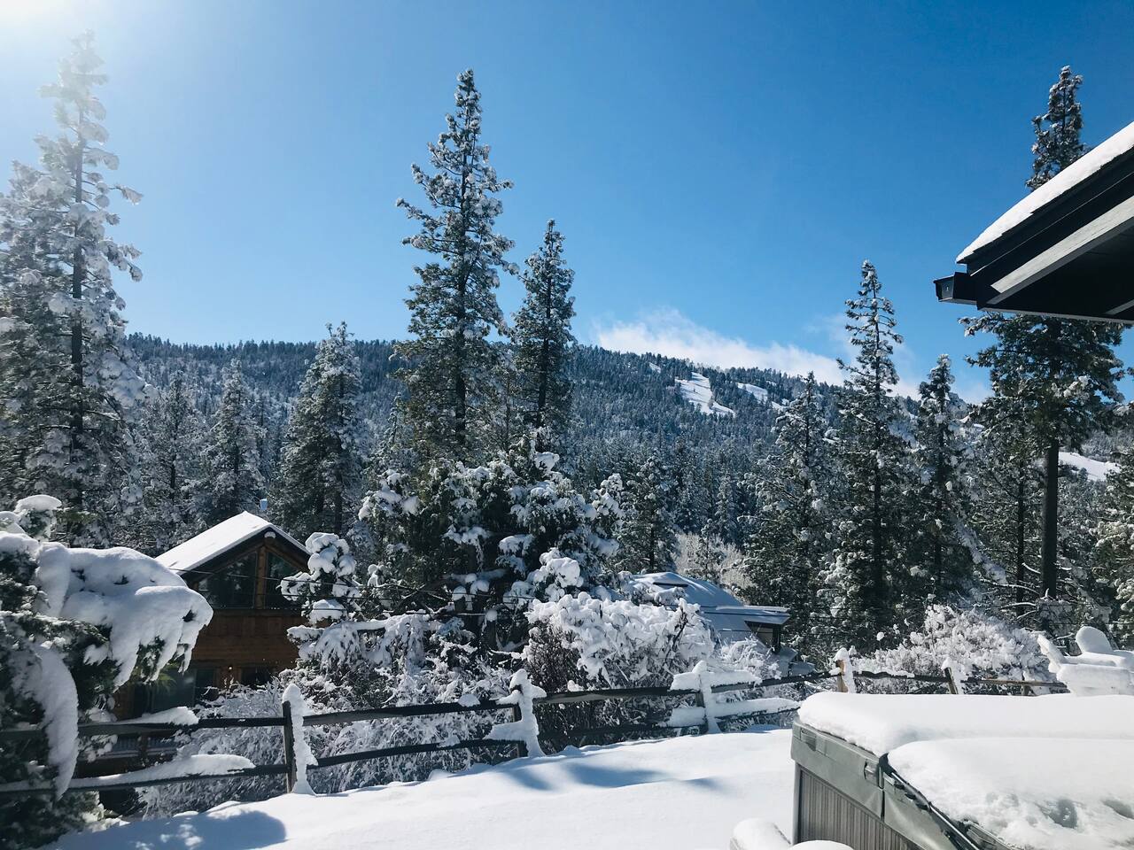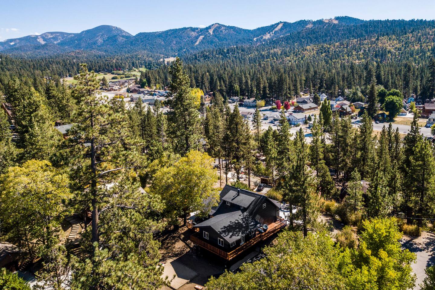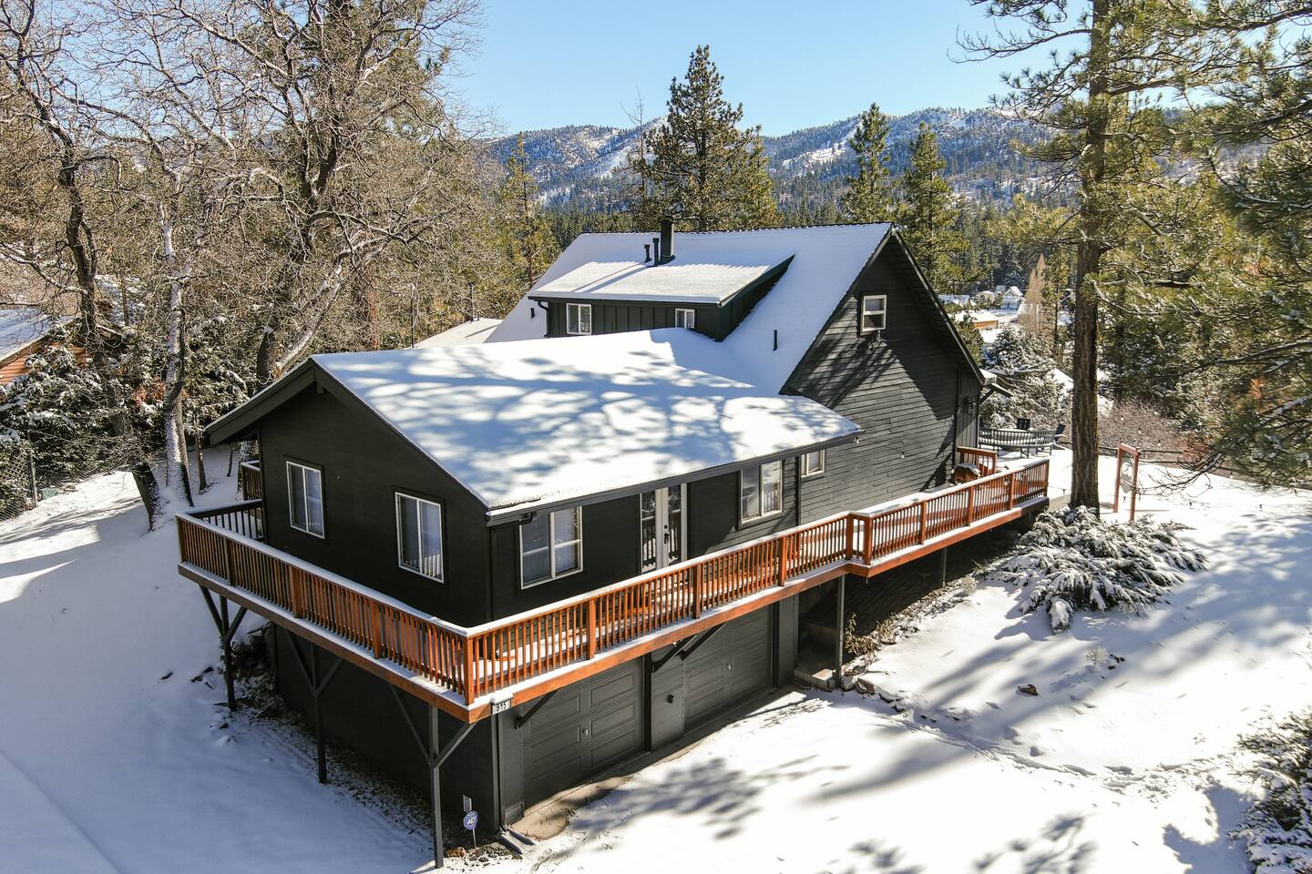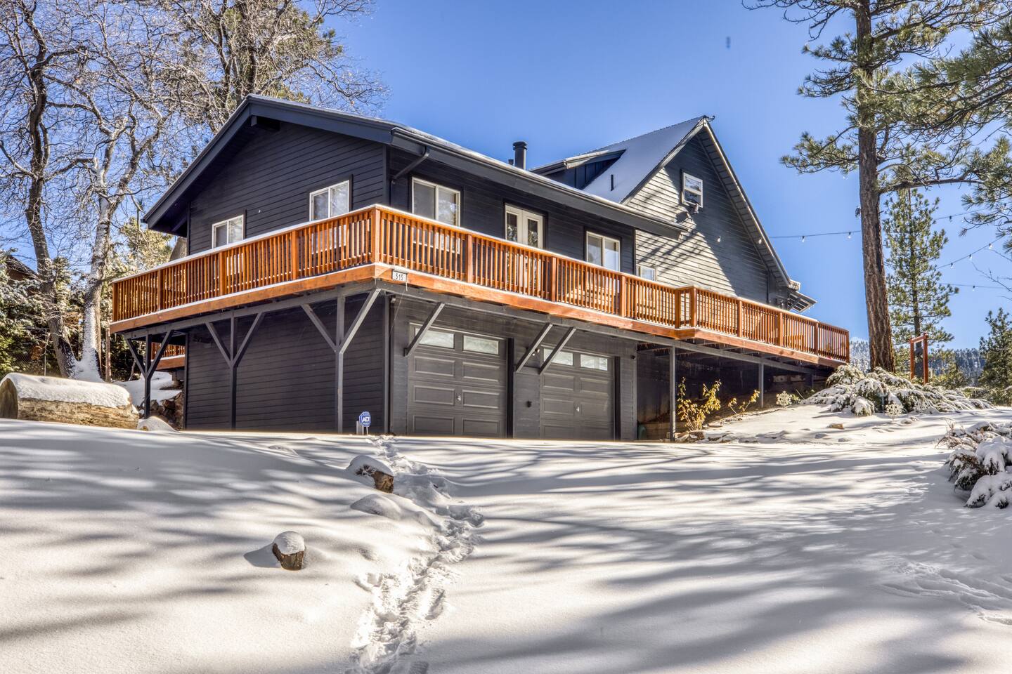 Welcome to Fox Haus, a gorgeous 2,400 sq. ft. classic charmer that sits high on its own private knoll with panoramic views of both ski resorts from inside & hot tub! One of the best outdoor spaces in Big Bear with views, hot tub, propane fire pit, & tons of seating. Centrally located in Lower Moonridge between Snow Summit & Bear Mountain ski resorts, we are a short walk to the new Alpine Zoo, Moonridge Coffee, & Dank Donuts. 5 min drive to the Village.