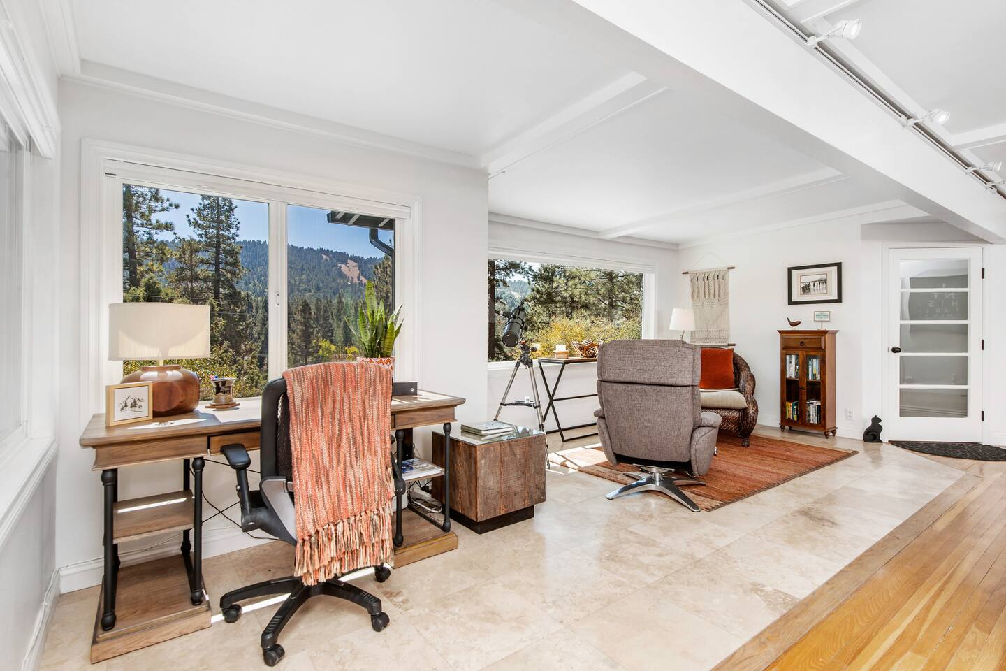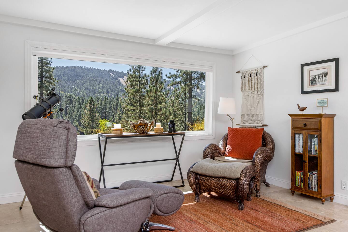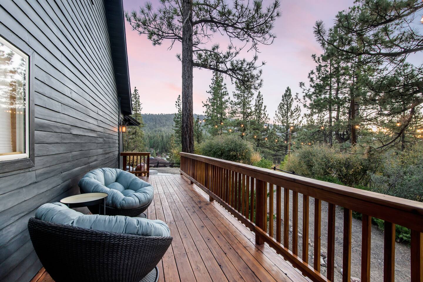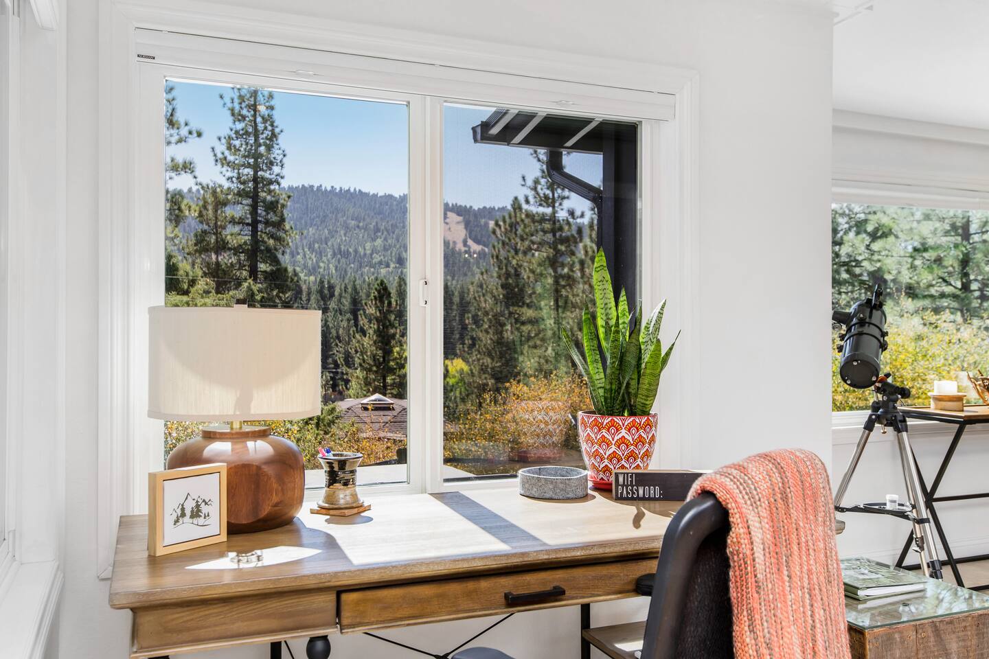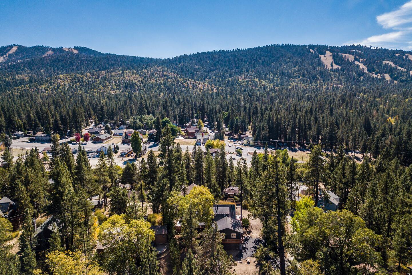 Welcome to Fox Haus, a gorgeous 2,400 sq. ft. classic charmer that sits high on its own private knoll with panoramic views of both ski resorts from inside & hot tub! One of the best outdoor spaces in Big Bear with views, hot tub, propane fire pit, & tons of seating. Centrally located in Lower Moonridge between Snow Summit & Bear Mountain ski resorts, we are a short walk to the new Alpine Zoo, Moonridge Coffee, & Dank Donuts. 5 min drive to the Village.