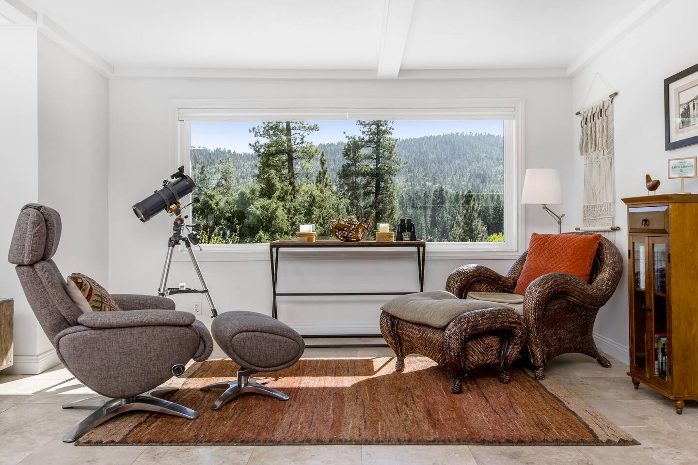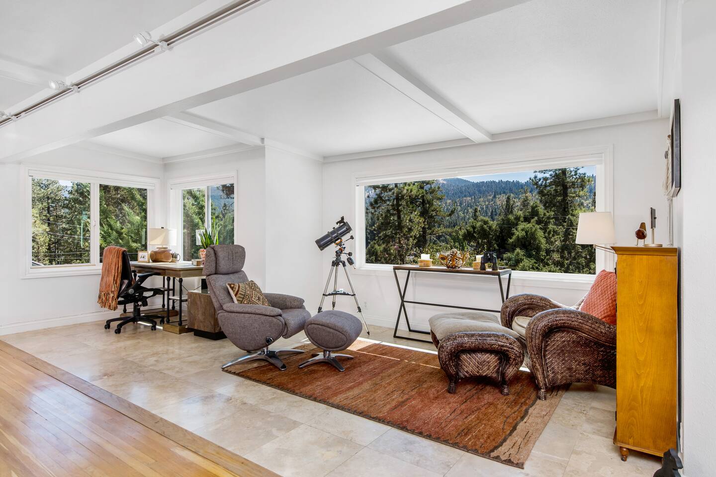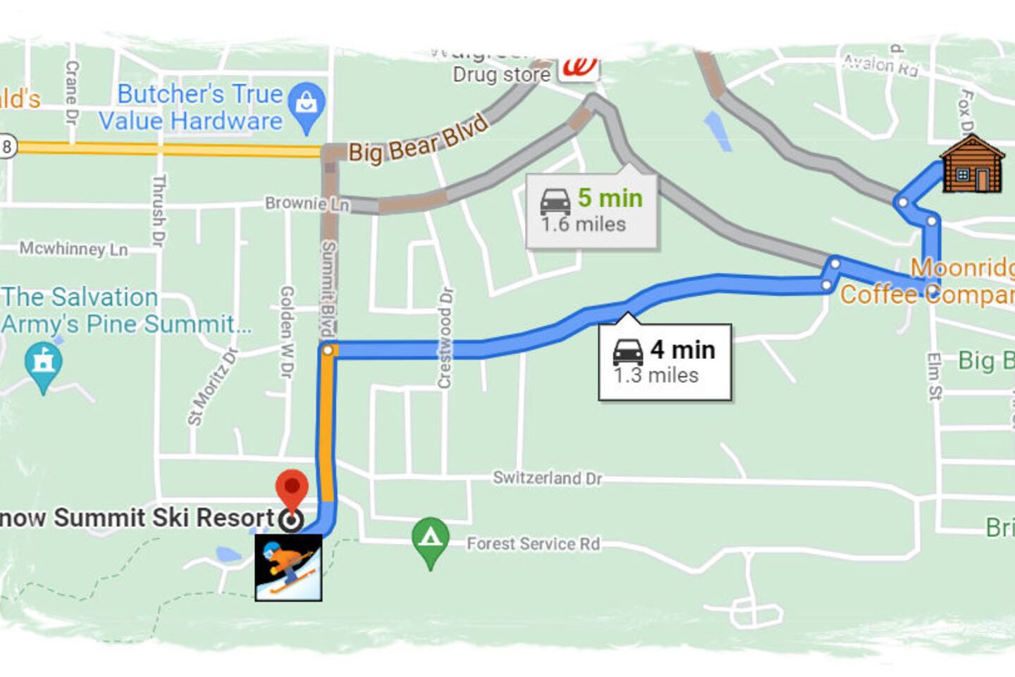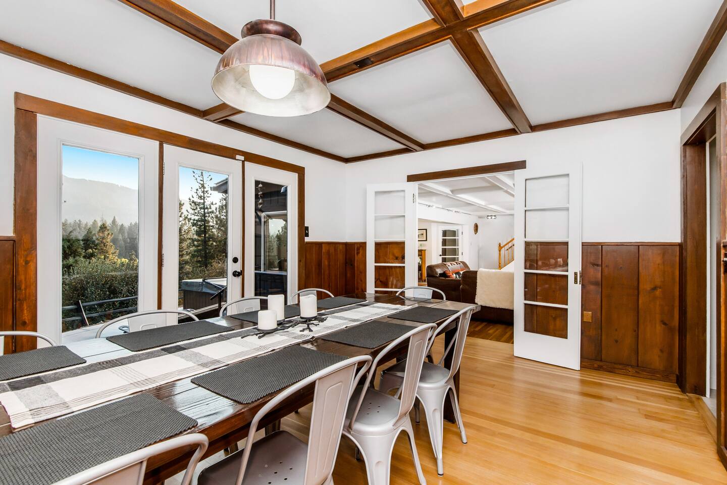 Welcome to Fox Haus, a gorgeous 2,400 sq. ft. classic charmer that sits high on its own private knoll with panoramic views of both ski resorts from inside & hot tub! One of the best outdoor spaces in Big Bear with views, hot tub, propane fire pit, & tons of seating. Centrally located in Lower Moonridge between Snow Summit & Bear Mountain ski resorts, we are a short walk to the new Alpine Zoo, Moonridge Coffee, & Dank Donuts. 5 min drive to the Village.