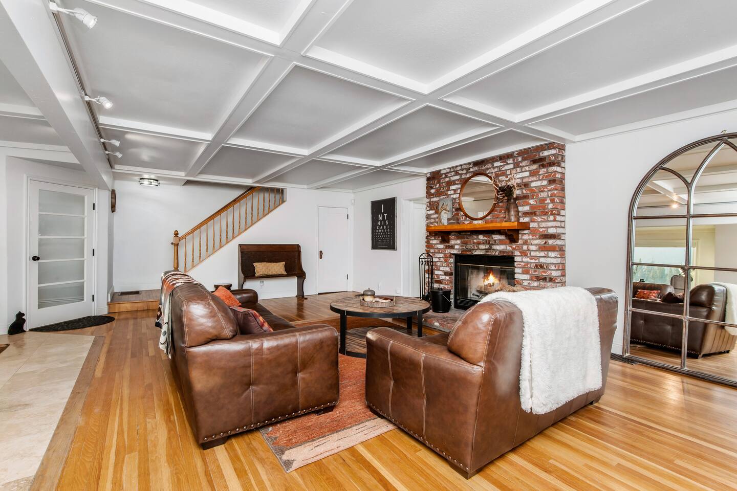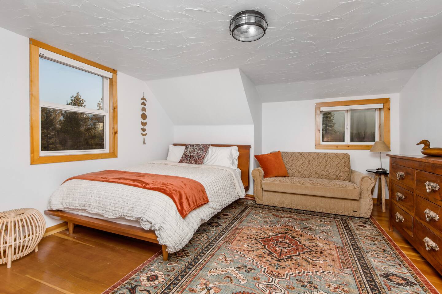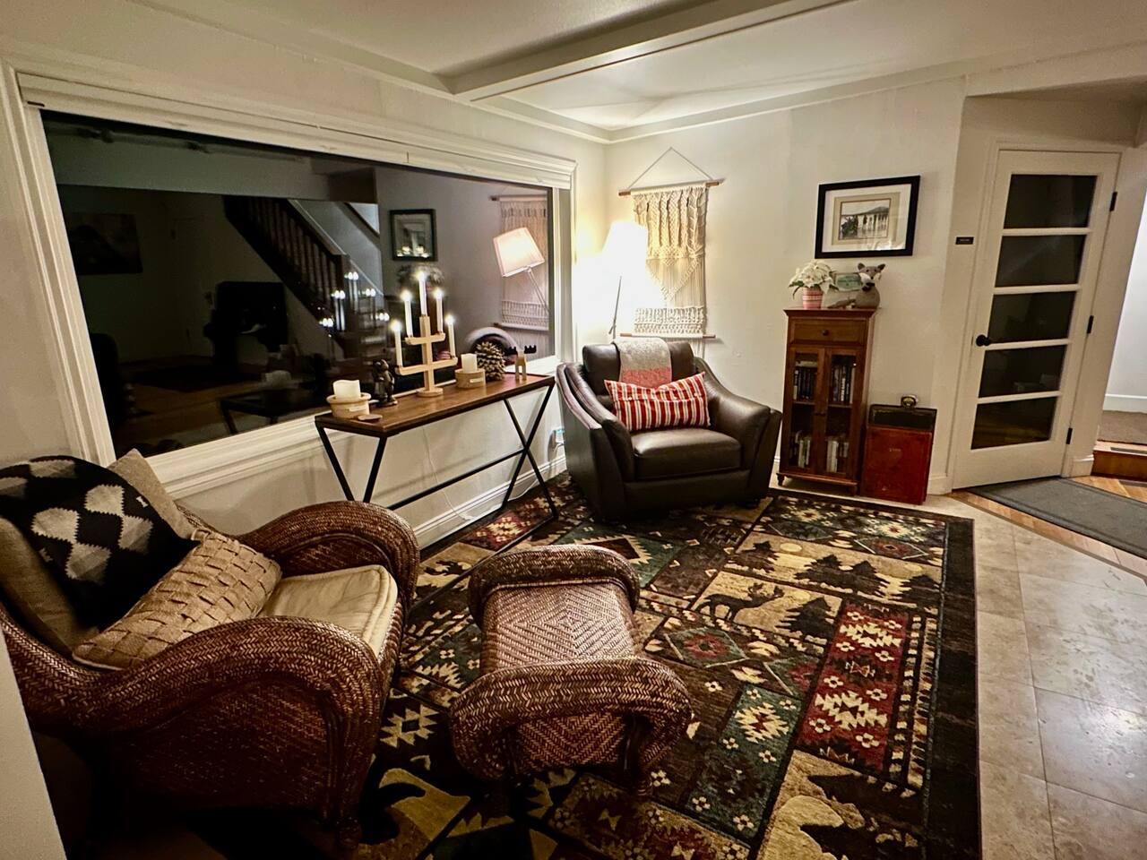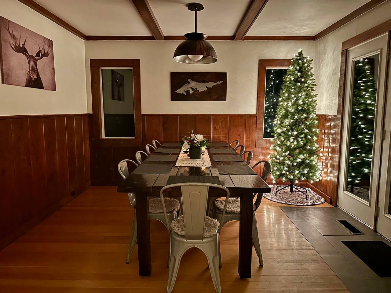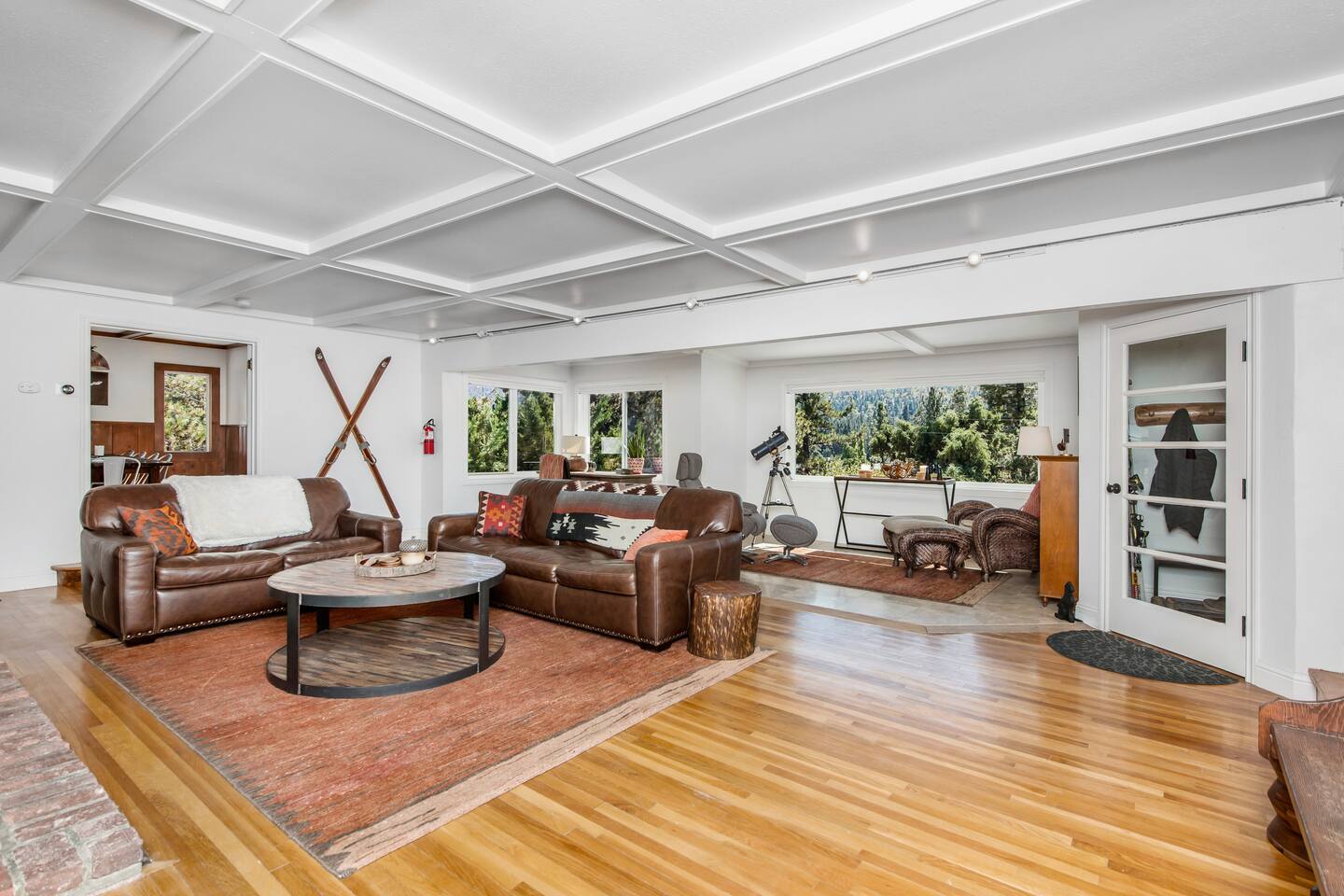 Welcome to Fox Haus, a gorgeous 2,400 sq. ft. classic charmer that sits high on its own private knoll with panoramic views of both ski resorts from inside & hot tub! One of the best outdoor spaces in Big Bear with views, hot tub, propane fire pit, & tons of seating. Centrally located in Lower Moonridge between Snow Summit & Bear Mountain ski resorts, we are a short walk to the new Alpine Zoo, Moonridge Coffee, & Dank Donuts. 5 min drive to the Village.