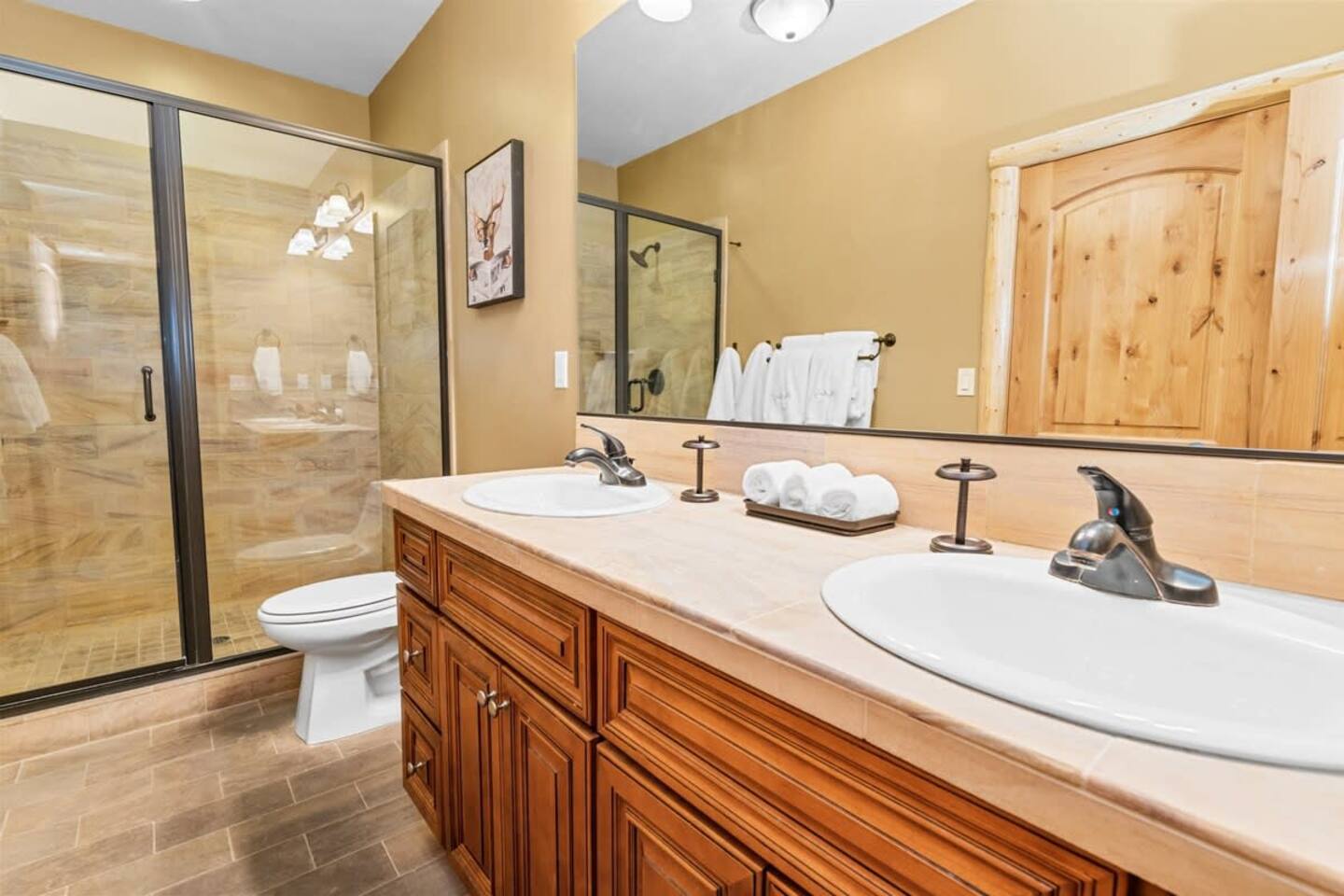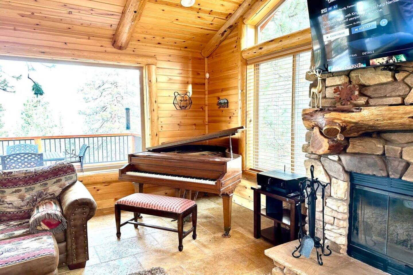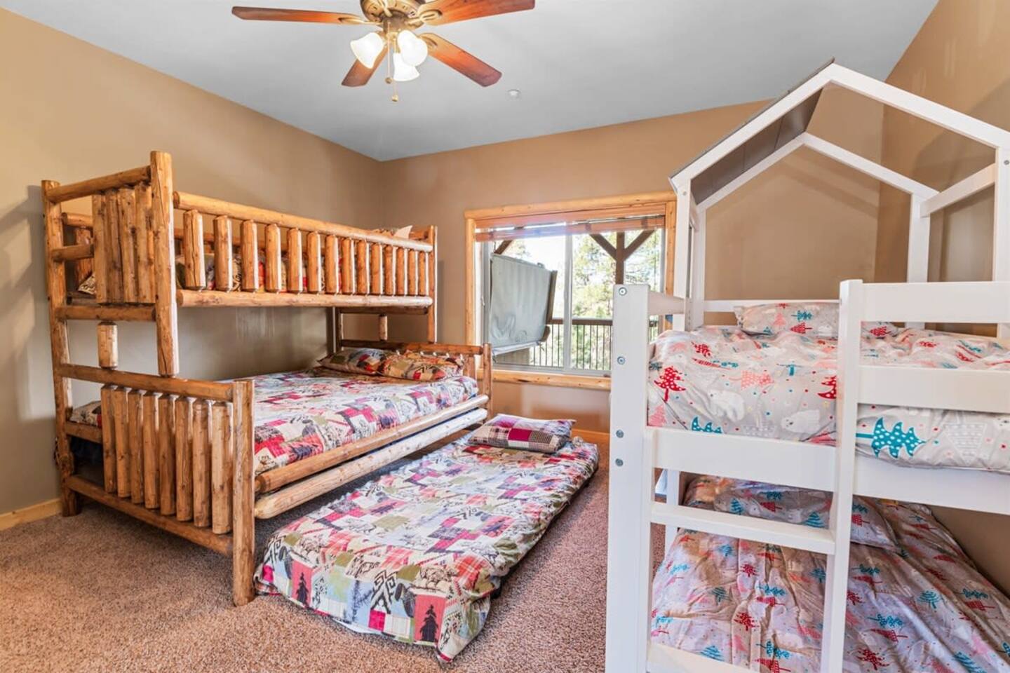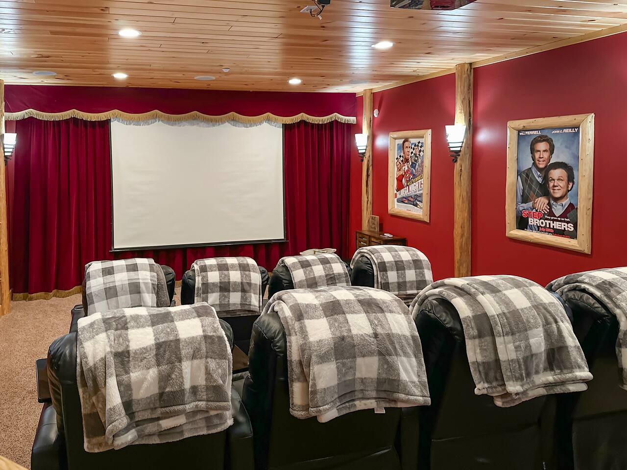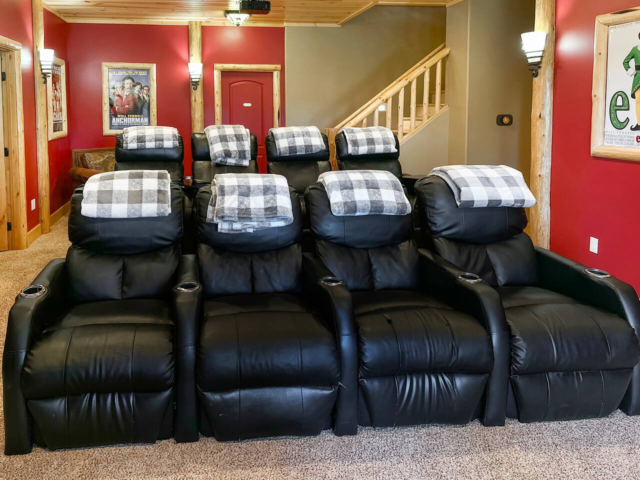 Welcome to Big Bucks Lodge! This gorgeous custom cabin in the exclusive Ironwood Estates neighborhood of Big Bear Lake, just a 10 min walk to the village and the lake, has 3 levels, 6 bedrooms, 3 decks, 4.5 bathrooms, & nearly 4,300 sq. ft. of luxury. Big Bucks Lodge has everything you and your family can imagine in a cabin in Big Bear. From lake views to a fully stocked chef's kitchen with Viking appliances to a movie theater room to a pool table and arcade game room and of course outdoor seating with amazing views and a hot tub, you'll never want to leave! There is parking for 2 cars in the garage. -------------------- AMENITIES Big Bucks Lodge has 2 primary bedroom suites (Bedroom #1 is on the main floor!), a wet bar called the Buck Off Bar, a game room, a movie room, 2 fireplaces (1 gas & 1 wood), & a private hot tub. The gourmet kitchen with Viking appliances is a cook's dream. All bedding & linens are provided by our professional cleaning crew. This spectacular cabin is the perfect getaway for family, friends, & even dogs! Additional amenities include free high speed Wi-Fi, a movie room with a home theater, a game room, TVs with streaming services, central air conditioning (AC), an arcade console with 400+ video games, breathtaking lake views, & more! -------------------- OCCUPANCY Big Bear Lake local ordinance 99.300 limits maximum occupancy to 16 people (14 adults) & 5 parked cars for Big Bucks Lodge. -------------------- LOCATION For your convenience, Big Bucks Lodge is in the upscale Ironwood Estates neighborhood of Big Bear & perfectly located just minutes from tons of activities - hiking, golfing, skiing, biking, swimming, & more. This spectacular retreat is 4.4 miles from Bear Mountain, 2.7 miles from Snow Summit, 3.4 miles from the Alpine Zoo, & 0.3 miles from Big Bear Village downtown shops & restaurants. -------------------- DOGS Dogs always stay for free at Big Bucks Lodge! The maximum number of dogs allowed for this cabin is 2. The yard is fenced off but please note that it is hilly. -------------------- ROOM DESCRIPTIONS * Entrance: Big Bucks Lodge has 3 levels and the entrance is located on the main level of the cabin. There are no stairs required to access the entrance. * Great Room: The luxurious open-concept great room has a grand wood fireplace, smart TV with streaming apps, an antique Everett baby grand piano, vaulted wood beam ceiling, spacious seating, 1 queen sofa pull out bed, a fake bison head, & large glass windows with breathtaking lake views. This room is on the main level and has access to the main level deck. There is also a closet full of board games on the main level. * Kitchen: The fully-stocked & open-concept gourmet kitchen has Viking stainless steel appliances including a refrigerator and 8 burner range with 2 ovens. There is also a microwave, 2 dishwashers, coffee makers (drip & K-cups), electric kettle, griddle, toaster, Ninja blender, air fryer, crock pot, & an island breakfast bar with seating for 4 guests. The kitchen is on the main level and has access to the main level deck. There is also a gas BBQ grill on the main deck. * Dining Area: There is a large dining table with seating adjacent to the open-concept great room and kitchen. * Movie Room: This dedicated media room with a home theater is located on the lower level. It has a motorized movie theater screen, projector with Apple TV, surround sound, plush individual seating for 8 guests, & classic movie theater themed decor. * Game Room: The game room is located on the upper level. It has a wet bar called the Buck Off Bar with a wine fridge, a pool table, a poker table, a gas fireplace, a TV with streaming services, an arcade console with 400+ video games, & seating for guests. This room has beautiful views of Big Bear and access to the upper deck. There is also a closet full of board games on the main level. * Laundry Room: The laundry room has a full size washer and dryer available for your convenience. This room is located on the main level. ----- BEDROOMS: Big Bucks Lodge has 6 bedrooms. All linens & 100% cotton sheets are provided by our professional cleaning crew. * Bedroom #1: This primary bedroom suite located on the main floor has 1 Eastern king bed, ceiling fan, carpet floor, charming rustic decor, and a private full bathroom (Bathroom #1). The Eastern king bed is a Split Sleep Number iLE 360 smart bed with a remote. * Bedroom #2: This bedroom on the lower level has 1 California king bed, ceiling fan, TV, dresser, and carpet floor. This bedroom is located next to the Movie Room and Bathroom #2. * Bedroom #3 (Bunk Bed Room): This dedicated bunk bed room on the lower level has 2 bunk beds, carpet floor, and ceiling fan. The first bunk bed has 1 twin bed over 1 queen bed with a twin XL trundle bed. The second bunk bed has 1 twin bed over 1 twin bed. * Bedroom #4: This primary bedroom suite on the upper level has 1 California king bed, ceiling fan, dresser, TV, and a private full bathroom (Bathroom #4). * Bedroom #5: This bedroom on the upper level has 1 queen bed, ceiling fan, carpet floor, and TV. * Bedroom #6: This bedroom on the upper level has 1 queen bed, ceiling fan, carpet floor, and TV. ----- BATHROOMS: Big Bucks Lodge has 4.5 (4 full & 1 half) bathrooms. * Bathroom #1: This full bathroom on the main level is adjacent to Bedroom #1, one of the two primary suites in Big Bucks Lodge. It has dual sinks, a walk-in shower, & a claw foot bathtub. * Bathroom #2: This full bathroom on the lower level has dual sinks and a walk-in shower. It is located next to the Movie Room, Bedroom #2, and Bedroom #3. * Bathroom #3: This full bathroom on the upper level has a combination shower with bathtub. * Bathroom #4: This full bathroom on the upper level is adjacent to Bedroom #4, one of the two primary suites in Big Bucks Cabin. It has a walk-in shower and dual sinks. * Bathroom #5: This half bathroom is located on the main level. ----- DECKS: Big Bucks Lodge is a large 3 story luxury cabin w