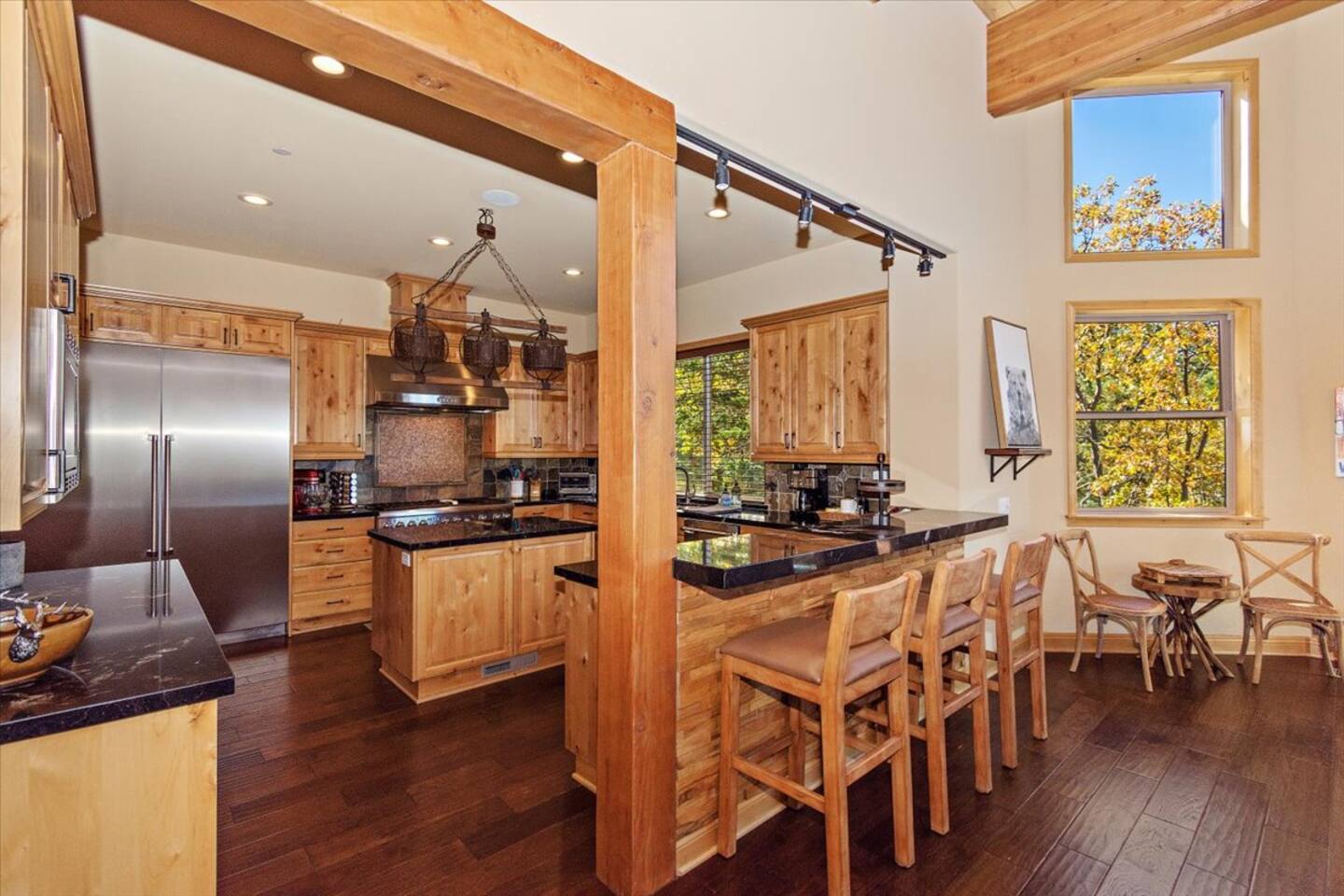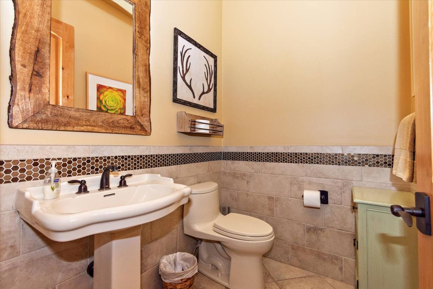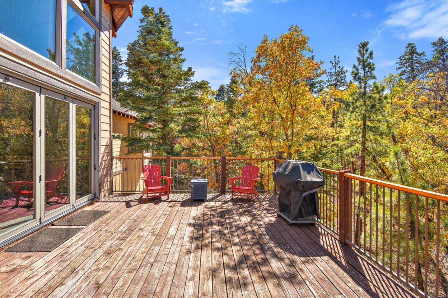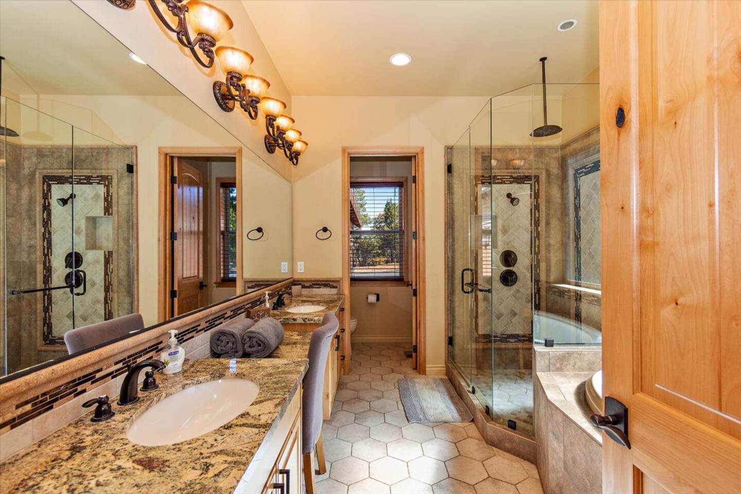 Welcome to Angels Camp! Your family and friends will love the luxury, comfort, and roominess of this 4800+ sq. ft. cabin with a spacious hot tub deck outside connecting you with nature. Every bedroom has its own attached ensuite bathroom. This breathtaking getaway in the Upper Moonridge neighborhood of Big Bear has 2 levels, 4 bedrooms, 5.5 bathrooms, & a nearly half acre fully fenced lot. Big Bear Lake local ordinance 99.300 limits maximum occupancy to 13 guests & 5 parked cars for Angels Camp. Angels Camp has 2 master suites, 2 wet bars, a stacked stone two-sided gas fireplace, a dedicated game room, ensuite bathrooms with heated floors for all 4 bedrooms, a hot tub, and amenities galore. The kitchen is fully-stocked and all bedding & linens are provided by our professional cleaning crew. This upscale cabin is the perfect getaway for family & friends! Amenities include free high speed Wi-Fi, smart TVs, central air conditioning (AC), and gorgeous forest views. For your convenience, Angels Camp is perfectly located just minutes from tons of Big Bear activities including hiking, golfing, skiing, biking, swimming, & more. LIVING ROOM: The open concept living room is located on the main level. It features a stacked stone two-sided gas fireplace, hardwood floor, a wet bar, Samsung smart TV with cable, and a Denon speaker (surround sound). With a large sofa and two armchairs, there is plenty of seating for guests. A workstation with a built-in desk and an iMac computer are available for guest use. Board games and puzzles are located in the large wooden cabinet. High speed Wi-Fi is free. DINING ROOM: The open concept formal dining room is located on the main level next to the living room. It features a large rustic wood dining table with seating for 8 guests in front of the dual-sided gas fireplace. It has a hardwood floor, small game table with seating for 2 guests, beautiful forest views, and access to the large private deck. Extra table linens and place settings are stored in a wooden cabinet in the living room. KITCHEN: The fully-stocked kitchen is a chef's dream come true! Located on the main level next to the dining room, it has stainless steel appliances, oak cabinets, an island, granite counters, hardwood floor, and a breakfast bar with seating for 3 guests. Features include a 6 burner gas range with griddle, double ovens, microwave, toaster oven, drip coffee maker, dishwasher, over-sized refrigerator, electric kettle, Denon speaker, and more. DECK: The expansive private deck has a Weber barbecue grill, outdoor seating, and a Bullfrog spa. This deck can be accessed through the dining room on the main level. BEDROOM #1: This master bedroom is located on the main level. It has 1 California king bed, hardwood floor, Samsung smart TV with sound bar, Denon speaker, Nest thermostat, and walk-in closet. The ensuite bathroom (bathroom #1) has a Jacuzzi bathtub, waterfall shower, toilet, and dual sinks with a built-in vanity. BATHROOM #1: The full private master bathroom for bedroom #1 is located on the main level. It has a Jacuzzi spa bathtub, waterfall shower, toilet, dual sinks with a built-in vanity, and a heated floor. LAUNDRY ROOM: The laundry room is located on the main level next to the garage. It has a full size washer and dryer, sink, and first aid kit. PLAYROOM: This dedicated playroom for children is located on the main level. It has an electric keyboard, play tent, stuffed animals, and big windows with beautiful views. BEDROOM #2: This bedroom is located on the main level. It has 2 full beds with an ensuite bathroom (bathroom #2), Nest thermostat, beautiful forest views, and hardwood floor. BATHROOM #2: The full private bathroom for bedroom #2 is located on the main level. It has a bathtub with shower, toilet, sink, and a heated floor. BEDROOM #3: This bedroom is located on the main level. It has 1 queen bed with an ensuite bathroom (bathroom #3), hardwood floor, and charming decor. BATHROOM #3: The full private bathroom for bedroom #3 is located on the main level. It has a walk-in shower, toilet, sink, and a heated floor. BEDROOM #4: This bedroom is located on the main level. It has 1 king bed with an ensuite bathroom (bathroom #4), hardwood floor, and private access to the deck (and hot tub!). BATHROOM #4: The full private bathroom for bedroom #4 is located on the main level. It has a walk-in shower, toilet, sink, and a heated floor. BEDROOM #5 / GAME ROOM - This downstairs bedroom has 1 bunk bed (1 twin bed over 1 full bed) and serves as a game room. Features include a Samsung smart TV with cable, wet bar with refrigerator, Nest thermostat, Denon speaker, big sectional sofa, high-top game table with seating for 4 guests, shuffleboard, foosball table, PS4 video game console, Crokinole, and access to a concrete deck. This room can serve as a 5th bedroom. BATHROOM #5: This full bathroom is located on the downstairs level next to the Game Room. It has a bathtub with shower, toilet, sink, and a heated floor. BATHROOM #6: This half bathroom with a sink and toilet is located off the Living Room on the main level. BACKYARD: Angels Camp has a nearly half acre lot with a fully fenced backyard that is perfect for children and pets. Please note that garage access is allowed. However, there are no garage door remotes. There are several Google Home / Alexa devices in the home. These devices are turned "On" and will capture voice. Feel free to turn off the microphones on the devices. We do allow 1 well behaved, house trained dog who can not be left alone in the cabin at any time.