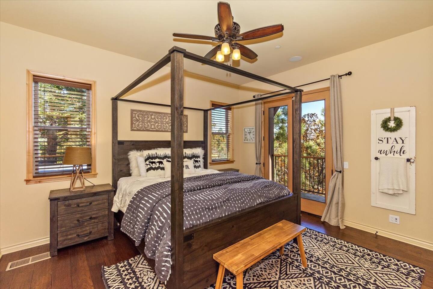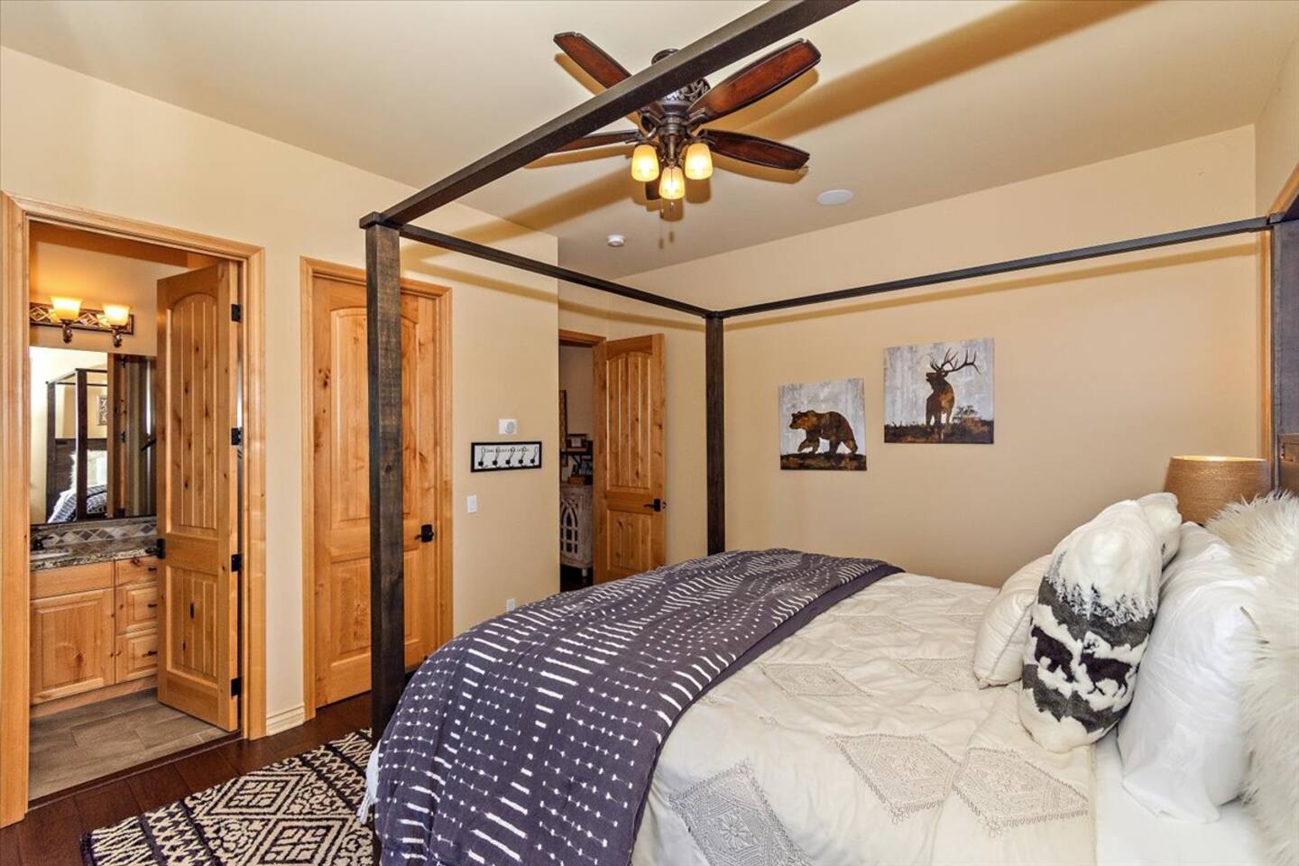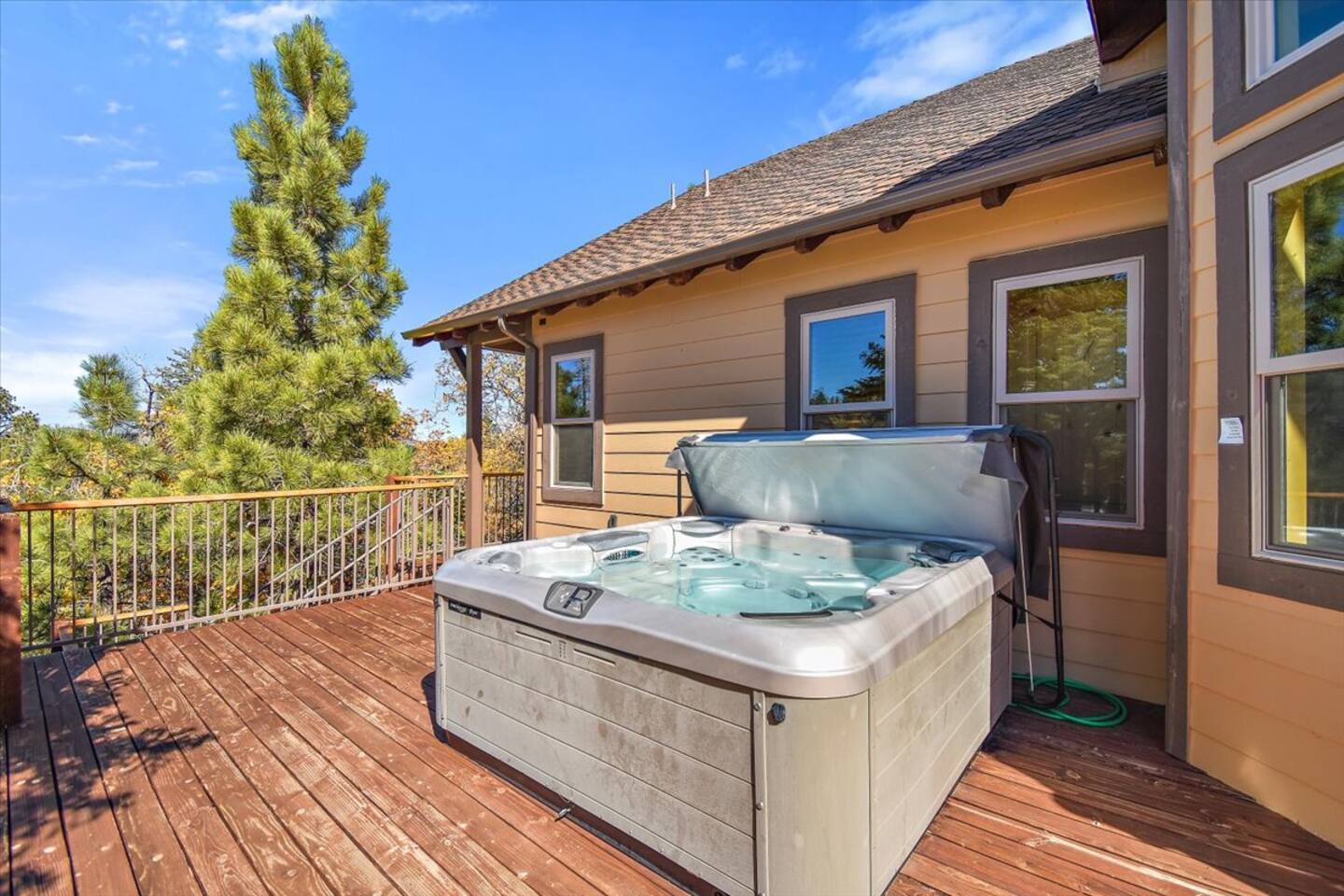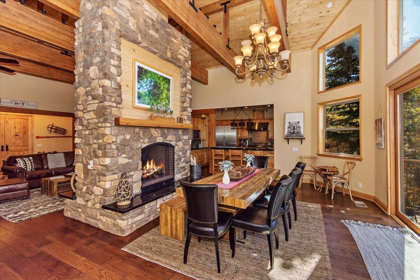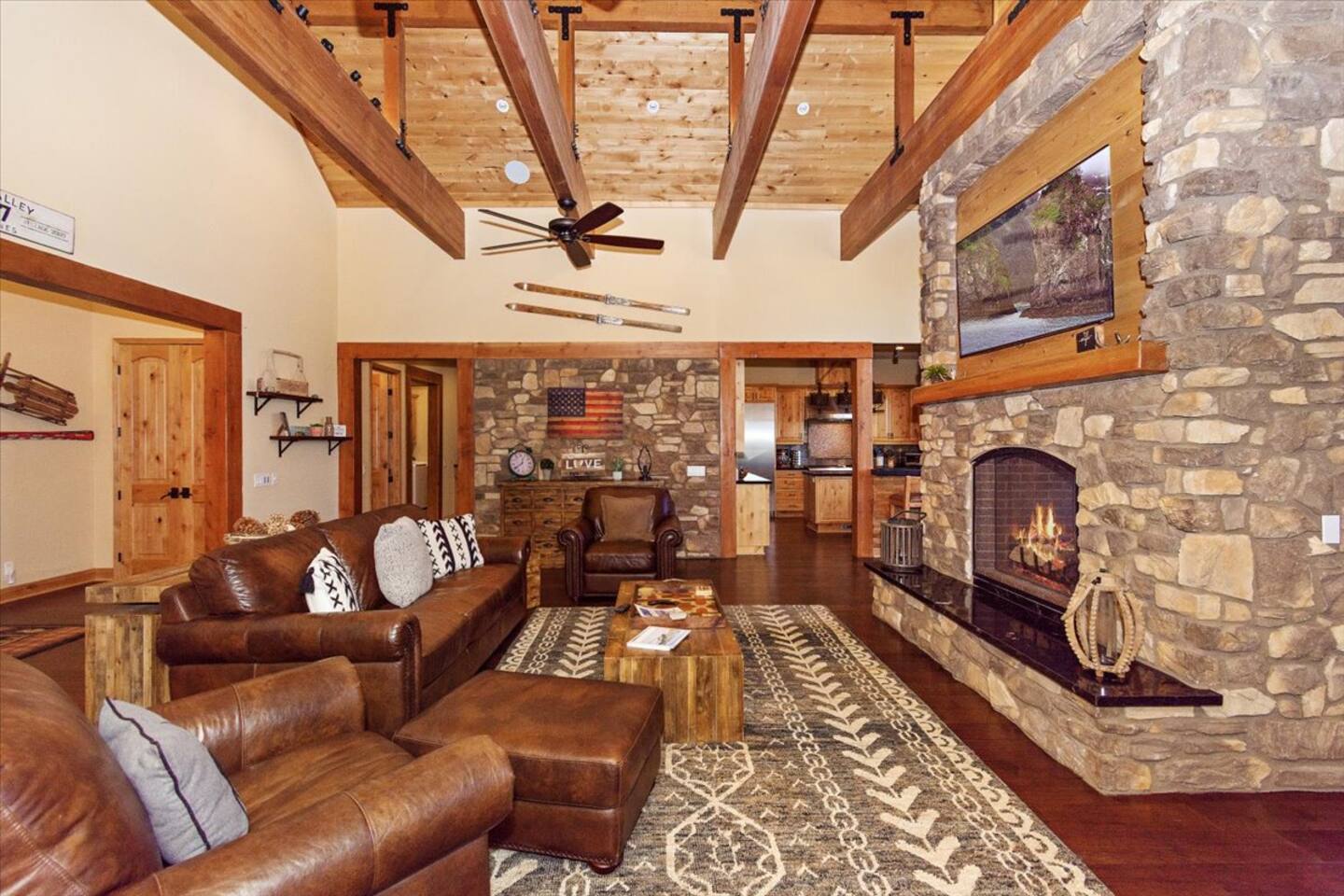 Welcome to Angels Camp! This grand luxury cabin has 4800+ sq. ft., 5 bedrooms, 5.5 baths (every bedroom is an ensuite!), & central air conditioning (AC)! Enjoy a soak in the private hot tub, play in the game room, or cuddle up in front of the dual gas fireplace. Enjoy the chef's kitchen or surf the web in the computer cubby with an iMac computer. This exceptional retreat has a large enclosed yard, a spacious deck, washer & dryer, and amenities galore! Angels Camp is the perfect getaway!