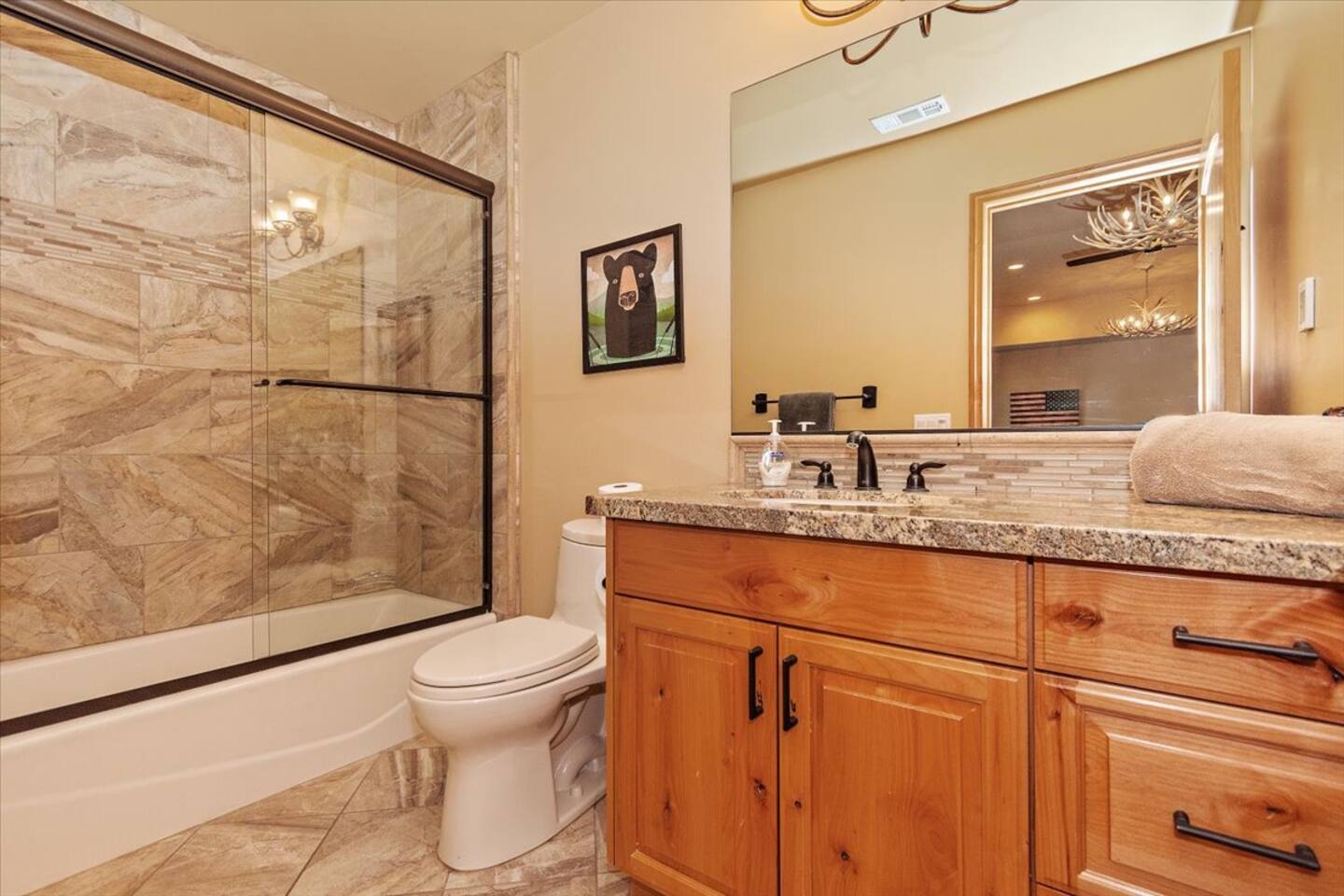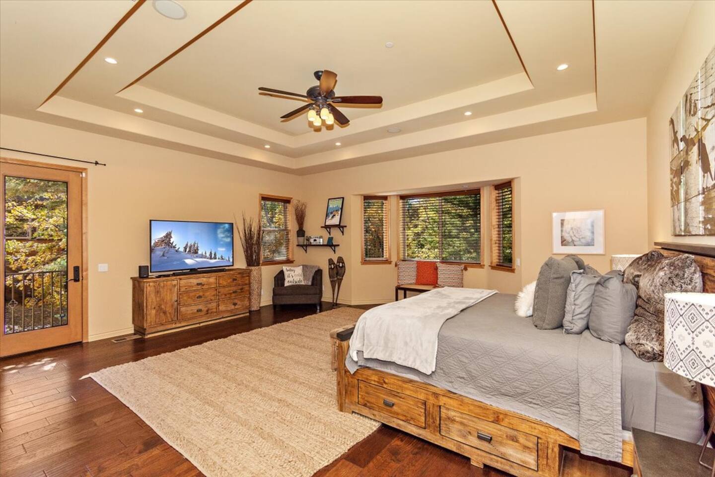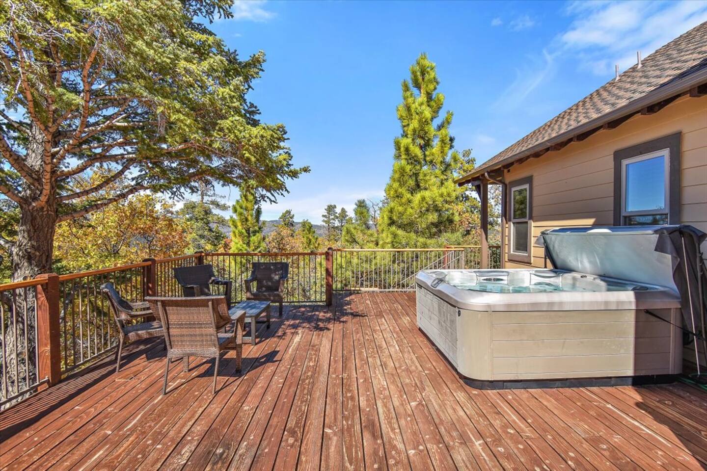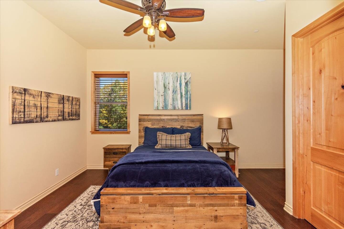 Welcome to Angels Camp! This grand luxury cabin has 4800+ sq. ft., 5 bedrooms, 5.5 baths (every bedroom is an ensuite!), & central air conditioning (AC)! Enjoy a soak in the private hot tub, play in the game room, or cuddle up in front of the dual gas fireplace. Enjoy the chef's kitchen or surf the web in the computer cubby with an iMac computer. This exceptional retreat has a large enclosed yard, a spacious deck, washer & dryer, and amenities galore! Angels Camp is the perfect getaway!