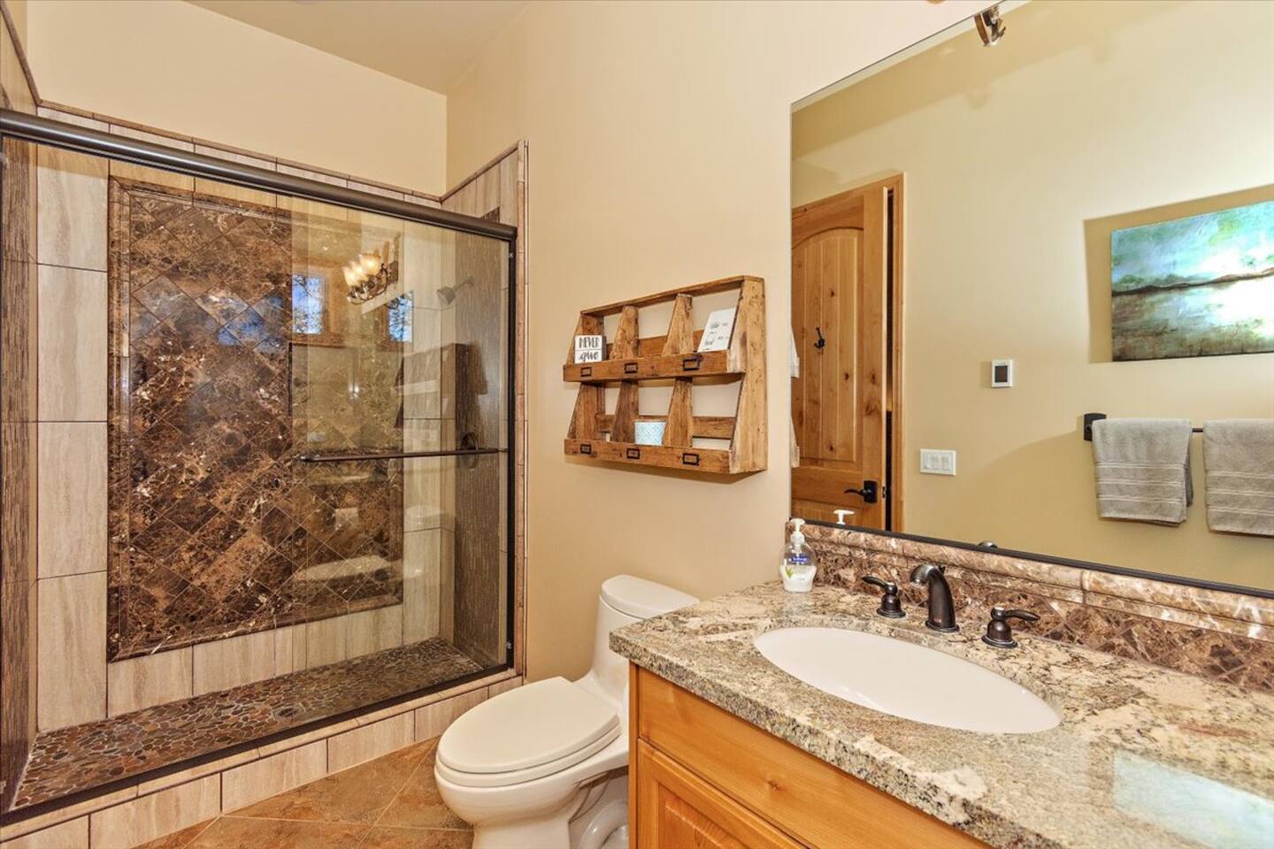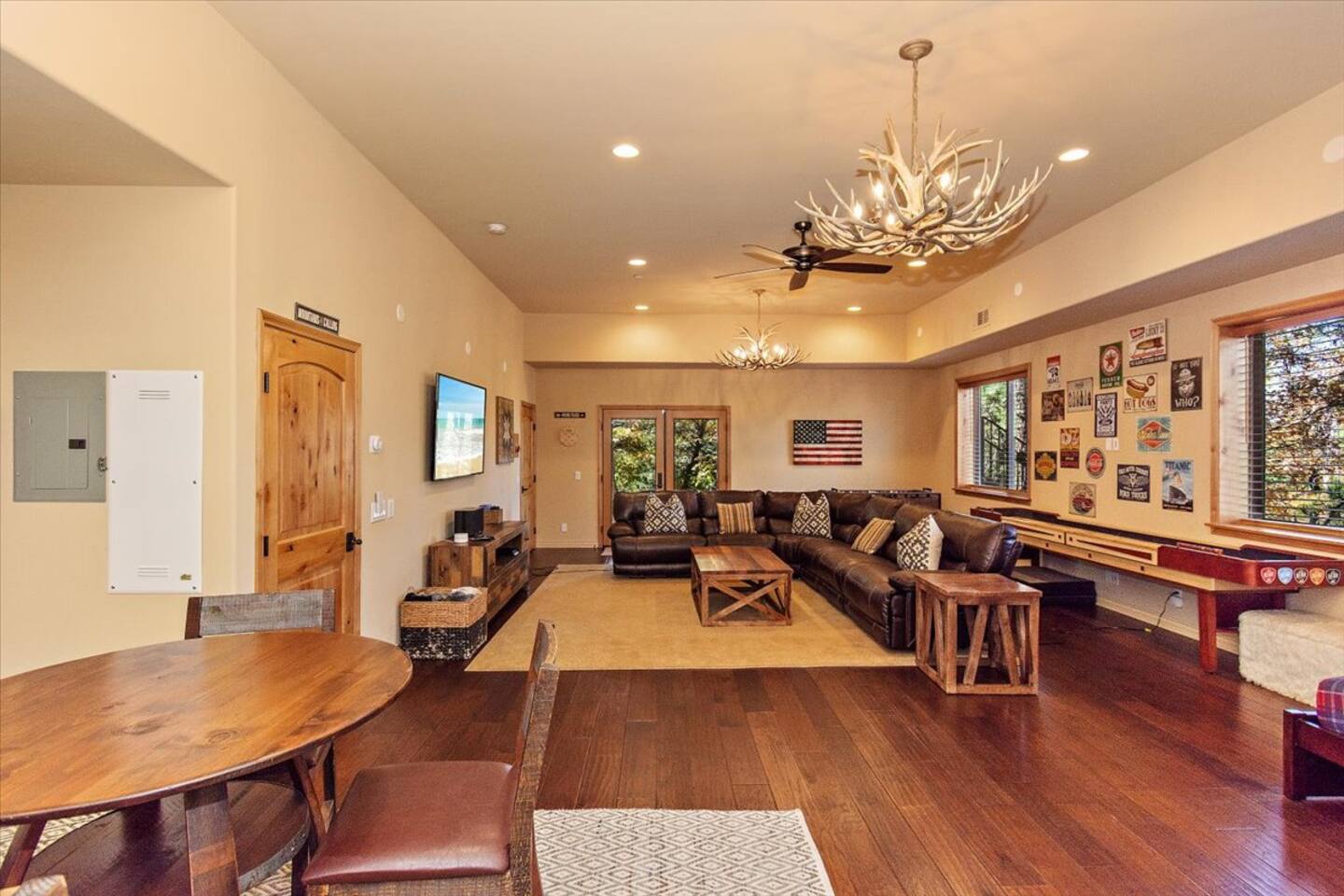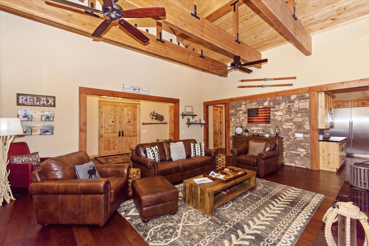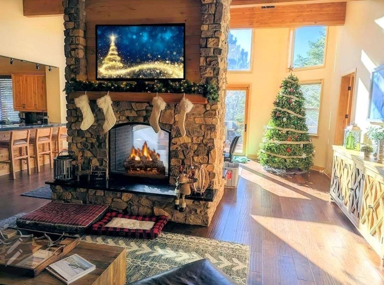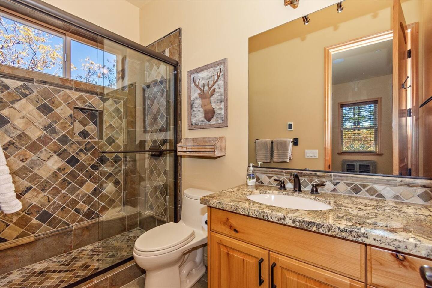 Welcome to Angels Camp! This grand luxury cabin has 4800+ sq. ft., 5 bedrooms, 5.5 baths (every bedroom is an ensuite!), & central air conditioning (AC)! Enjoy a soak in the private hot tub, play in the game room, or cuddle up in front of the dual gas fireplace. Enjoy the chef's kitchen or surf the web in the computer cubby with an iMac computer. This exceptional retreat has a large enclosed yard, a spacious deck, washer & dryer, and amenities galore! Angels Camp is the perfect getaway!