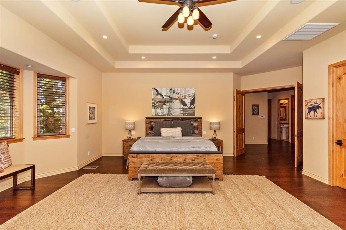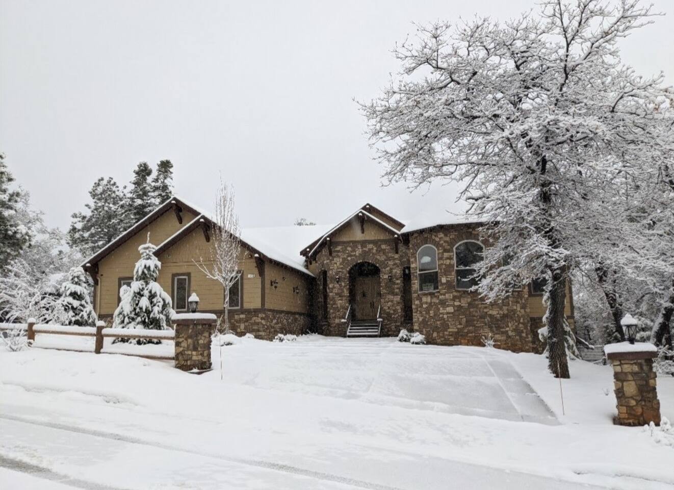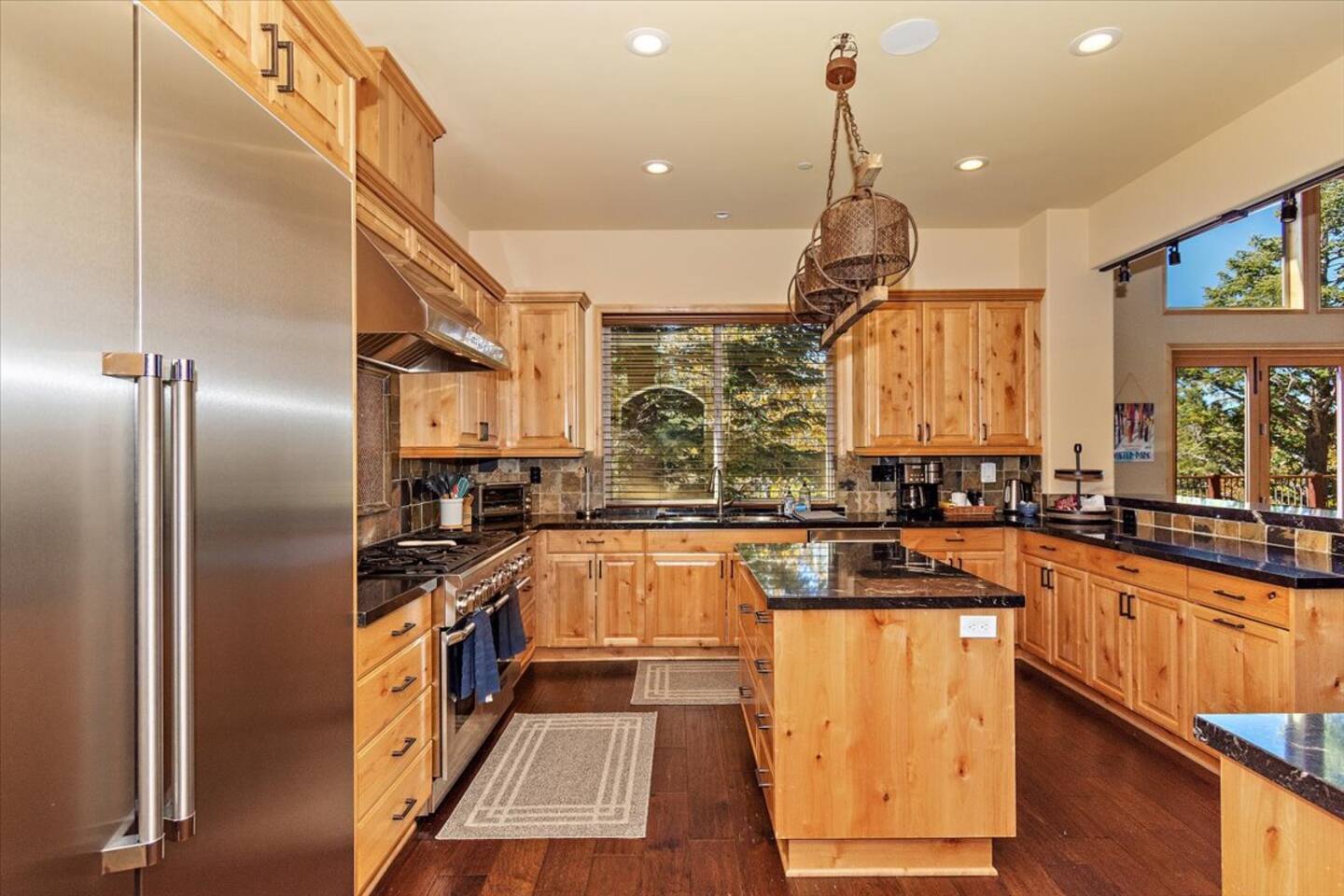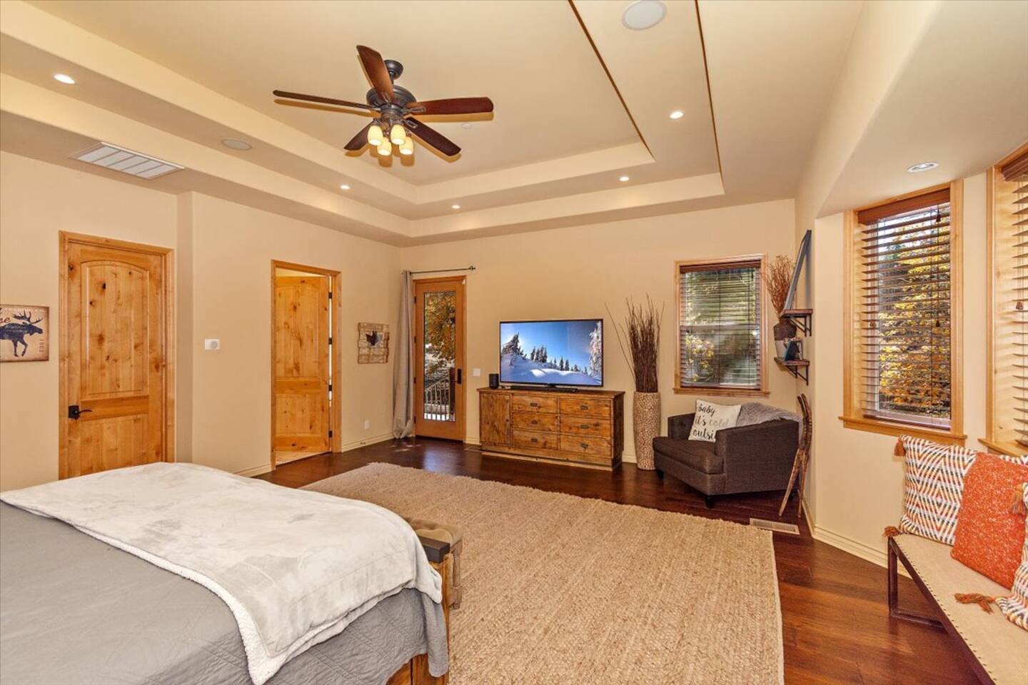 Welcome to Angels Camp! This grand luxury cabin has 4800+ sq. ft., 5 bedrooms, 5.5 baths (every bedroom is an ensuite!), & central air conditioning (AC)! Enjoy a soak in the private hot tub, play in the game room, or cuddle up in front of the dual gas fireplace. Enjoy the chef's kitchen or surf the web in the computer cubby with an iMac computer. This exceptional retreat has a large enclosed yard, a spacious deck, washer & dryer, and amenities galore! Angels Camp is the perfect getaway!