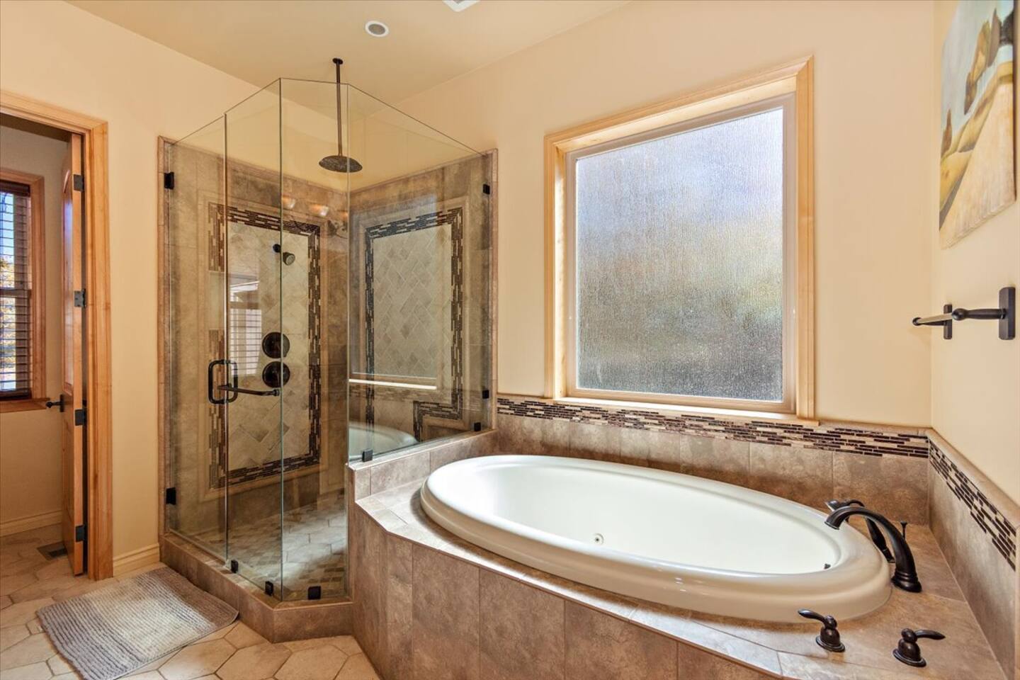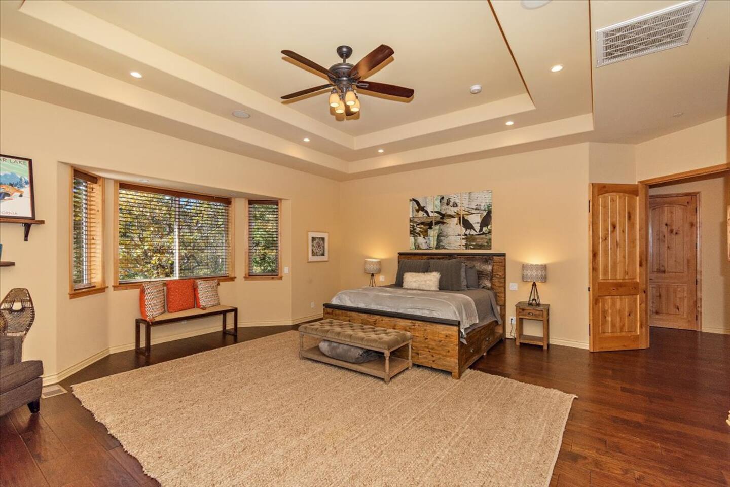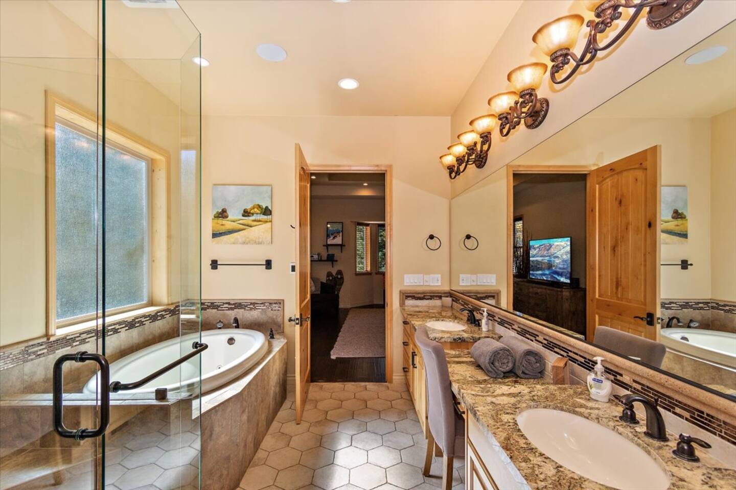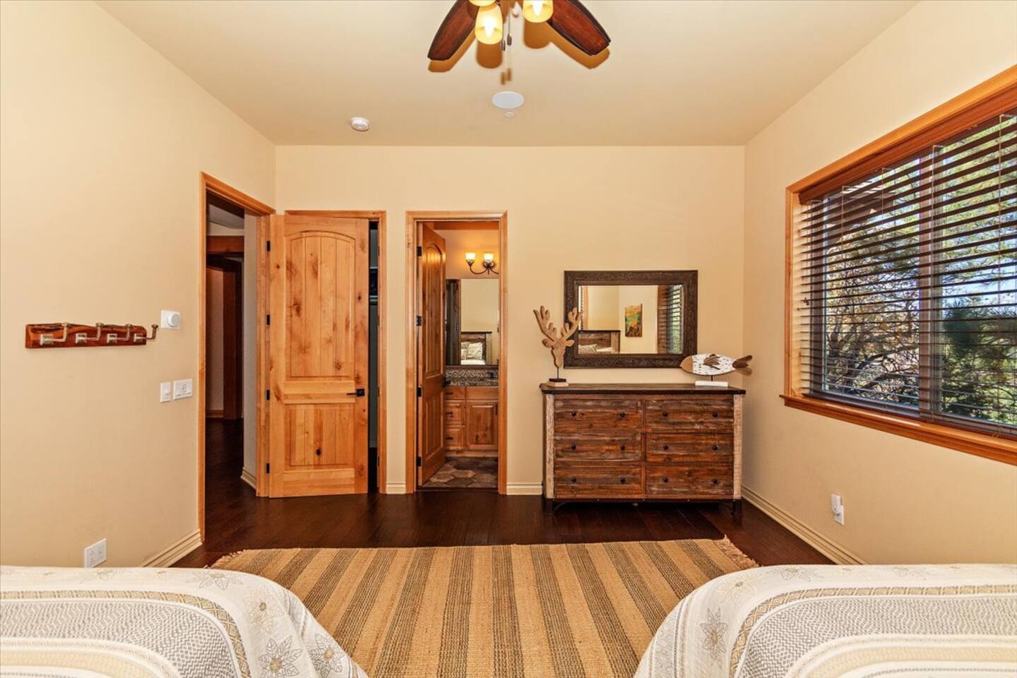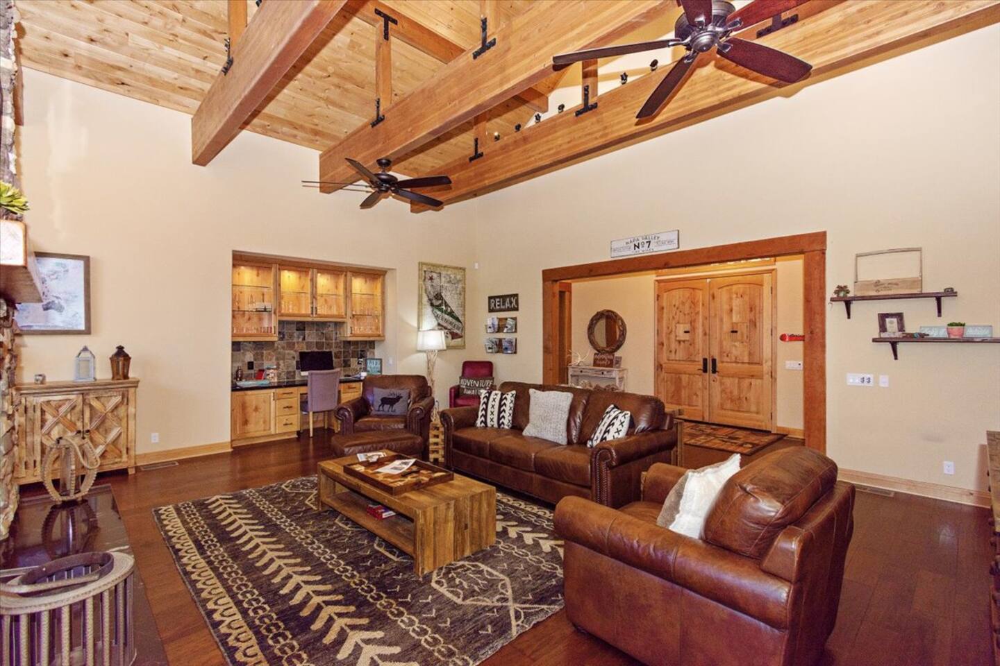 Welcome to Angels Camp! This grand luxury cabin has 4800+ sq. ft., 5 bedrooms, 5.5 baths (every bedroom is an ensuite!), & central air conditioning (AC)! Enjoy a soak in the private hot tub, play in the game room, or cuddle up in front of the dual gas fireplace. Enjoy the chef's kitchen or surf the web in the computer cubby with an iMac computer. This exceptional retreat has a large enclosed yard, a spacious deck, washer & dryer, and amenities galore! Angels Camp is the perfect getaway!
