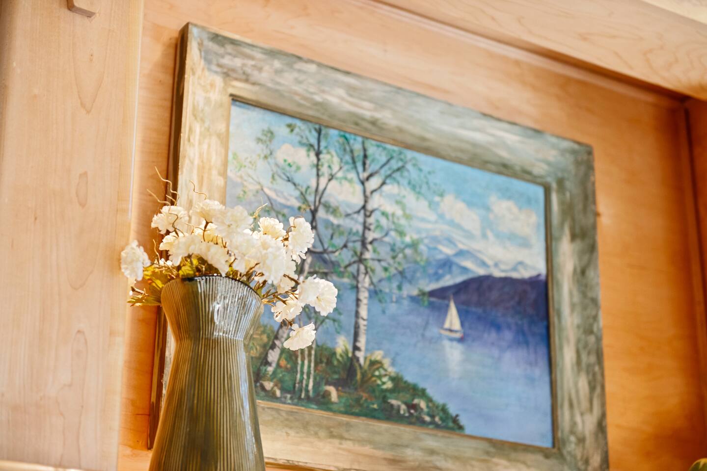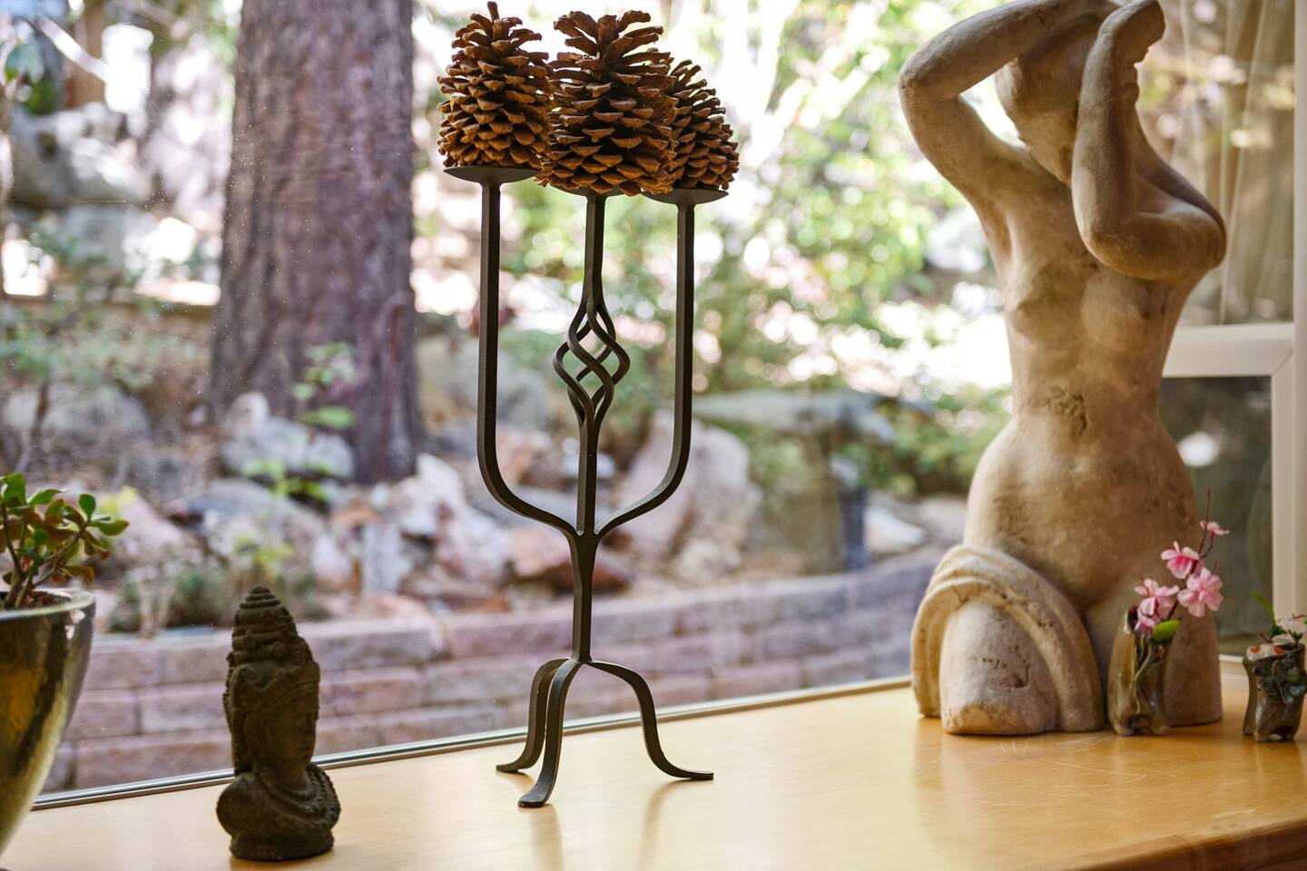 Welcome to the most unique cabin in Big Bear. This one-of-a-kind 2 bedroom/2 bathroom artisan retreat offers breathtaking tree-top views of the ski resort and the serene lake. Nestled in nature, surrounded by trees, birds, chipmunks, this cozy haven is perfect for a memorable getaway. Experience the charm of handcrafted design and relish the beauty of nature at this one-of-a-kind property. Great for romantic getaways, small family gatherings and writers and artists retreats. 3 minutes to Bear Mt