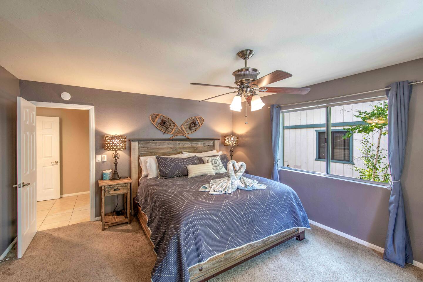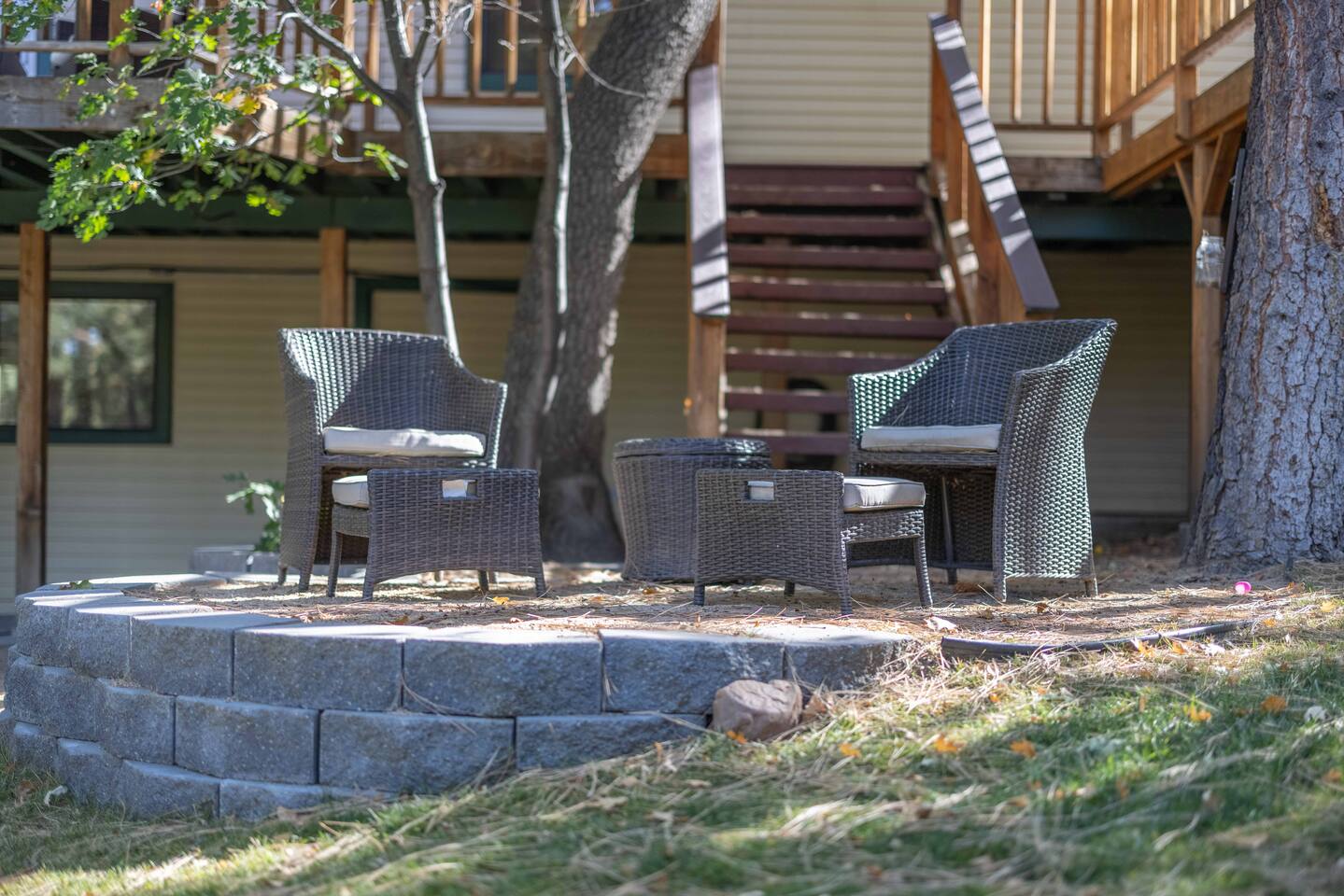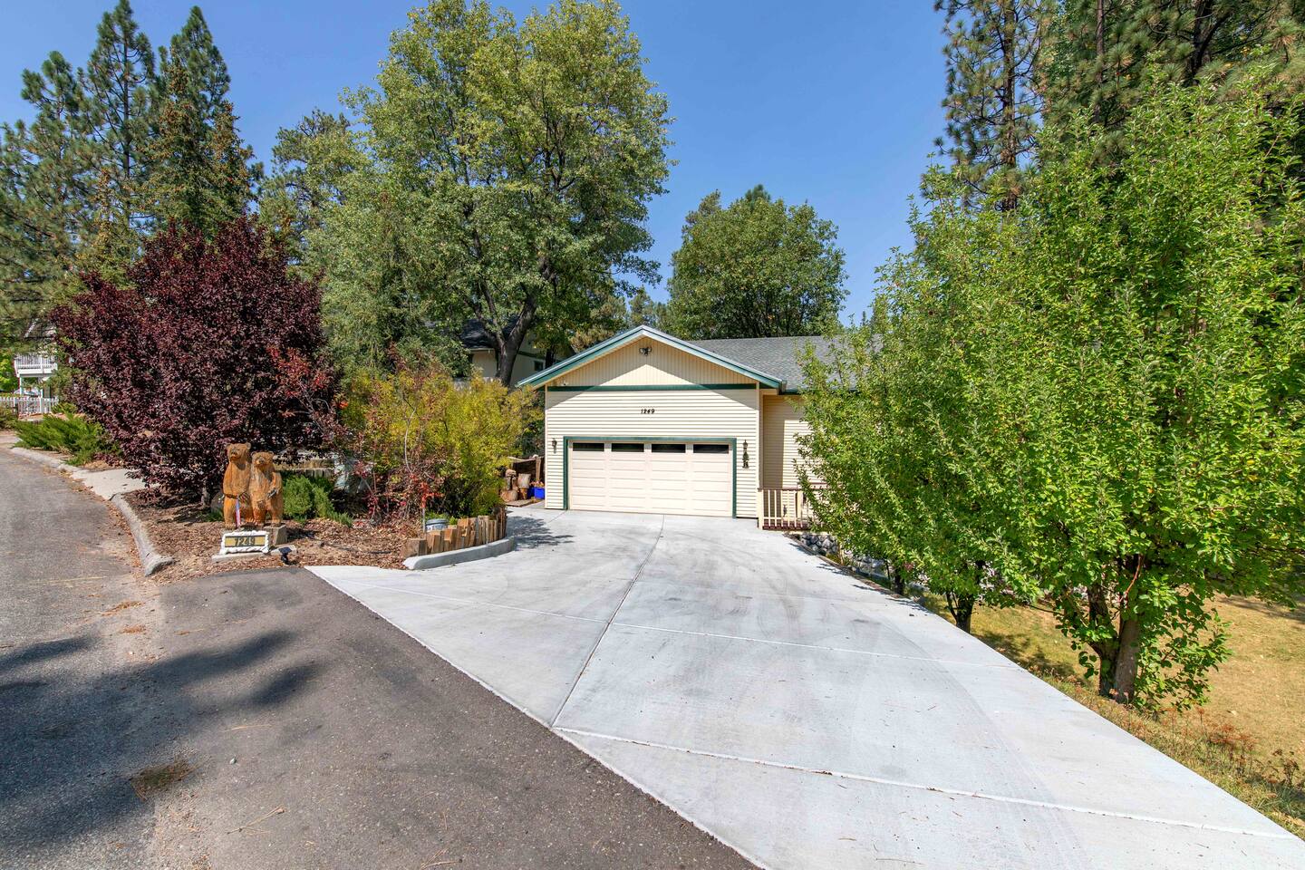 Only 1 mile/ 3 min drive to Oktoberfest! A short 5 minute car ride to Bear Mountain in one of the nicest neighborhoods in Moonridge. Edelweiss boasts an open floorplan and tree views from every window. Four bedrooms (3 on the main floor/bunk bedroom downstairs) 3 bathrooms, a game room has foosball table, pool table, wood-burning fireplace. The deck has ample seating, a gas grill, and jacuzzi spa. Spacious yard is fenced and includes a trampoline. Occupancy 10 people /4 cars