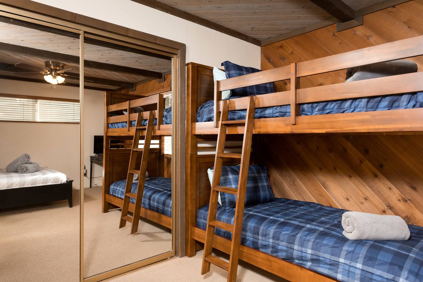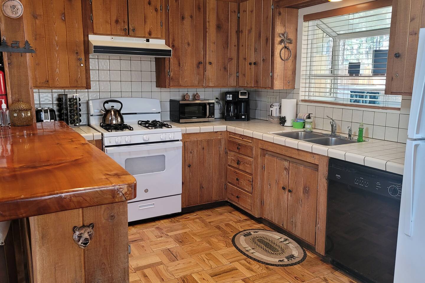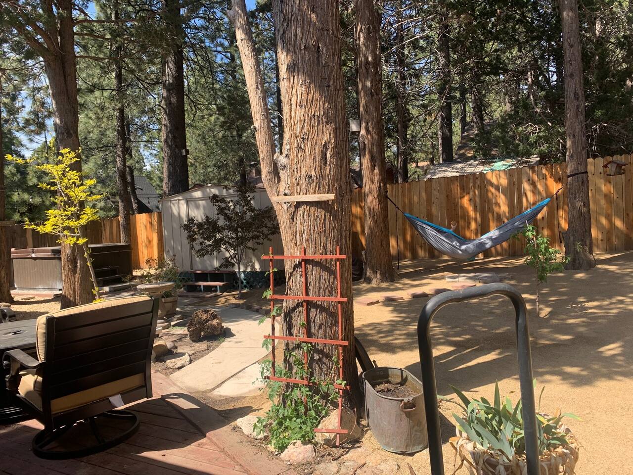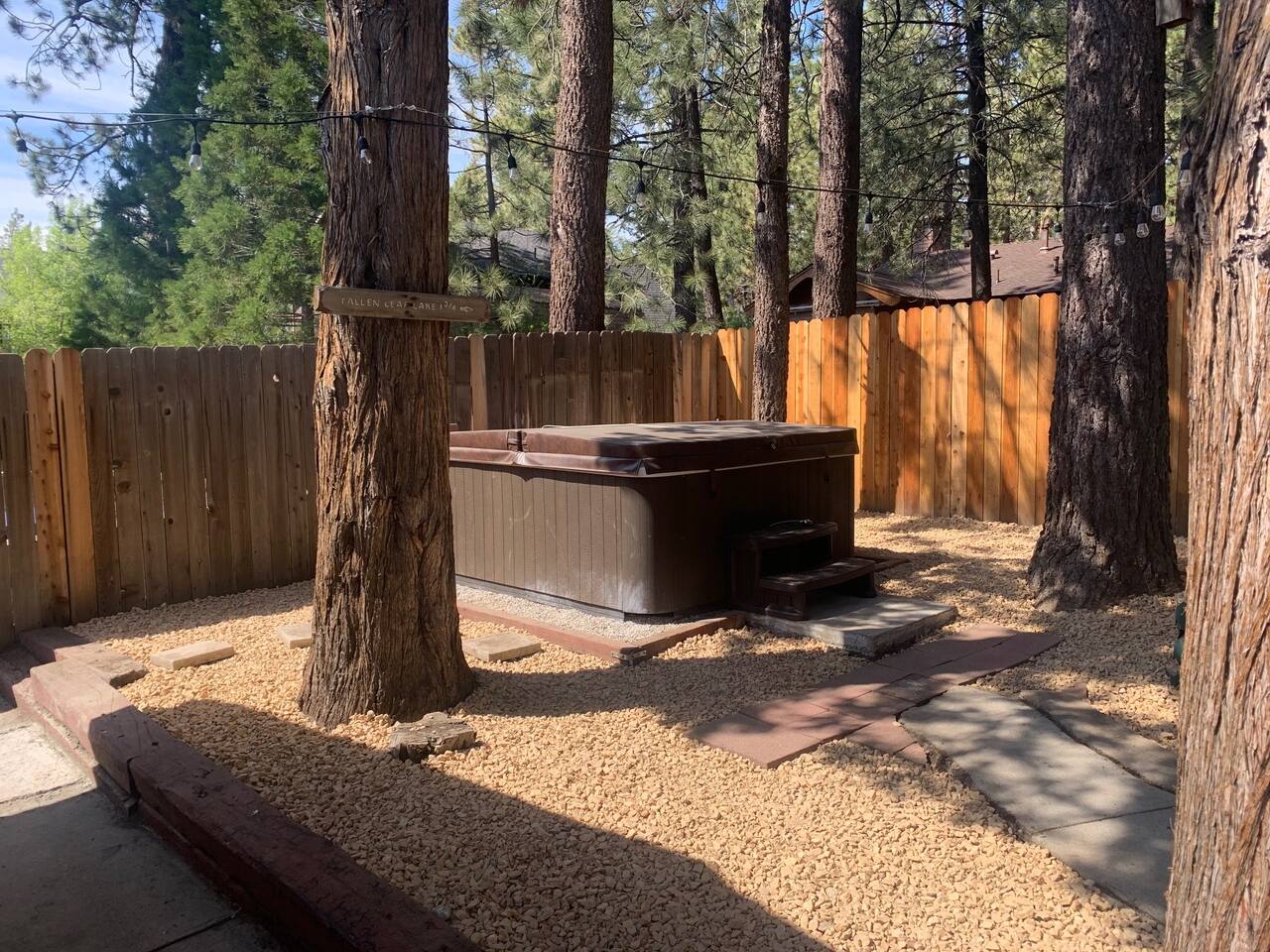 The Hot tub has been repaired as of August 2023 and is working great! . Big Bear Lake local ordinance 99.300 limits maximum occupancy to 5 people & 2 parked cars. (Children, toddlers, and infants do count as people.) Please do not book or arrive with more than the maximum or you could be fined from the city and evicted with no money back. Right down the street from Bear Mountain, cozy Moonridge Cabin has the perfect location and views, to the ski resorts and only minutes from Big Bear Village. Swing on the outdoor porch swing while enjoying the amazing ski mountain and golf course view while hearing all the animals in the new rescue zoo right down the street. Or head to the backyard and enjoy the privacy of your own hot tub (installed in 2019). This charming cozy amazing view cabin in Moonridge has 1 level, 2 bedrooms, 2 patios, 2 full bathrooms, and is located directly across the street from the Bear Mountain Golf Course’s 4th hole (on the sunny side of the golf course!). Moonridge Cabin features beautiful views of Bear Summit and is located right around the corner from Bear Mountain Ski Resort! This Big Bear getaway has a floor-to-ceiling rock fireplace (wood burning), central heating, free high speed Wi-Fi, TVs with Roku & Netflix, a master suite, separate laundry room, fully fenced backyard, & a hot tub. The kitchen is fully-stocked and all bedding & linens are provided by our professional cleaning crew. This rustic retreat is the perfect getaway for family, friends, & even pets! Two dog Maximum. ROOM DESCRIPTIONS * Front Patio: Moonridge Cabin has 2 patios. The front patio features an outdoor dining table for 4, porch swing, & BBQ grill. * Living Room: Open-concept living room with entry bench, TV with Roku, sitting area with sofa, & a floor-to-ceiling rock (wood burning) fireplace. * Kitchen: Open-concept kitchen with breakfast bar seating for 2, gas range, toaster, microwave, coffee maker, dishwasher, & refrigerator. * Dining Area: Open-concept dining area adjacent to the kitchen with dining table for 4-6 & entrance to back patio. * Bedroom #1 (Master Bedroom): Master bedroom with 1 king bed, dresser, TV with Roku, closet, & en-suite bathroom. * Bathroom #1 (Master Bathroom): Full en-suite master bathroom with a shower & jetted bath tub. * Laundry Room: Laundry room next to the master bedroom (Bedroom #1) with entrance to backyard and full size washer & dryer. * Bedroom #2: Bedroom with 1 queen bed, dresser, desk, TV with Roku, 1 bunk bed (2 twin beds), ceiling fan, closet, & beautiful views of the golf course. The bunk beds each have a maximum weight of 185 lbs. * Bathroom #2: Full bathroom next to the living room with hairdryer, shower, & bath tub. * Back Patio: Moonridge Cabin has 2 patios. The back patio features a fully fenced backyard complete with firepit, outdoor seating, & hot tub RECORDING DEVICE/ CAMERA DISCLOSURE: We have ONE (1) active doorbell (Ring) camera facing the entrance and the driveway. It is active 24/7 and records both sound and video for 30 seconds upon motion. It is on 24/7 during your stayTampering with, covering or disabling this device is a $250 fine. We also have a Minut decibel meter outside on the back deck. Minut is 100% privacy compliant- and cannot record conversations- it only reports noise levels so we have proof in case neighbors or Code Enforcement makes a complaint.