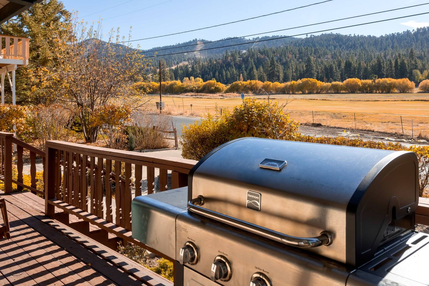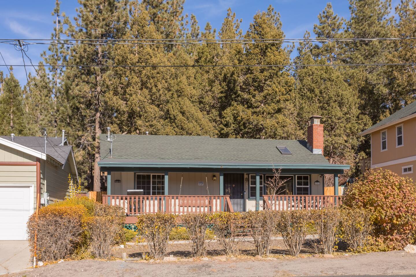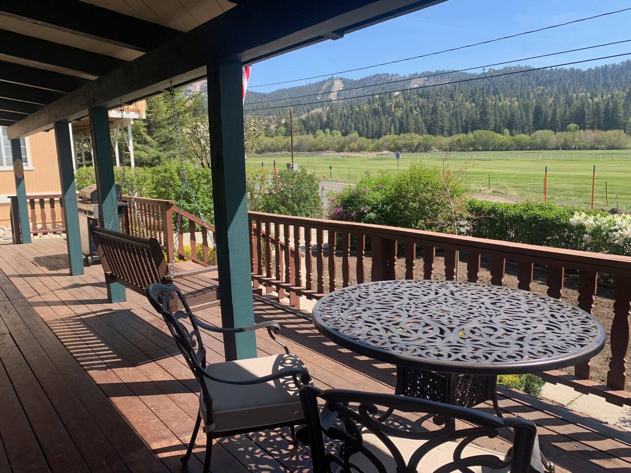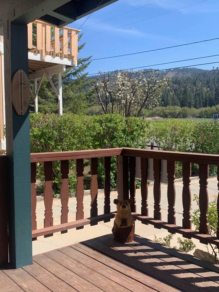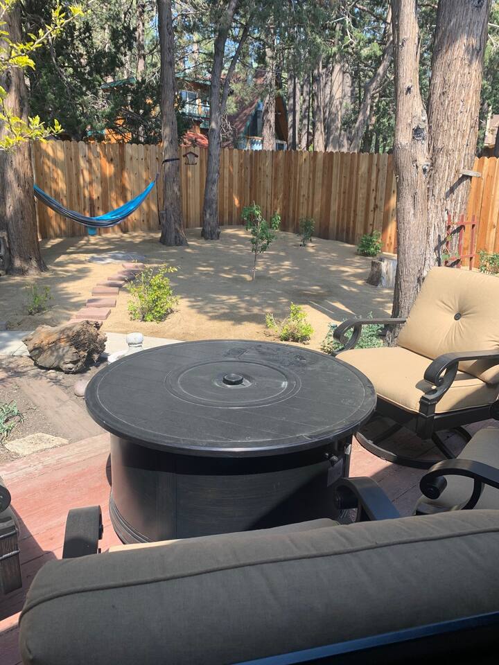 Cozy cabin with fantastic location! Directly across the street from golf course, Walkable to Moonridge Coffee, Dank Donuts, & Bear Belly Deli! Located just minutes from Bear Mountain. Moonridge Cabin is the perfect getaway for family, friends, & even pets! Moonrige Cabin features gorgeous views. See the golf course, & mountains from the front porch swing. Big, private, & fully enclosed backyard for dogs features a hot tub, fire pit, & outdoor dining area.