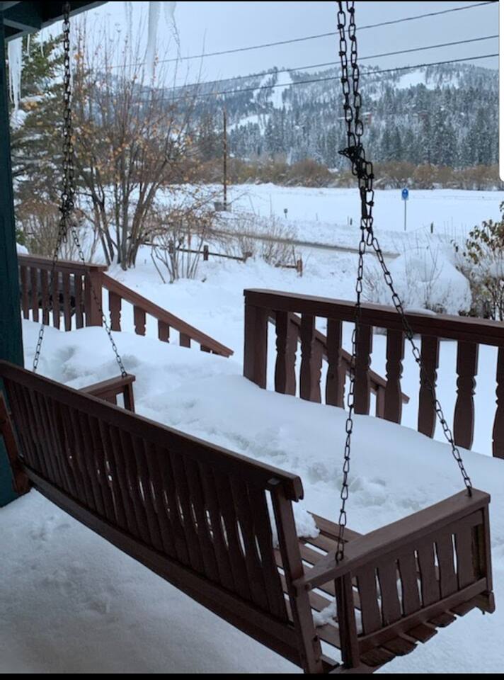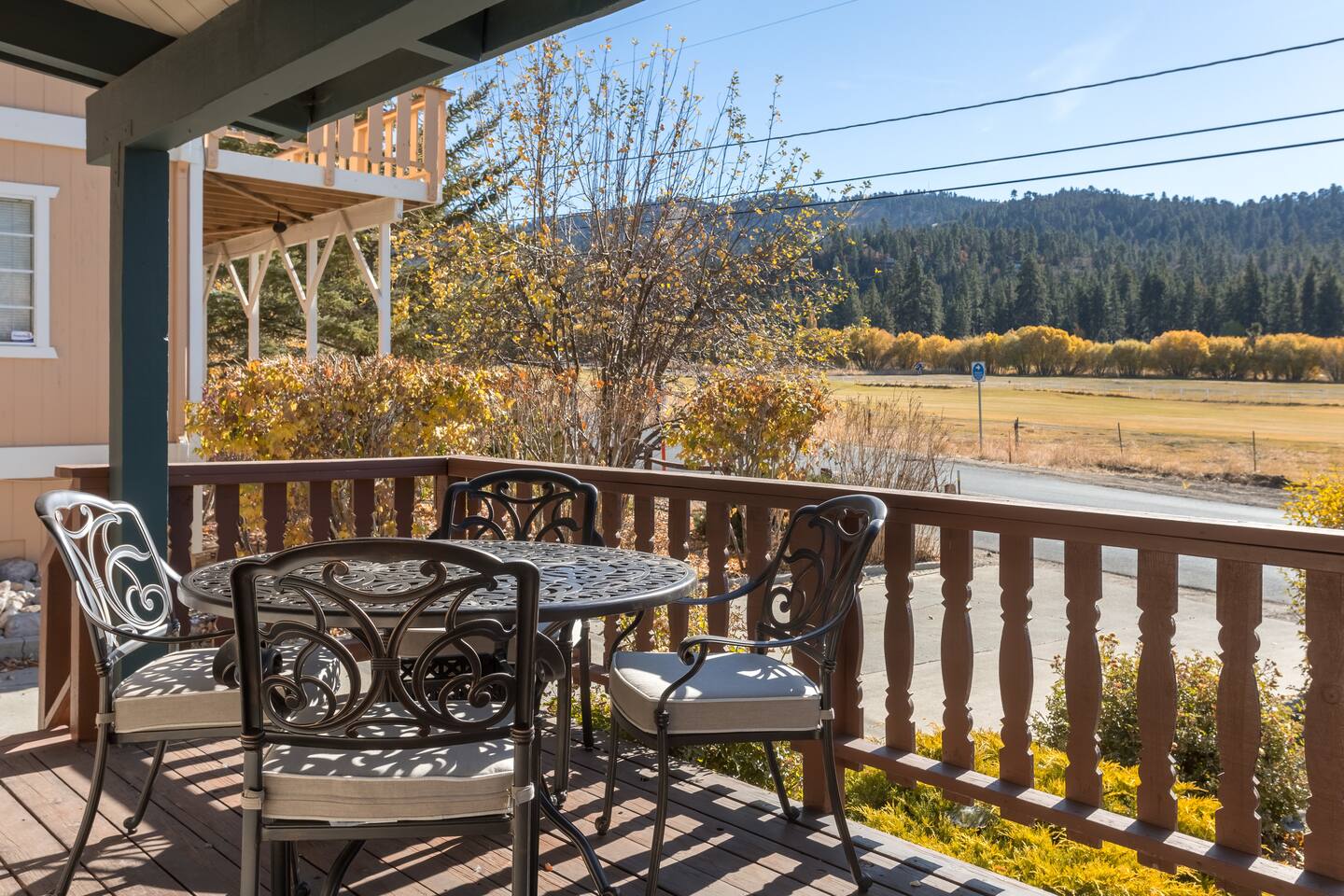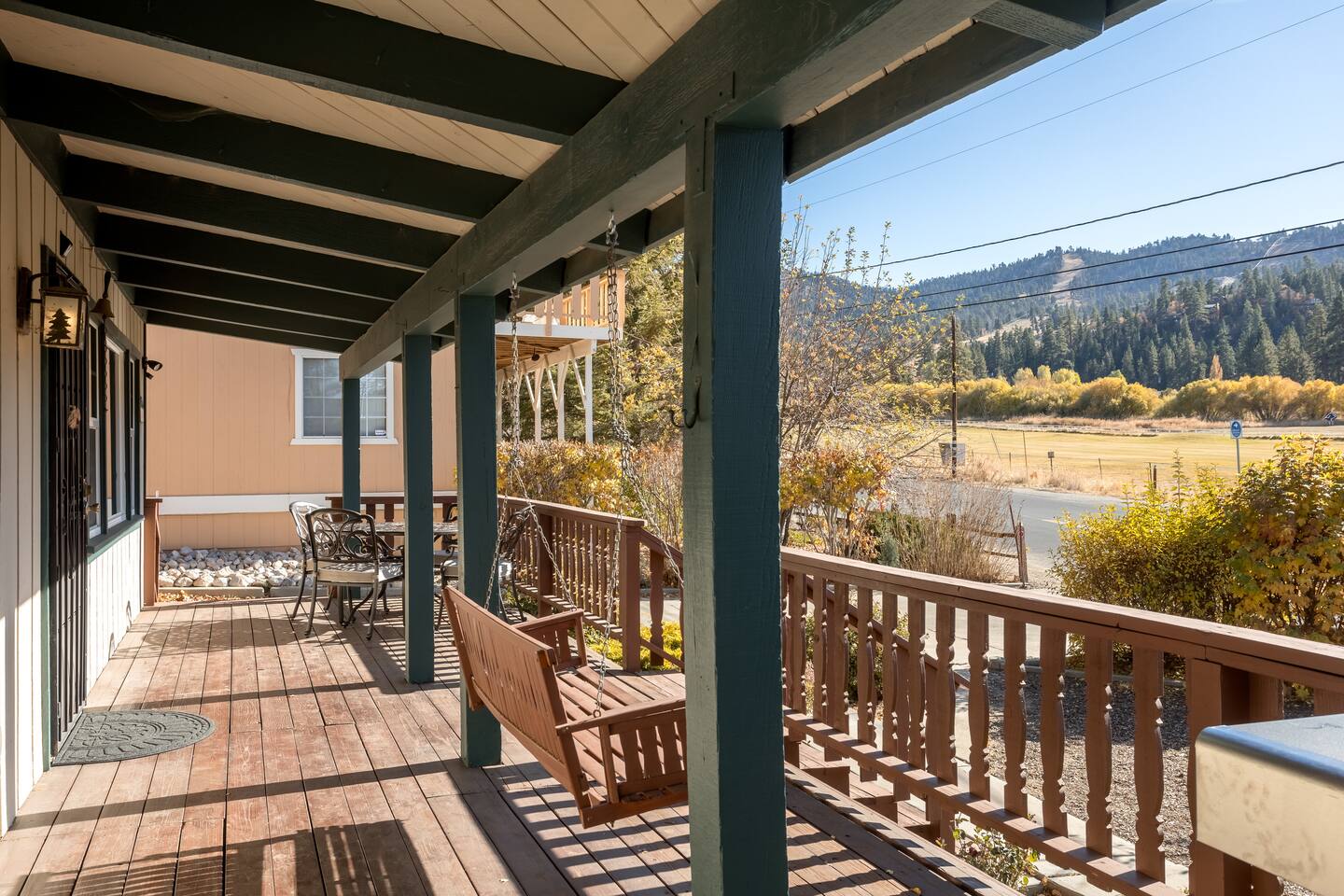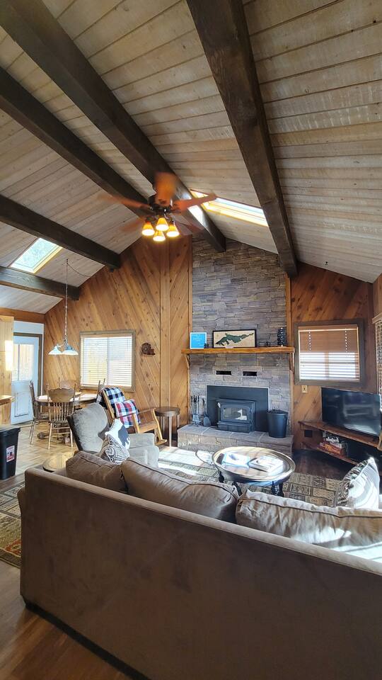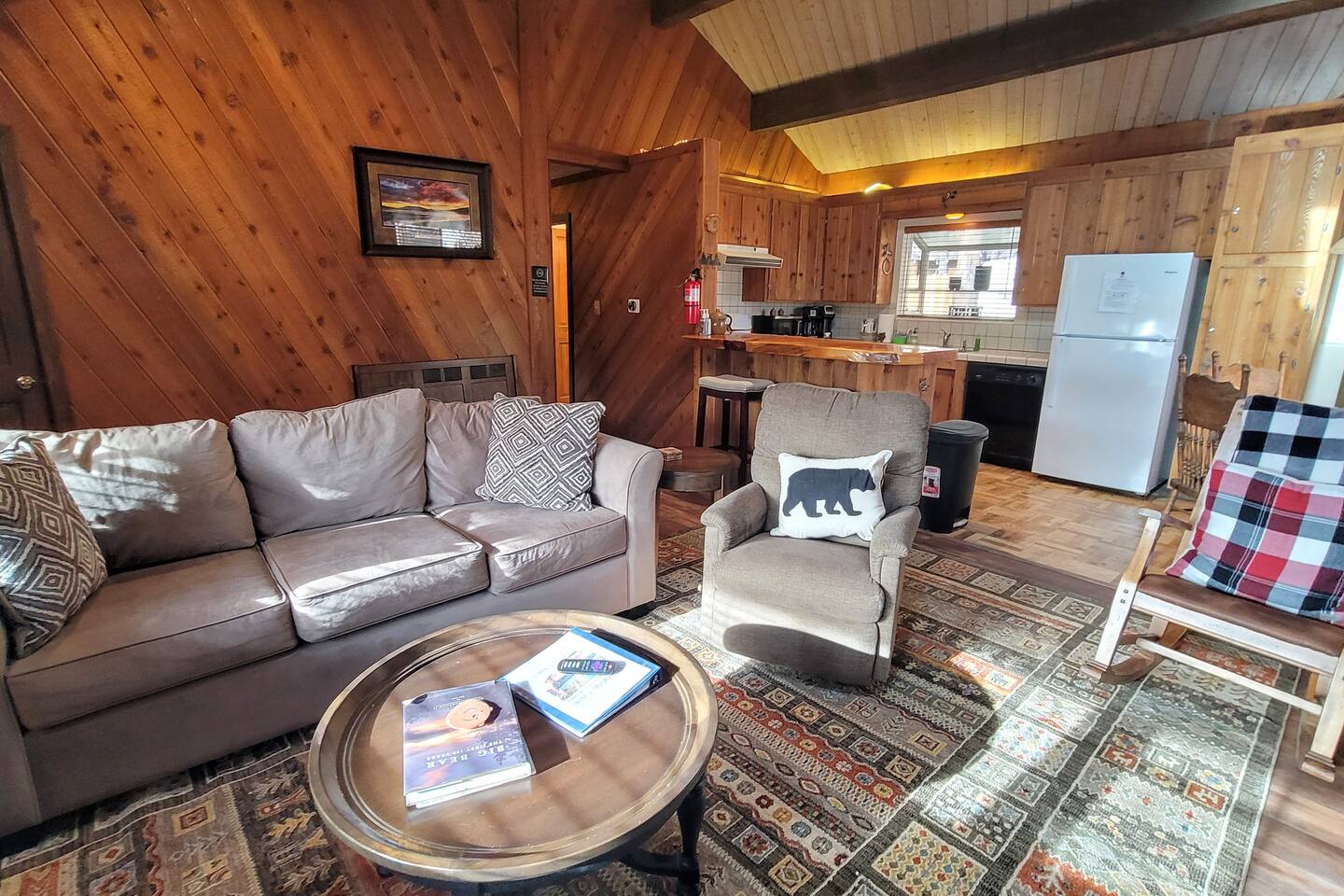 Cozy cabin with fantastic location! Directly across the street from golf course, Walkable to Moonridge Coffee, Dank Donuts, & Bear Belly Deli! Located just minutes from Bear Mountain. Moonridge Cabin is the perfect getaway for family, friends, & even pets! Moonrige Cabin features gorgeous views. See the golf course, & mountains from the front porch swing. Big, private, & fully enclosed backyard for dogs features a hot tub, fire pit, & outdoor dining area.