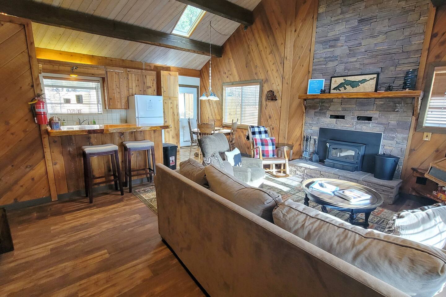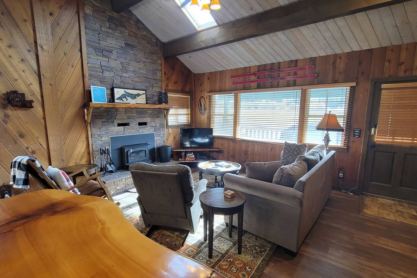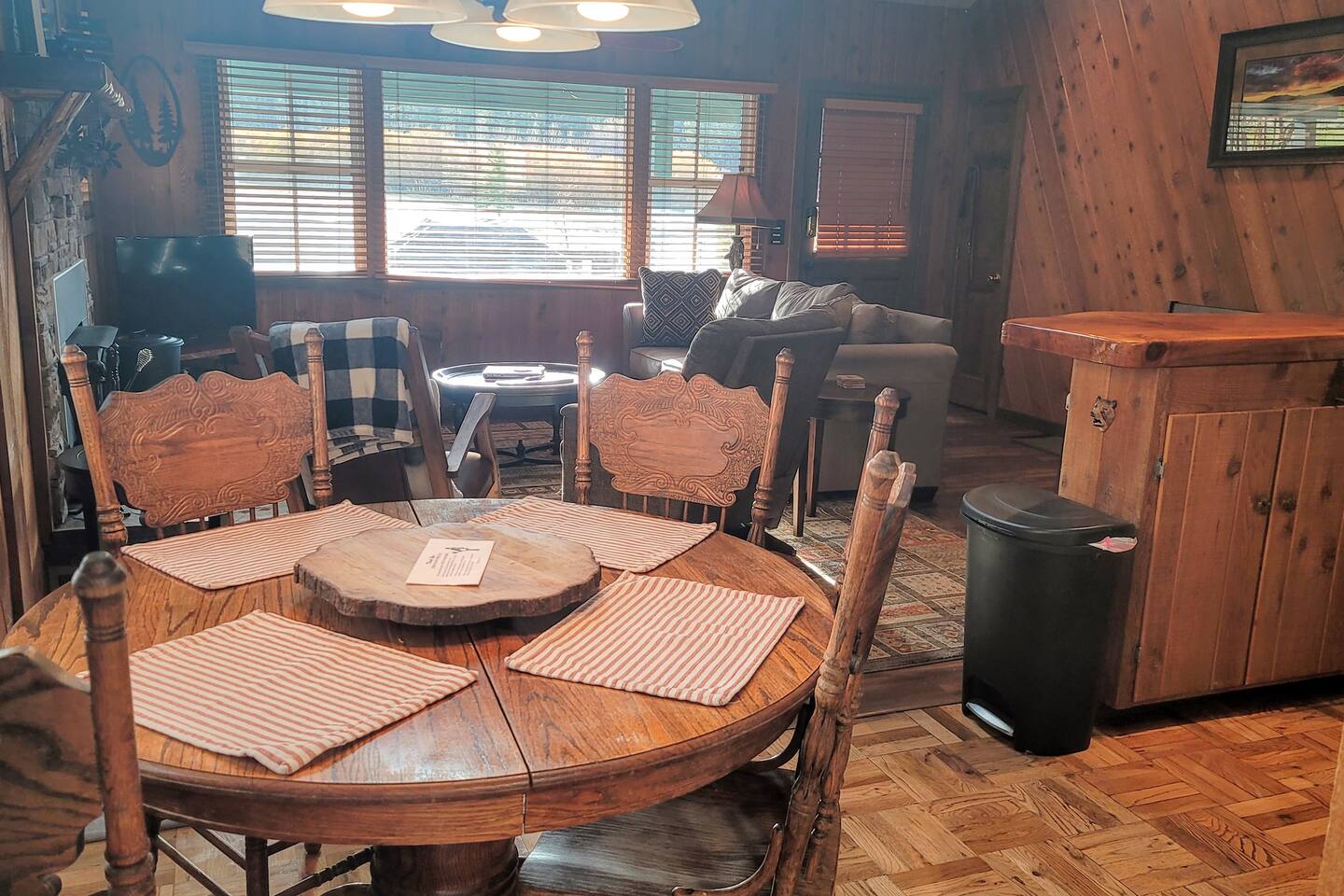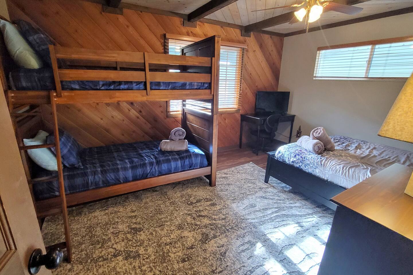 Moonridge Cabin is in the Lower Moonridge neighborhood of Big Bear & conveniently minutes from most activities - hiking, golfing (directly across the street!) , skiing, biking, swimming, & more. This rustic retreat is a quick 5 minute drive to Big Bear Village downtown shops & restaurants as well as the lake.