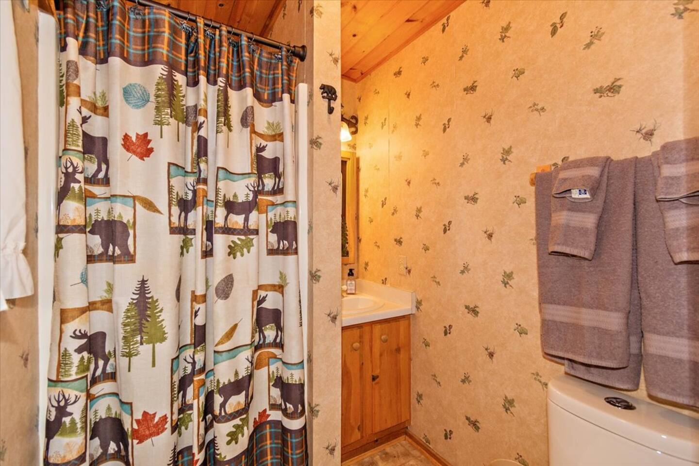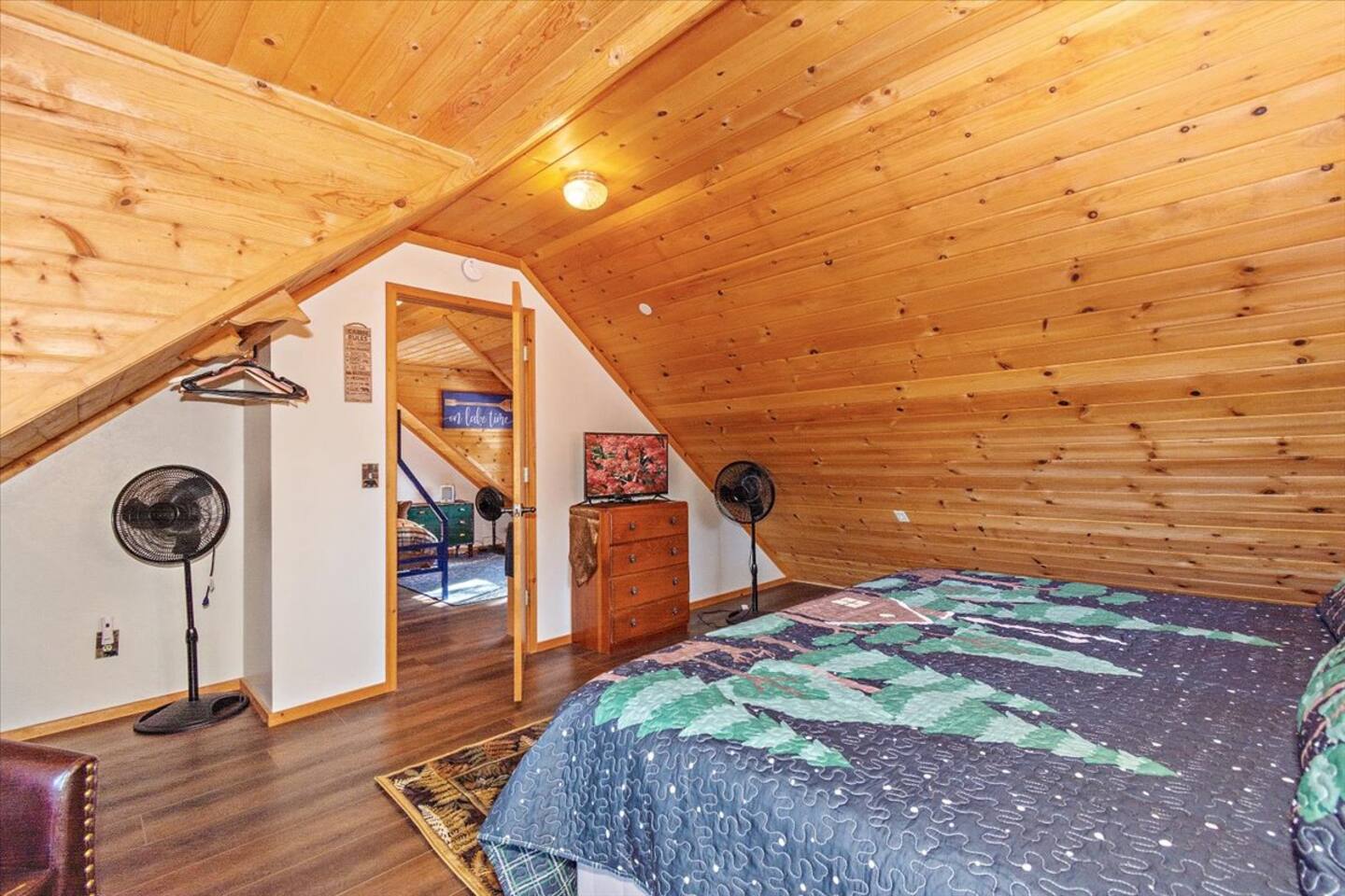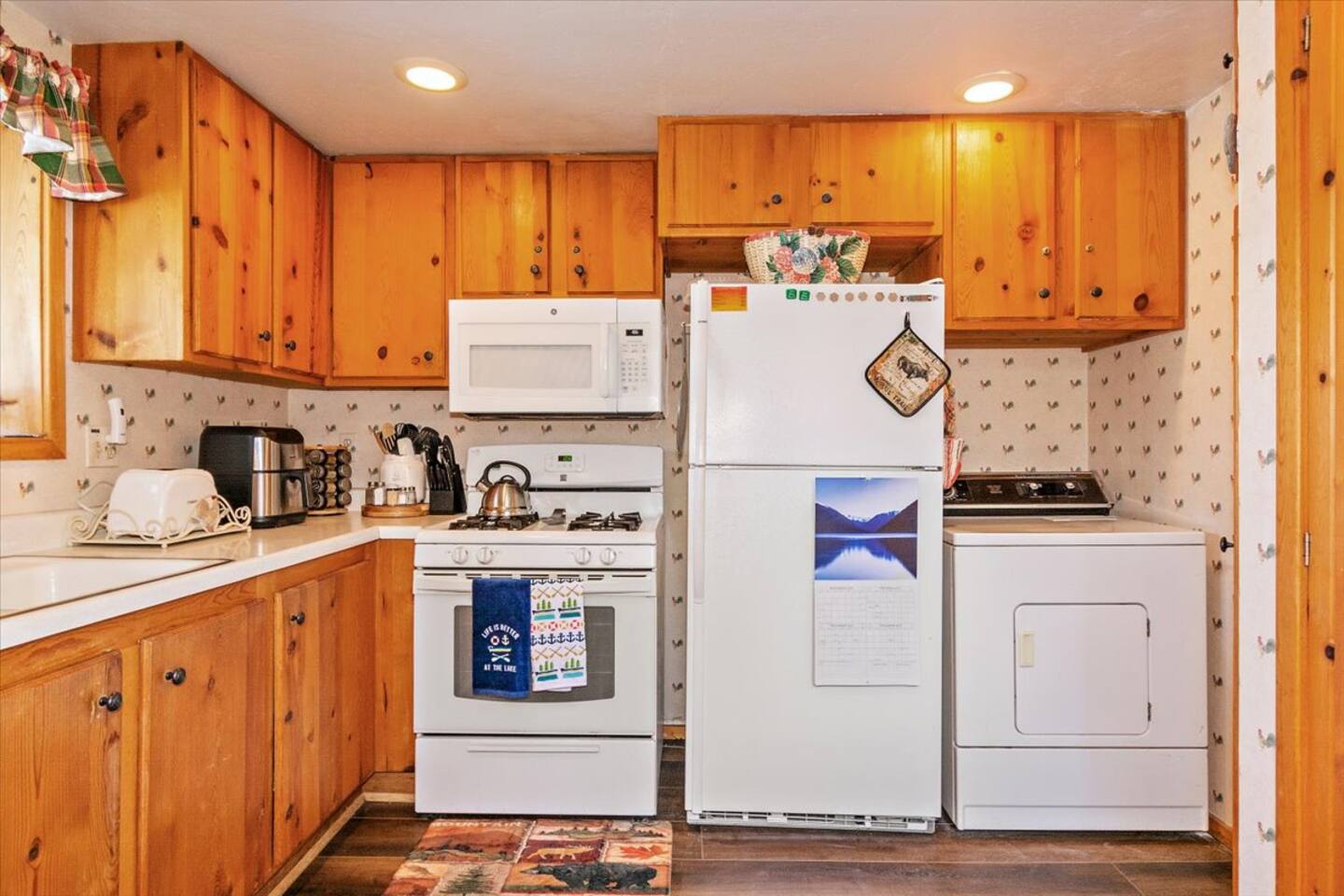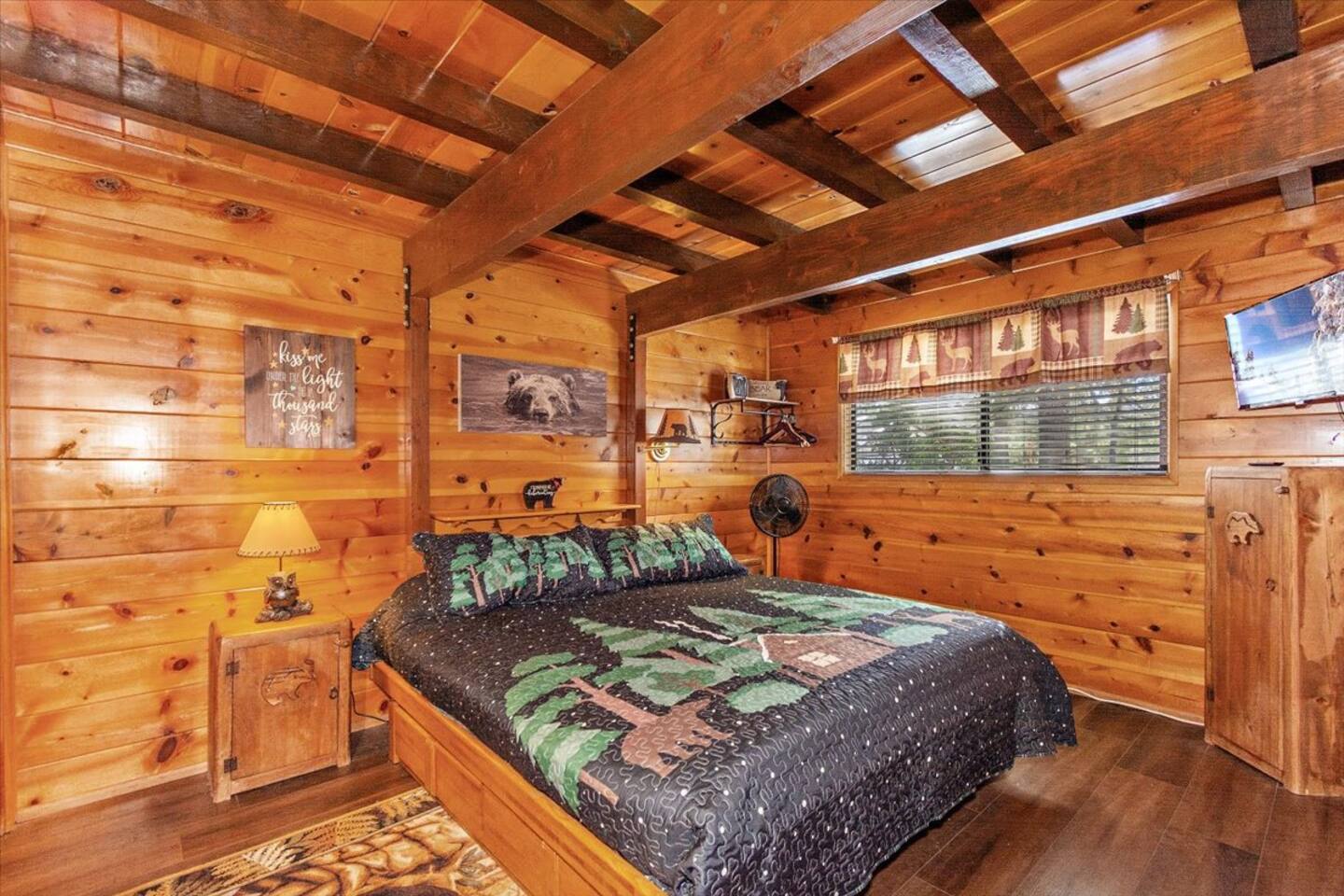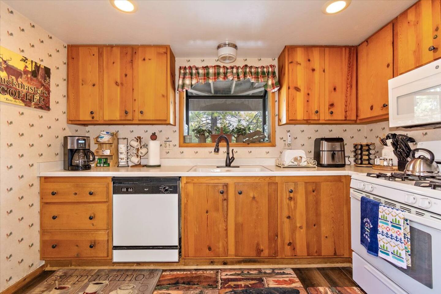 Welcome to the newly improved Vista De Oso! New owners added tons of updates- November 2022 including: - New Smart TVs in Living Rooms and bedrooms - New couch - Air fryer - Doggie bag dispenser with bags - New bedspreads, sheets, towels - New rugs - Newly Painted the decks - Propane firepit outside! We are limited to maximum occupancy to 6 people & 2 parked cars. (Children, toddlers, and infants do count as a person.) Please do not book or arrive with more than the maximum or you could be fined from the city and evicted with no money back. Two Dog Maximum. _____________________________________________ PLEASE NOTE: *The upstairs bedrooms are connected (Shared wall) but private- but you do have to walk thru the bunkbed room to get to the king bedroom UPDATE: Entire home has new wood flooring - installed in May 2021. ROOM DESCRIPTIONS * Living Room: Cozy and comfy wood walls, high wood-beamed ceilings- the wood-burning fireplace at the center of it all! This is what a cabin in Big Bear should be! Smart TV (Log into your own Netflix, Hulu, Disney+ accounts!) brand new plush, comfy couch and chair! * Dining Area: Open-concept dining area off the living room. Dining, game playing, puzzle solving for 6. The door leads to the back patio (Hot tub) * Kitchen: Gas range, toaster, microwave, coffee maker, dishwasher, washer, dryer, crockpot, refrigerator. Also just added a brand new air fryer. Full set of plates, silverware, dishes, glasses, mugs, plastic ware for the hot tub! * Bedroom #1 (Master Bedroom): This is downstairs off the living room. Master bedroom with 1 king bed & en-suite bathroom. Enjoy your favorite streaming service from the bedroom as well! * Bathroom #1 (Master Bathroom): Full en-suite master bathroom with toilet, sink, a shower & bathtub combo. This is the ONLY downstairs bathroom, and you must pass thru bedroom #1 to use it. * Laundry Room: Laundry is in the kitchen with a full-size washer & dryer. * Bedroom #2: Upstairs- Bedroom with twin over full bunk bed (THIS IS A PASS THRU BEDROOM!) You must walk thru this bedroom to get bedroom #3 * Bedroom #3: King Bed, 2 comfy seats with a table at the window with a peek-a-boo view of the lake. (You must walk thru bedroom #2 to get to this bedroom) Smart TV added in Nov 2022! * Bathroom #2: Upstairs at the top of the stairs- toilet, sink, shower. (no bathtub) * Outdoor Patios: Vista De Oso has 3 patios. The front patio features a picnic table. The back patio has a dining table, Hot Tub for 6, a wooden porch swing, and a Blackstone flat-top grill (We supply the propane). Enjoy a cozy evening by the firepit with peek-a-boo lake views. The upper back patio is our bistro patio with a small table and 2 chairs, treetop views, and a peek-a-boo lake view! * YARD: Huge backyard with a slight slope. All fenced in for dogs and snow play! We have a ring camera on the front door also have a Minut decibel meter outside on the back deck. Minut is 100% privacy compliant- and cannot record conversations- it only reports noise levels so we have proof in case neighbors or Code Enforcement makes a complaint.