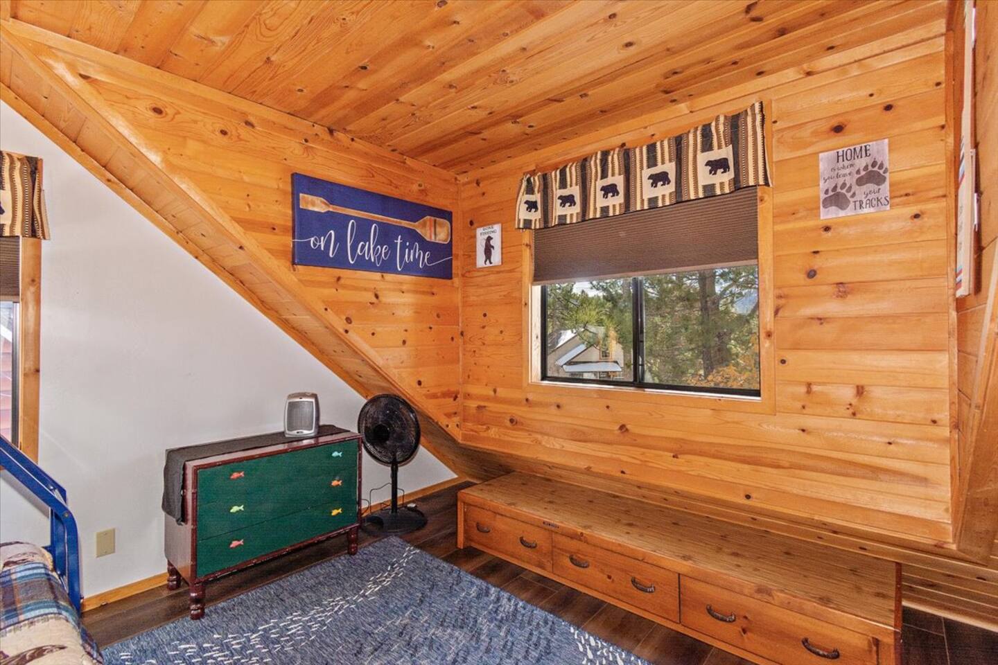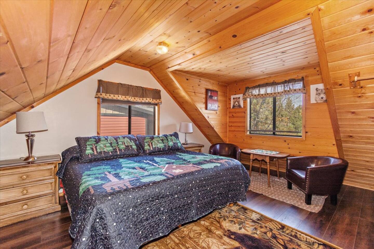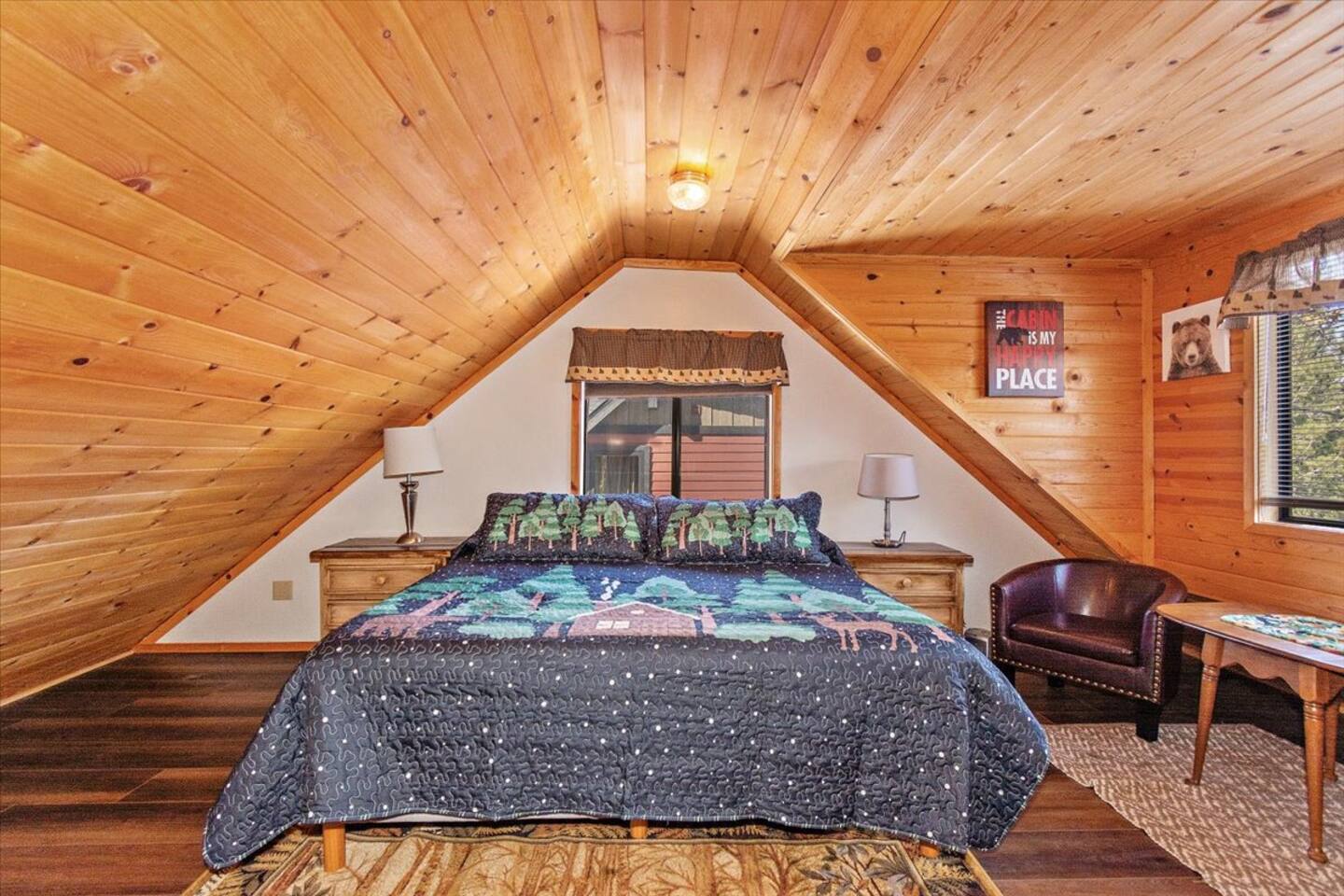 Spend a cozy night watching Netflix or head upstairs for a foosball competition or grab a board game and enjoy the treetop lake views from the dining room or head outside to the expansive deck and yard and enjoy the peekaboo lake views thru the trees in the hot tub. Vista De Oso is a family-owned, 3 bedroom, 2 bath cabin minutes from Big Bear village with peek-a-boo lake views, 3 decks, and a huge gated back yard for puppies and play! Make this your family or romantic Big Bear rustic retreat!